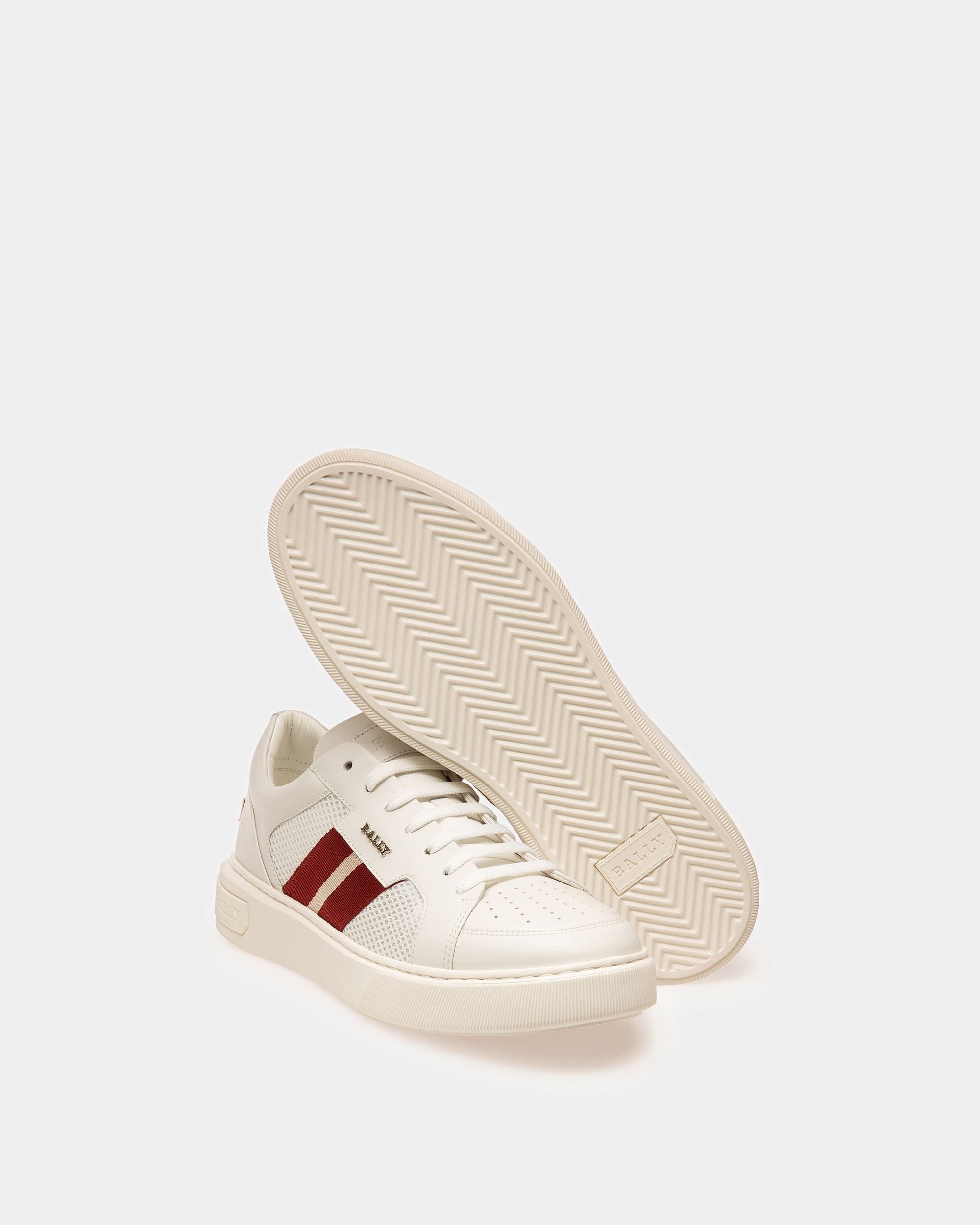 The Melys men’s sneaker in white leather and mesh is fitted with a lightweight Bally Lift rubber sole. Features include Bally Stripe detailing and the Bally 1851 logo on the heel.