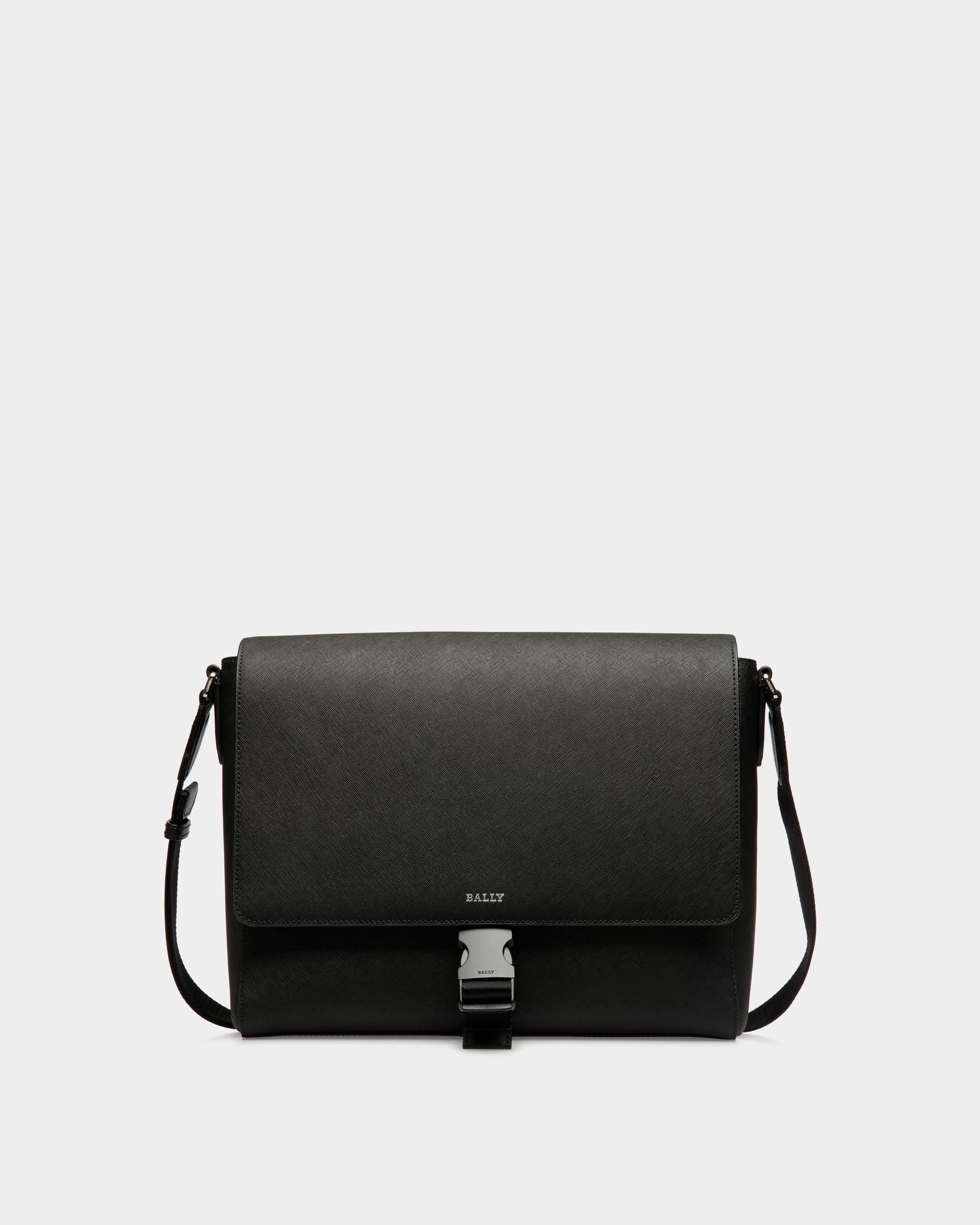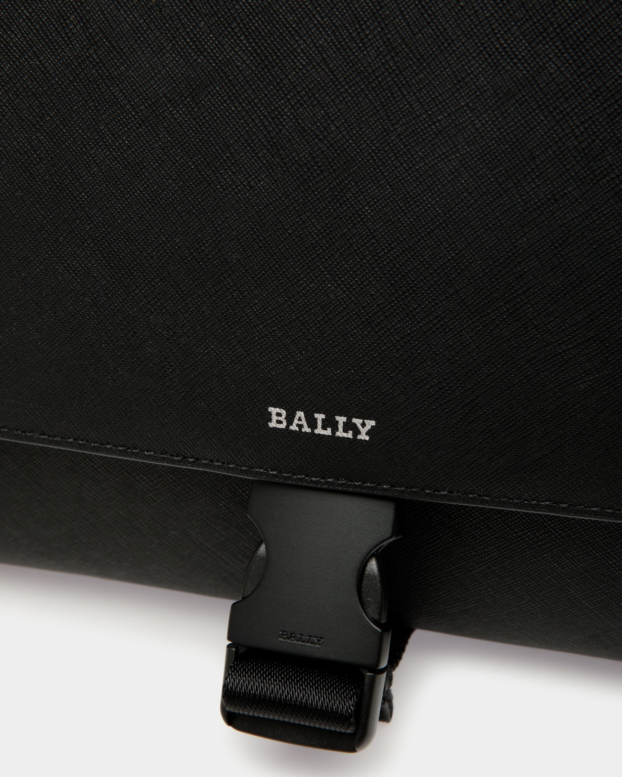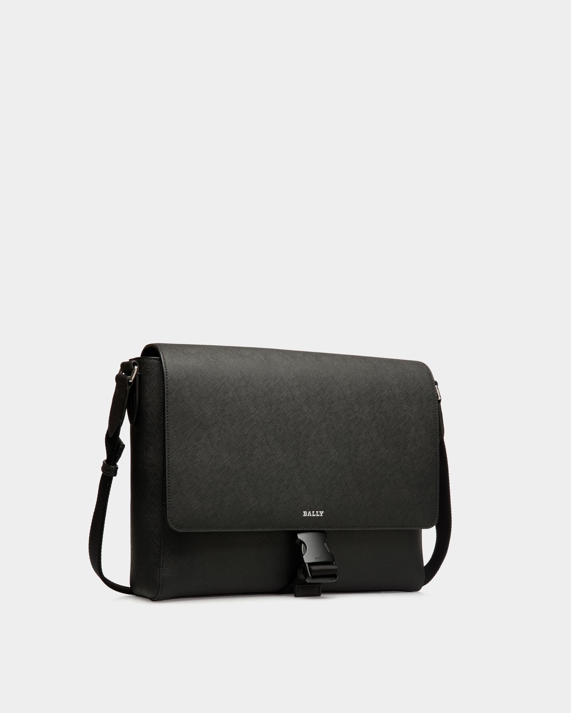 This messenger bag is made from embossed leather. It is neatly detailed with the Bally logo.