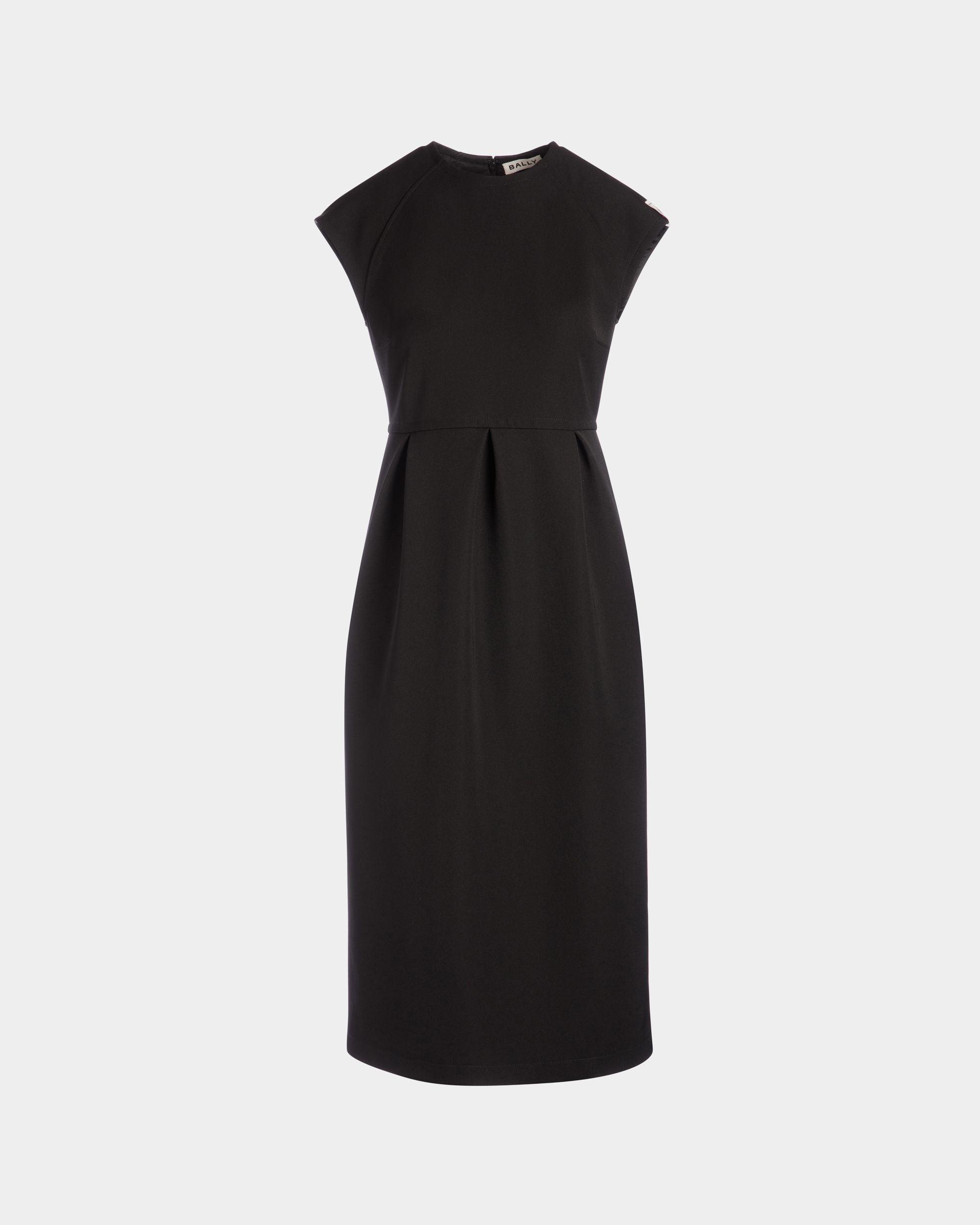 This midi dress in black gabardine is cut to an essential silhouette with cap sleeves and two hip pockets.