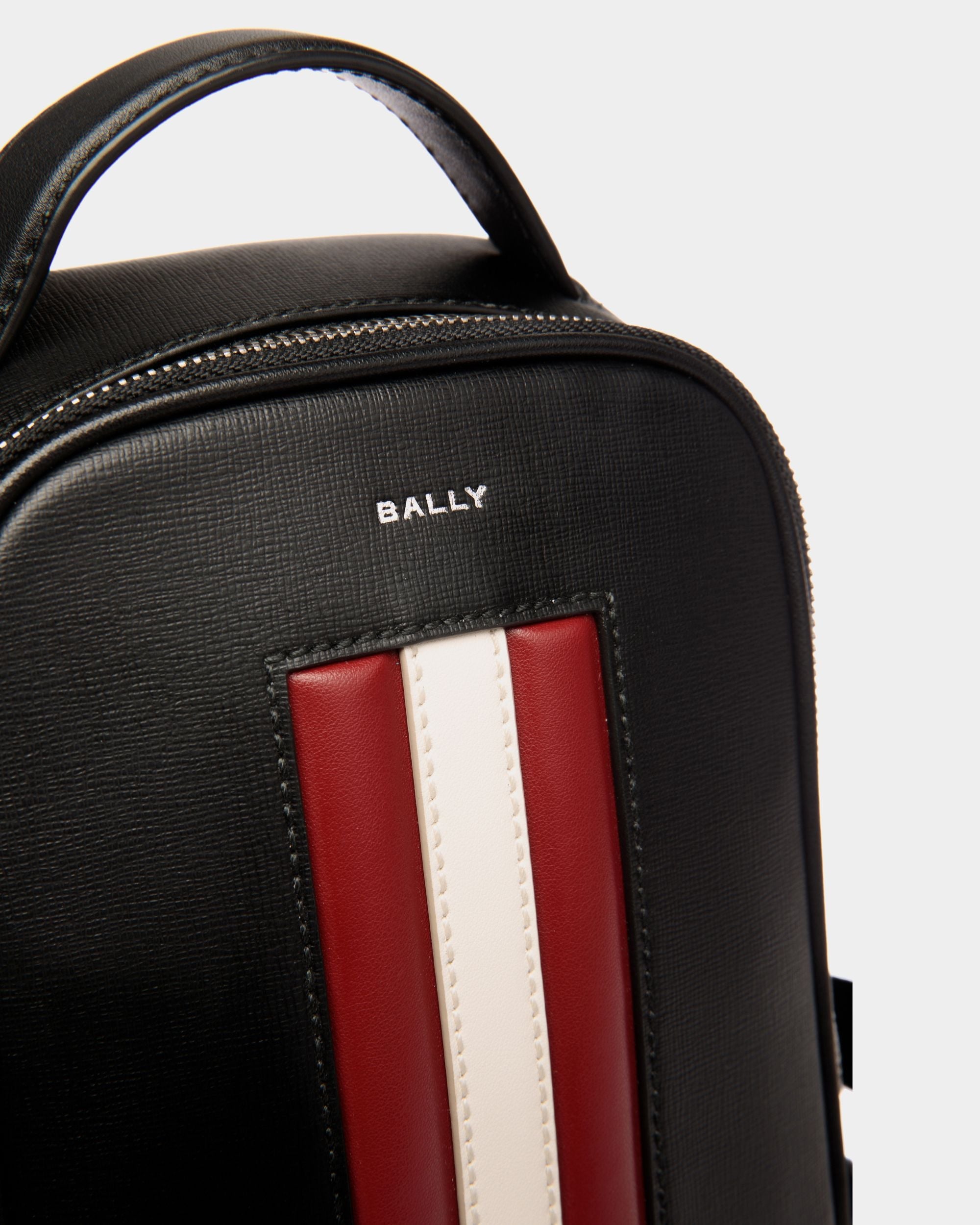 Designed to be worn over the shoulder or cross-body. this Mythos sling bag is trimmed by a Bally Ribbon in finely crafted intarsia leather. A top handle makes it easy to carry and multiple pockets offer effortless organization.