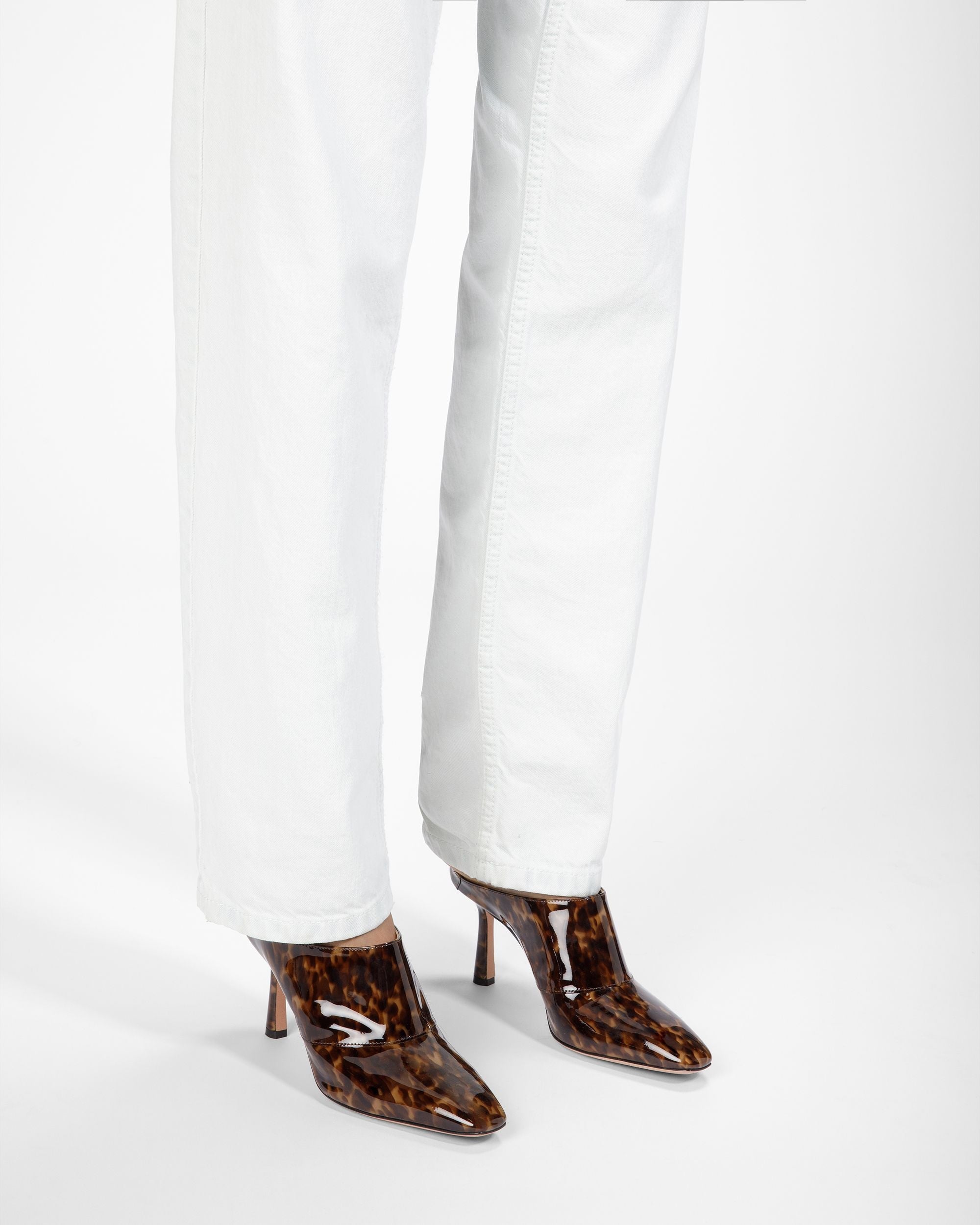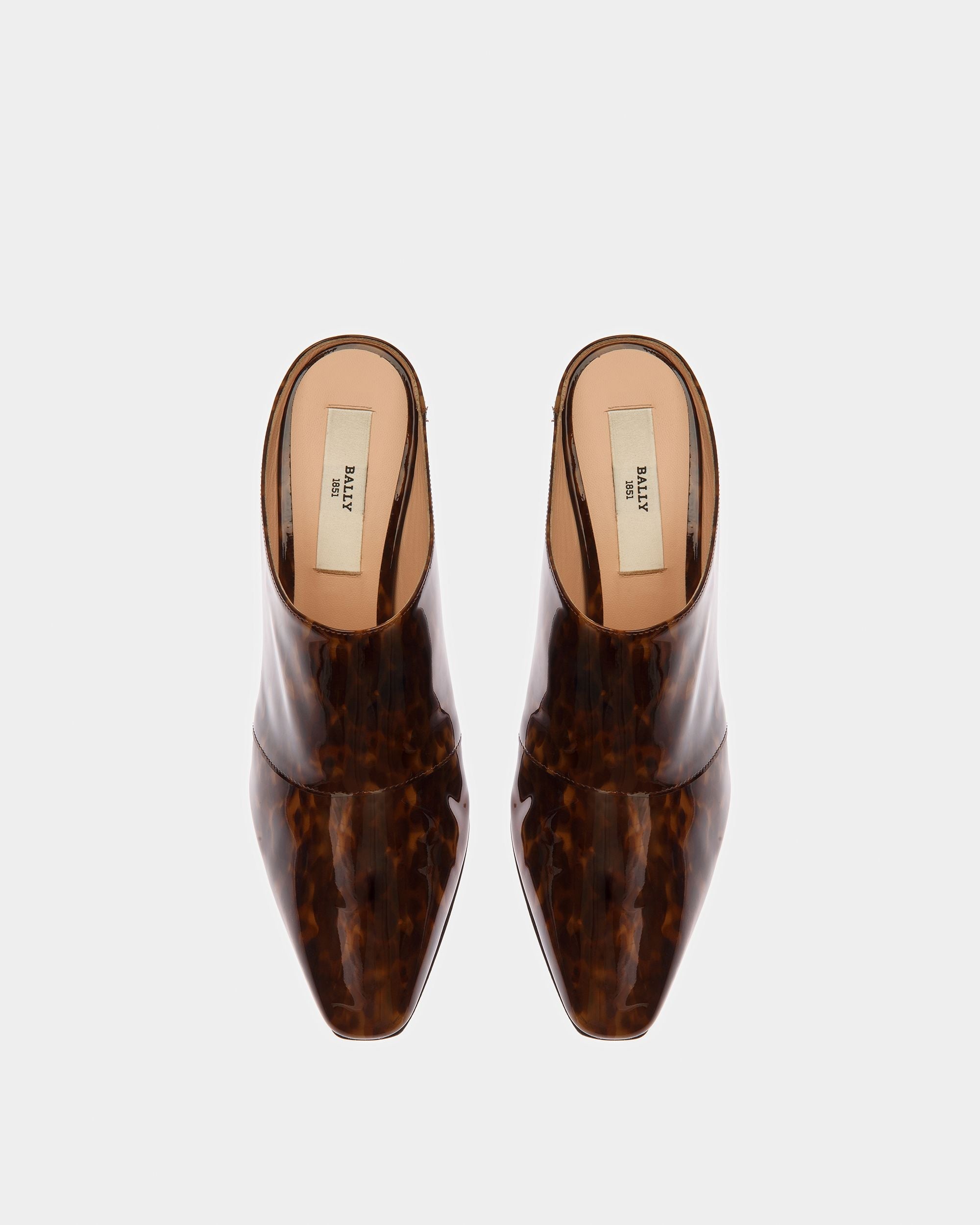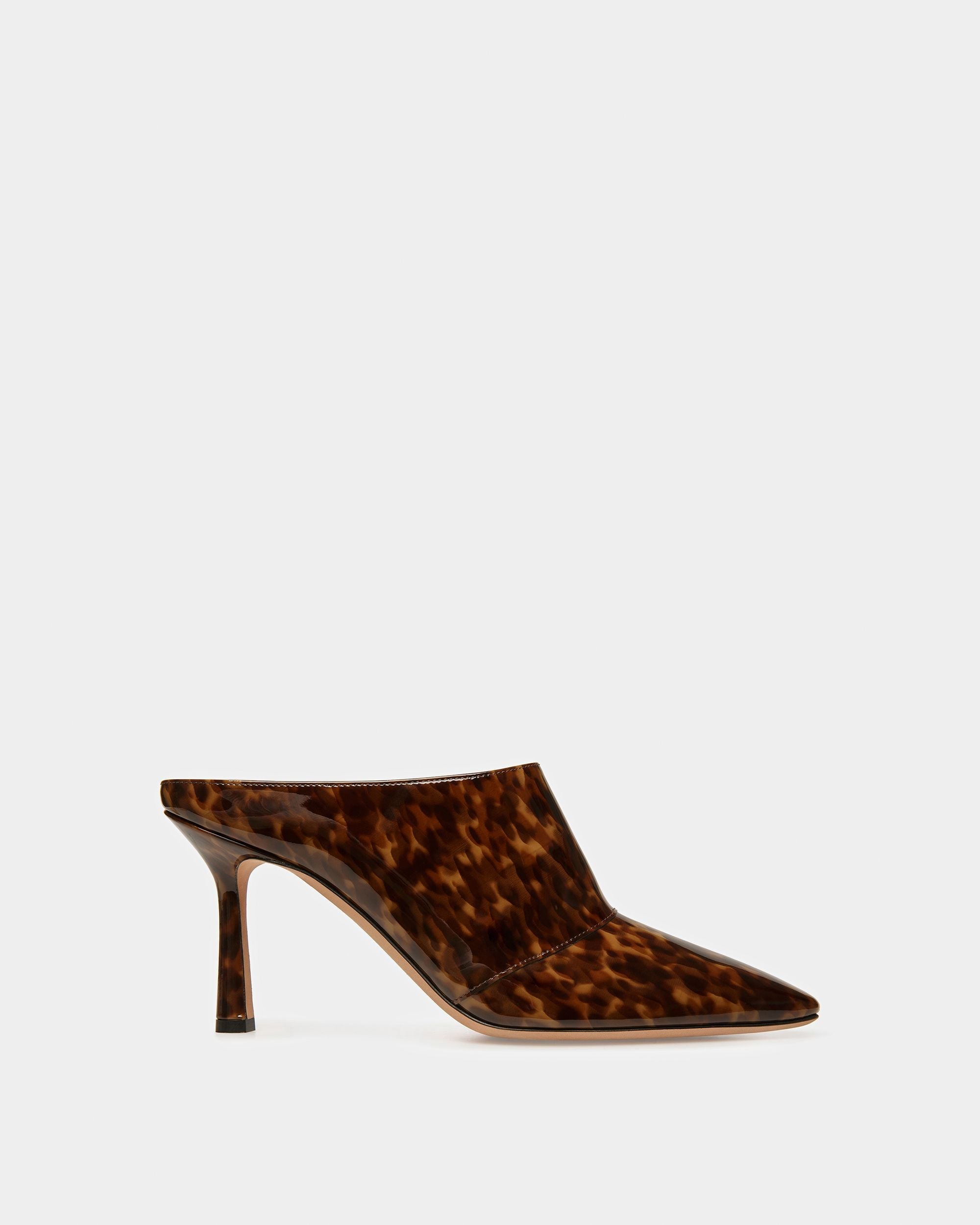 Crafted from patent calf and lamb leather. the Nadine leather mules have a streamlined silhouette. The style is set on an 85mm stiletto heel for a distinct lift.
