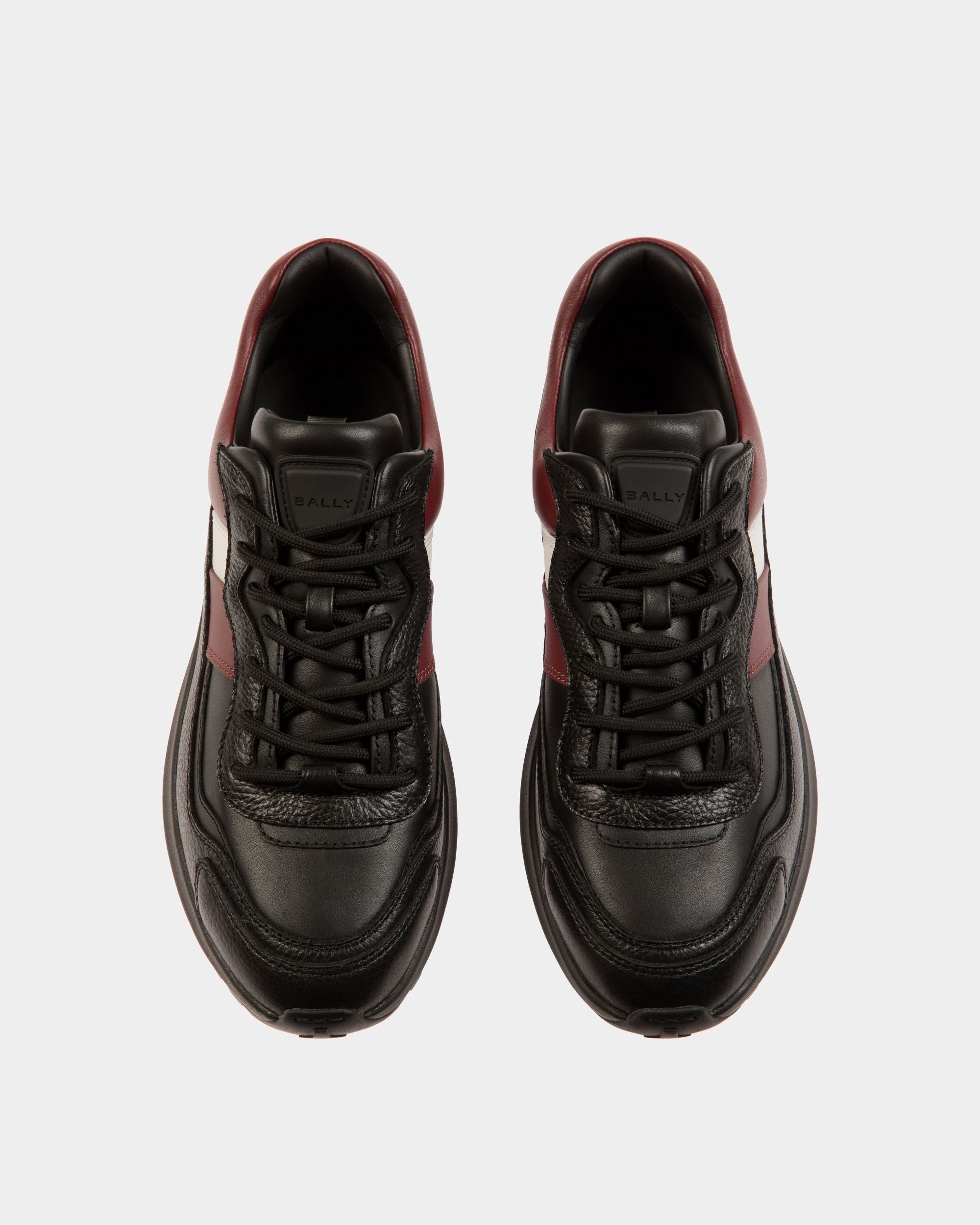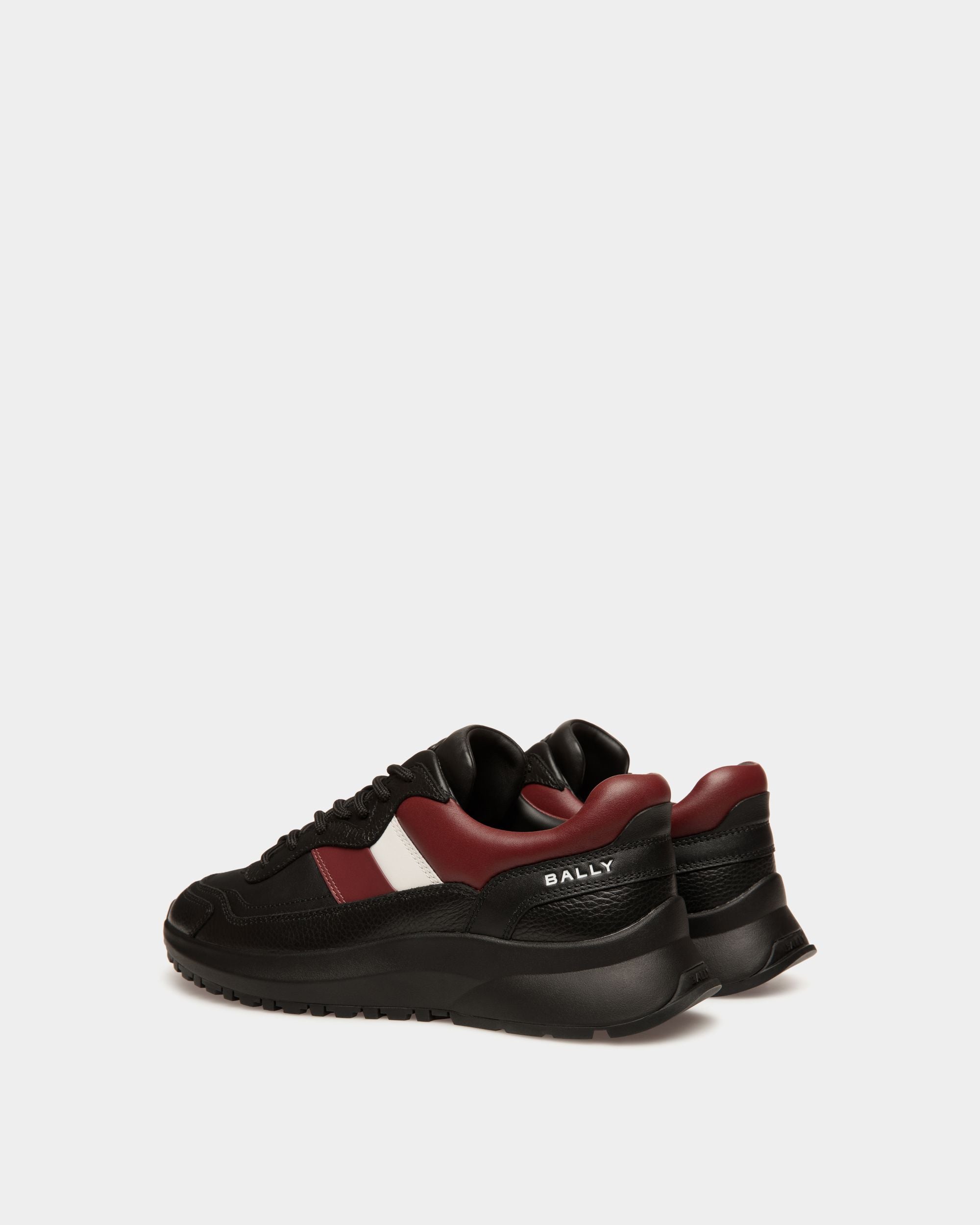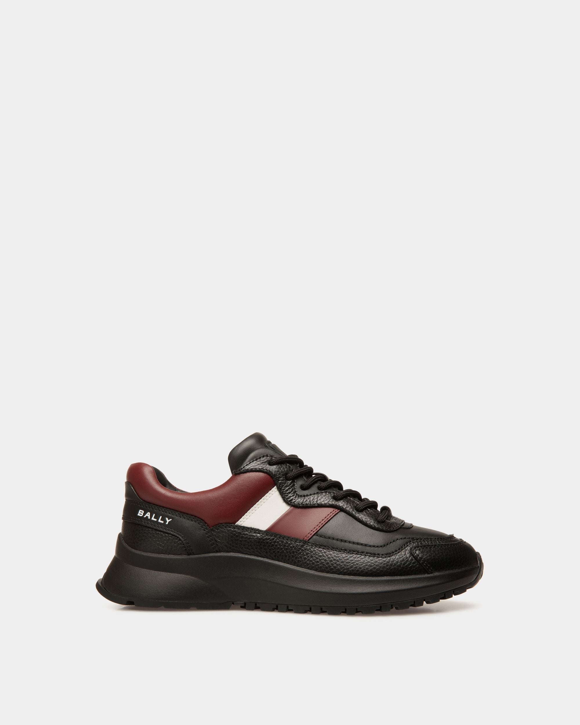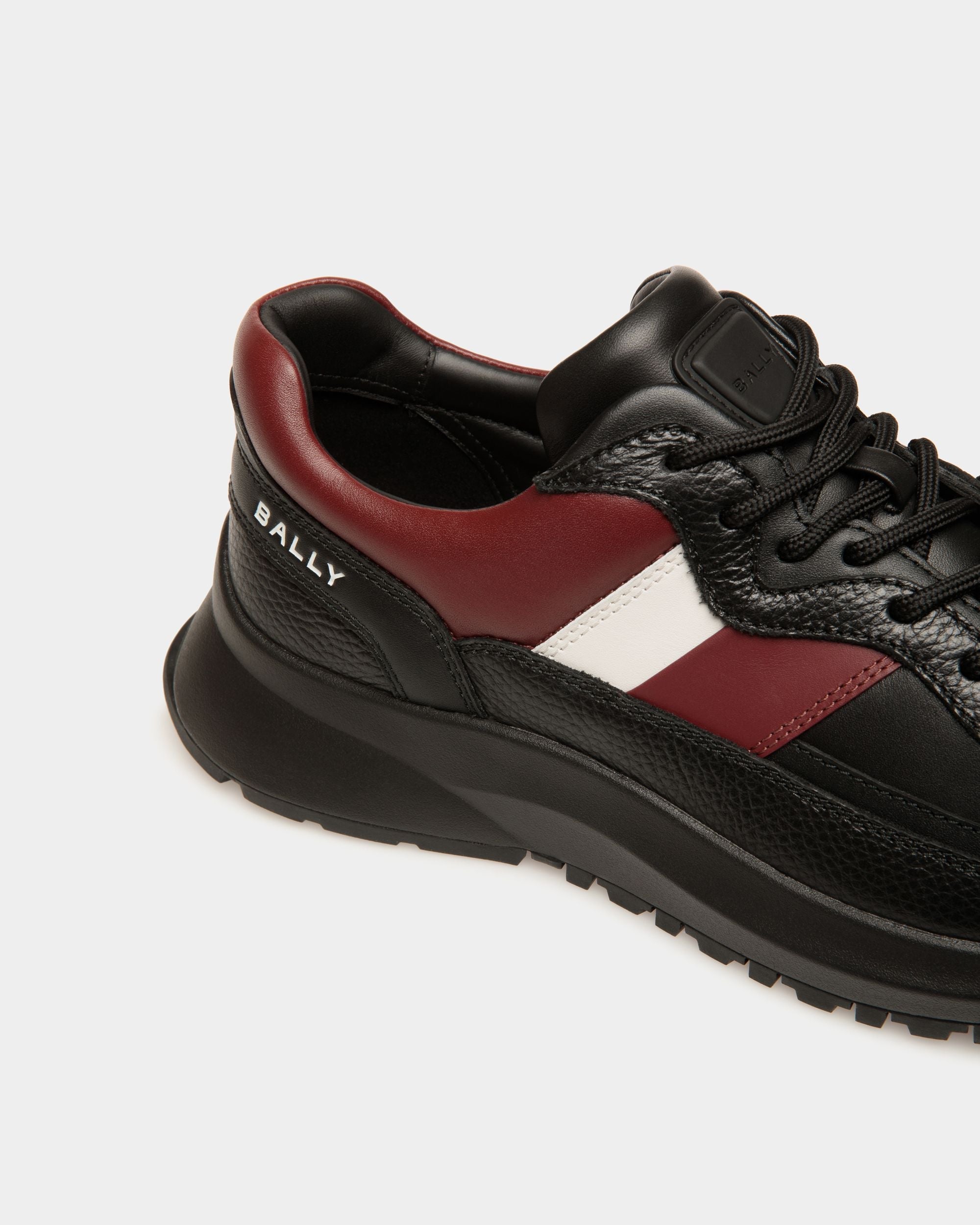 This Outline sneaker is in black leather with Heritage Red leather panels which form a Bally Ribbon at the side. The ultralightVibram running sole offers flexibility and superior grip. even on wet surfaces.