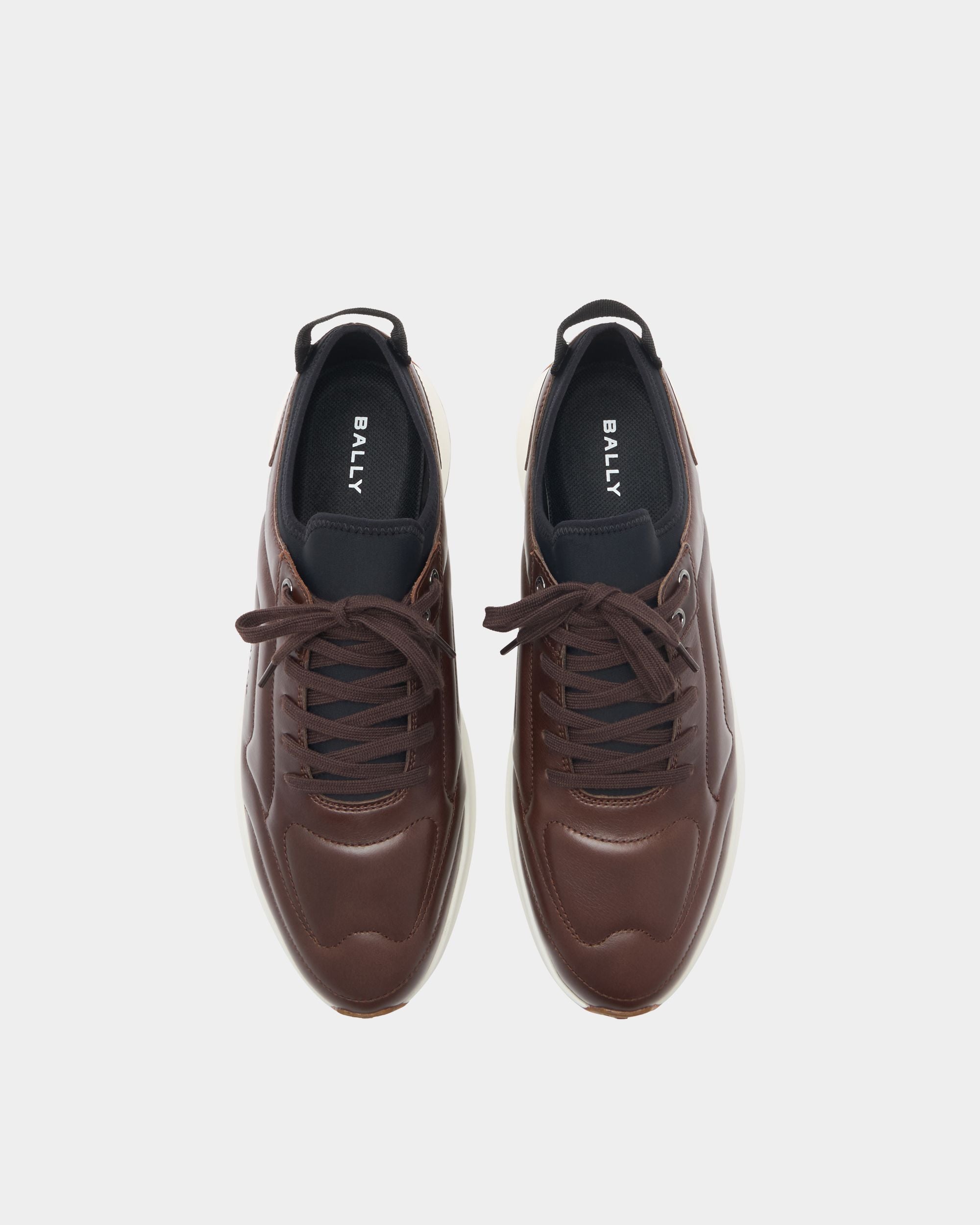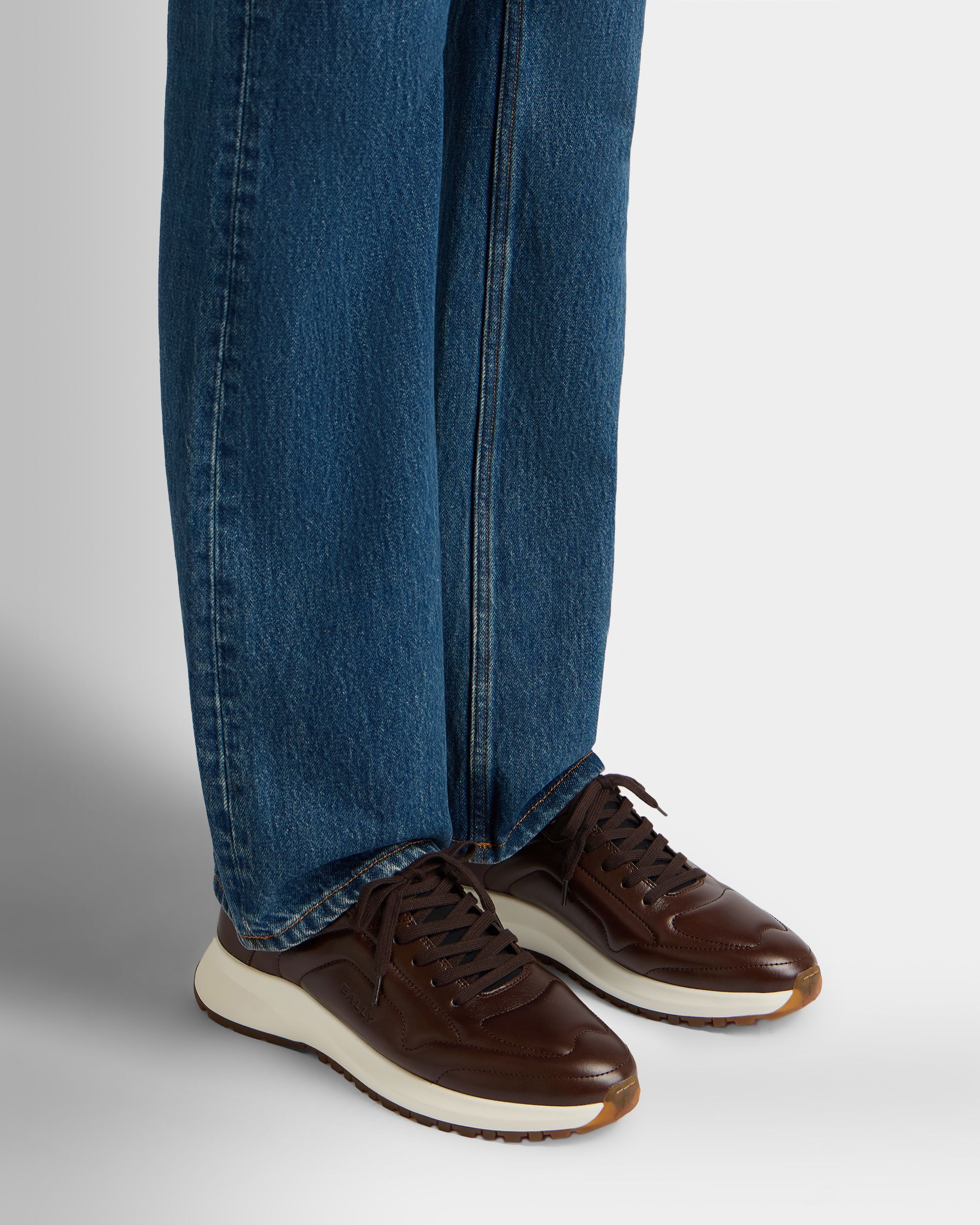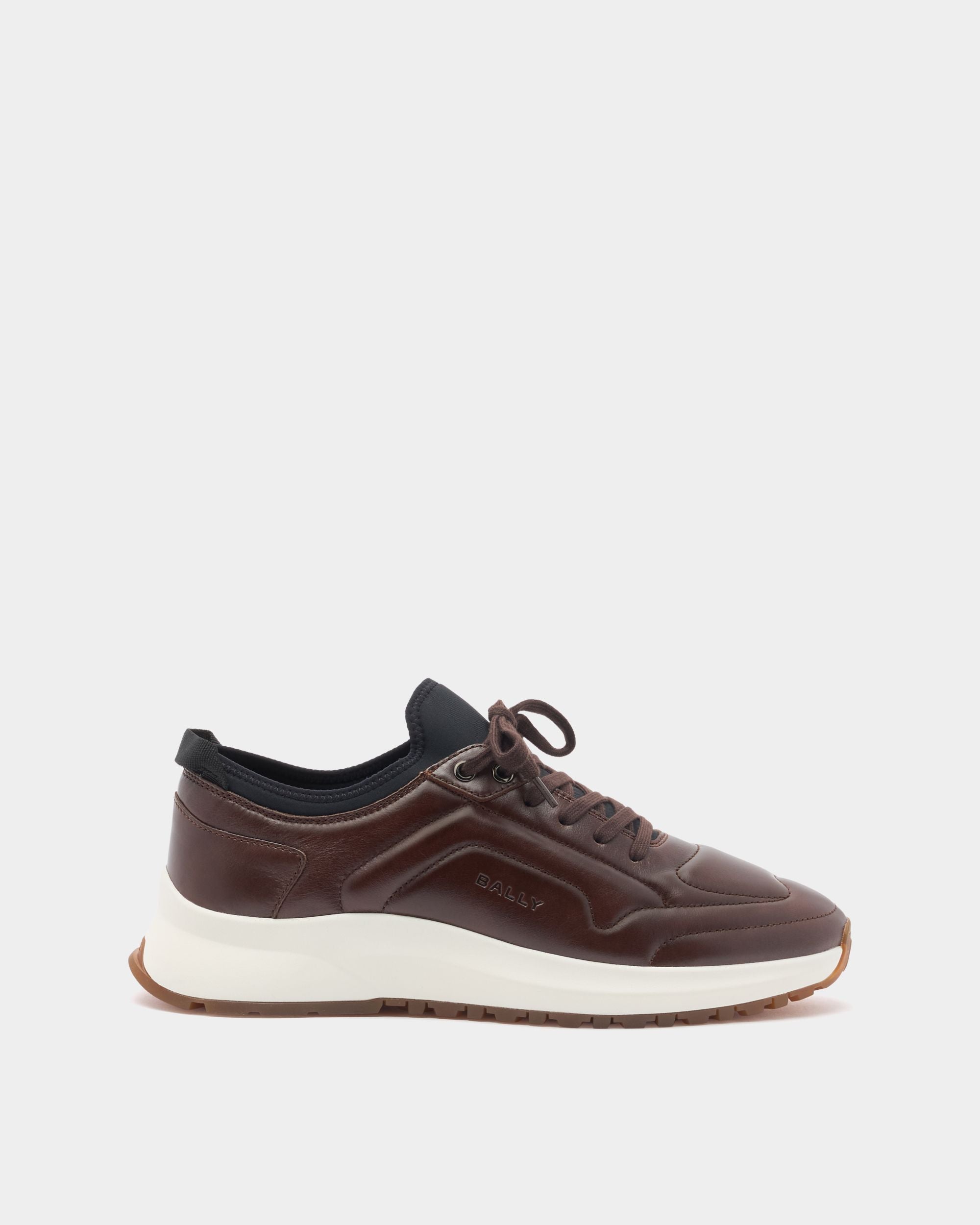 In brown leather. this low-top Outline sneaker features a matelassé-effect upper with tonal stitching and a debossed Bally logo to the side.
