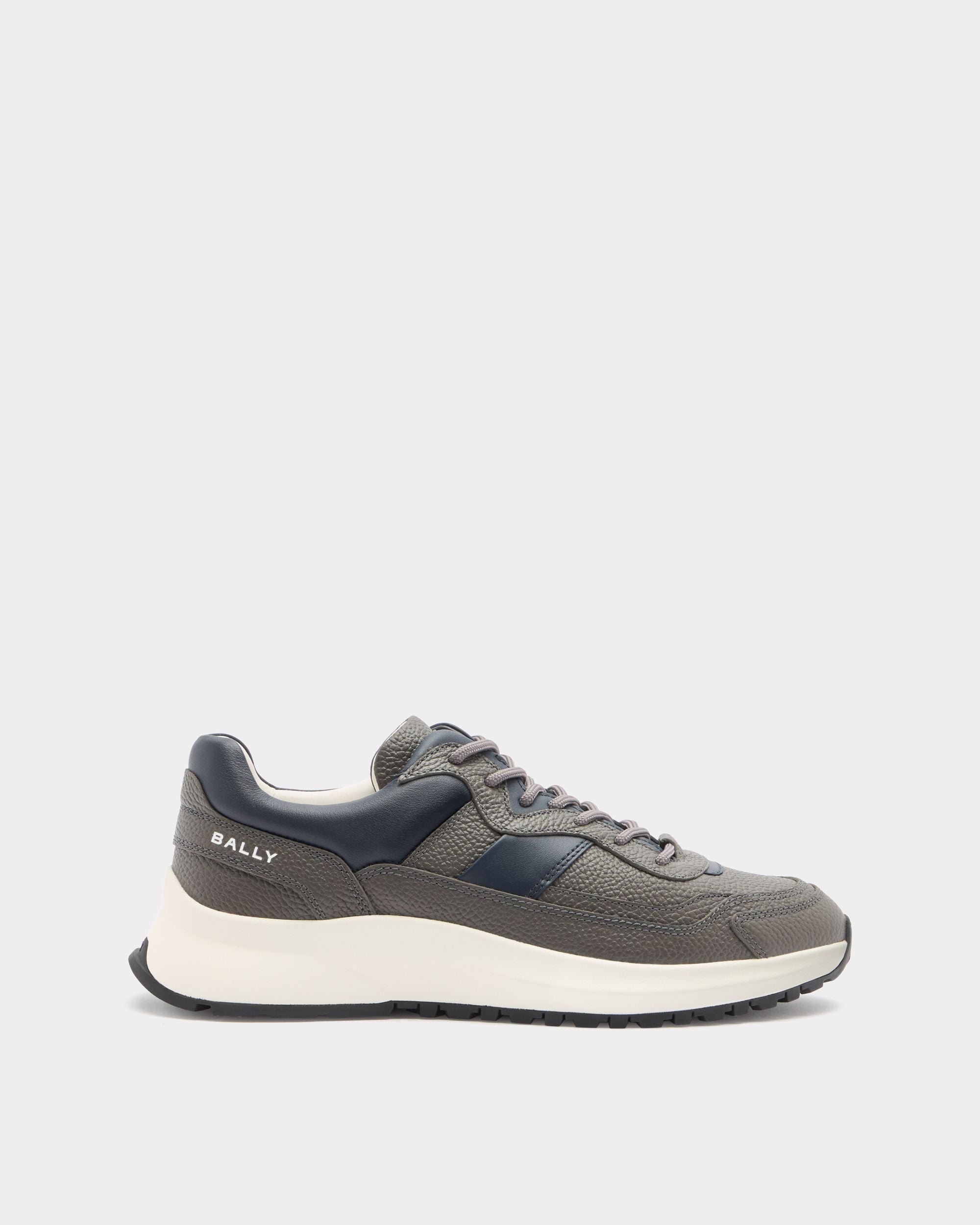 This grey and navy blue leather Outline sneaker is characterized by a grained finish and a chunky yet lightweight running sole that ensures all-terrain grip. Bally logos on the side of the heel counter and on the tongue create a signature touch. Round laces complete the look.