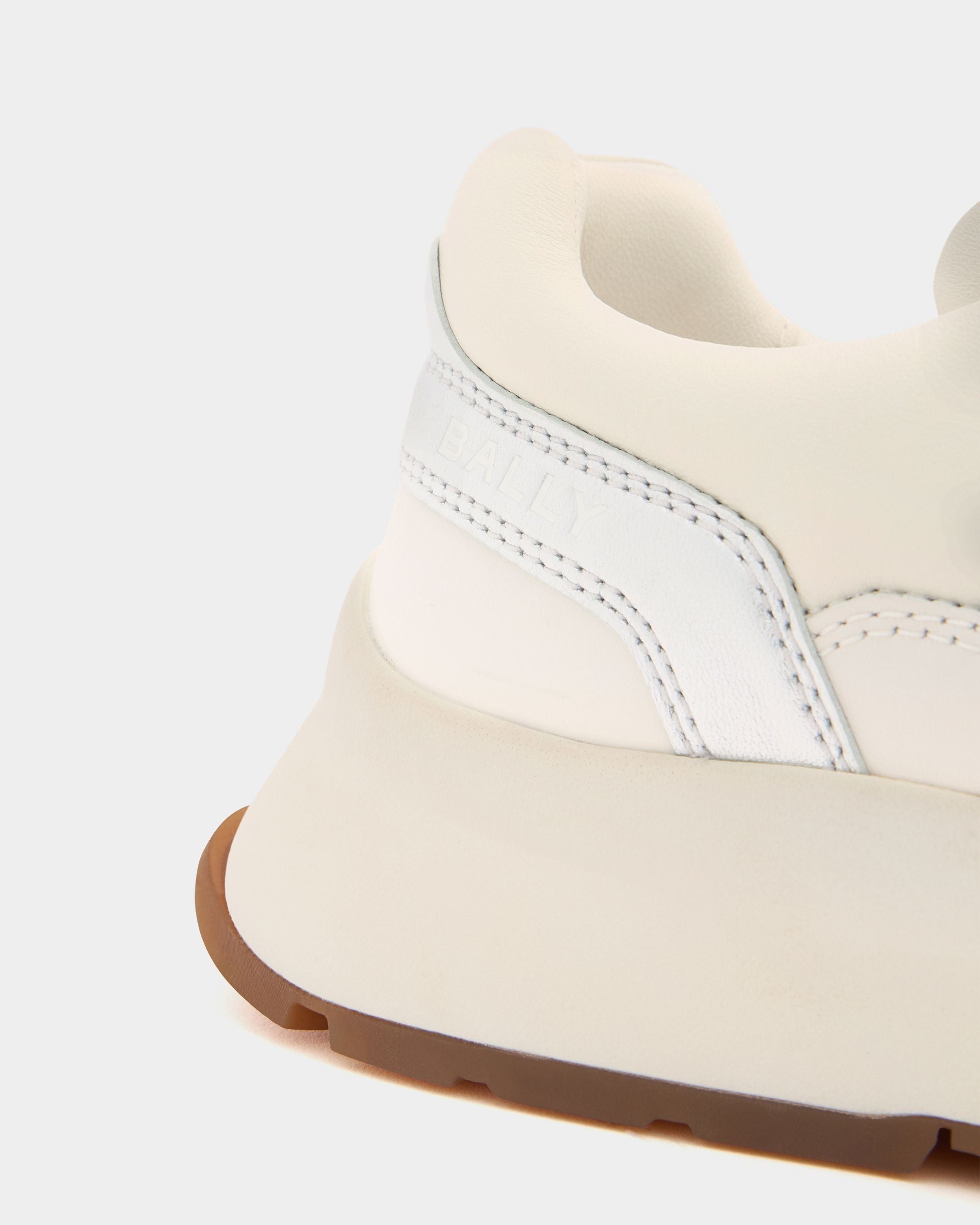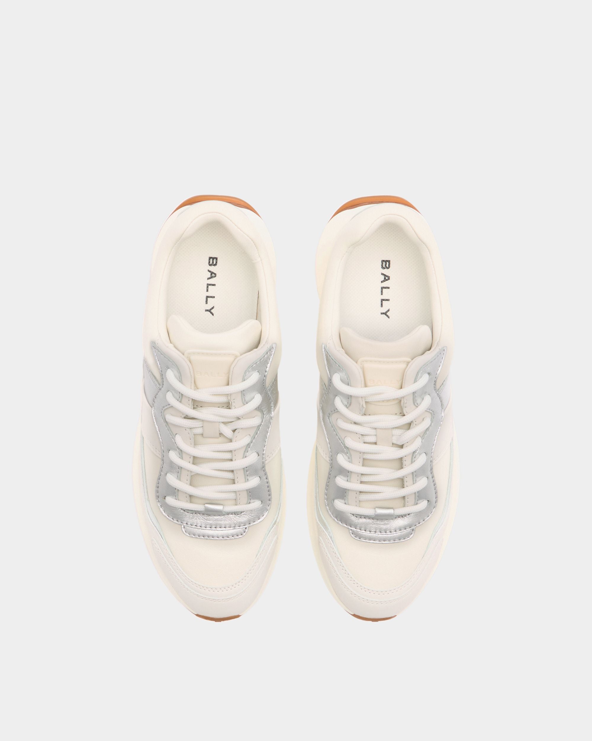 From the Outline family. this white leather sneaker enriches a contemporary Bally design with shimmering silver leatherwork.