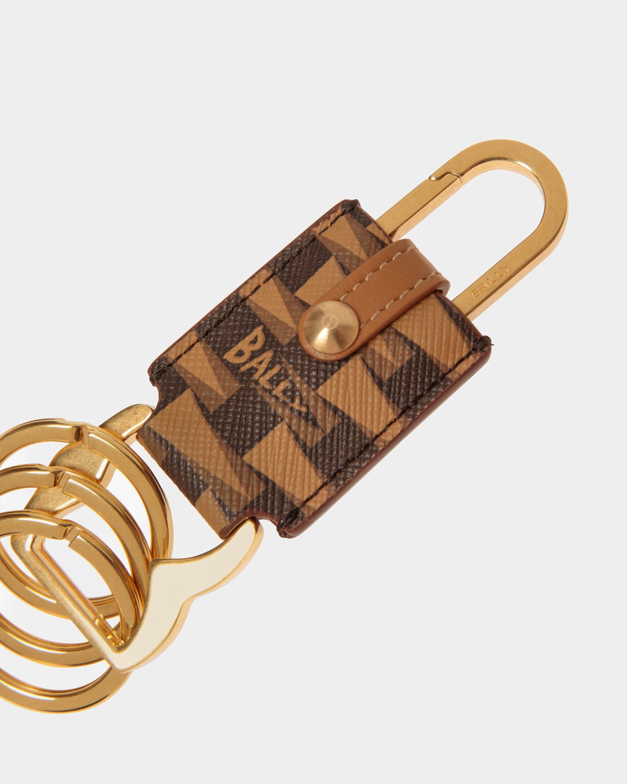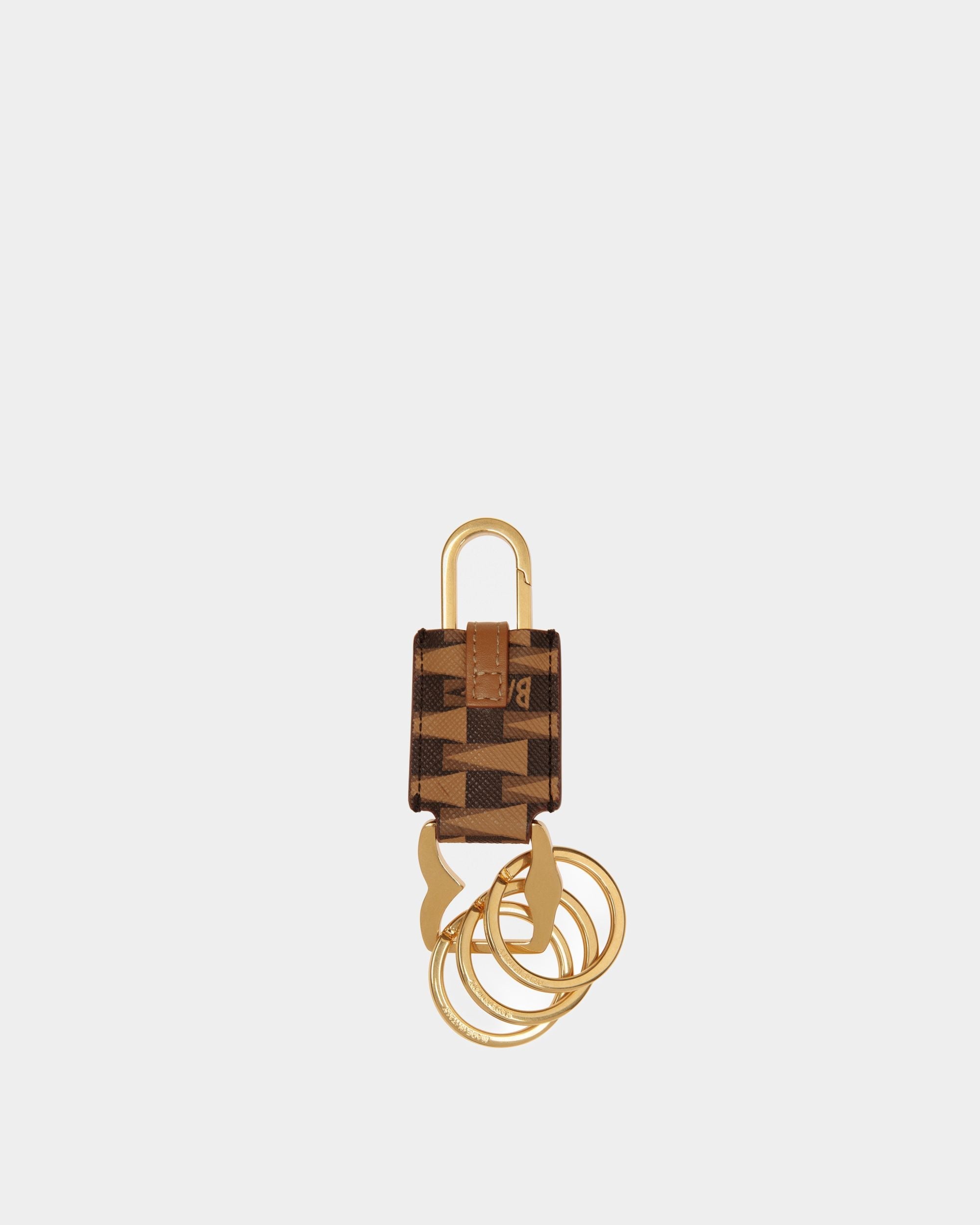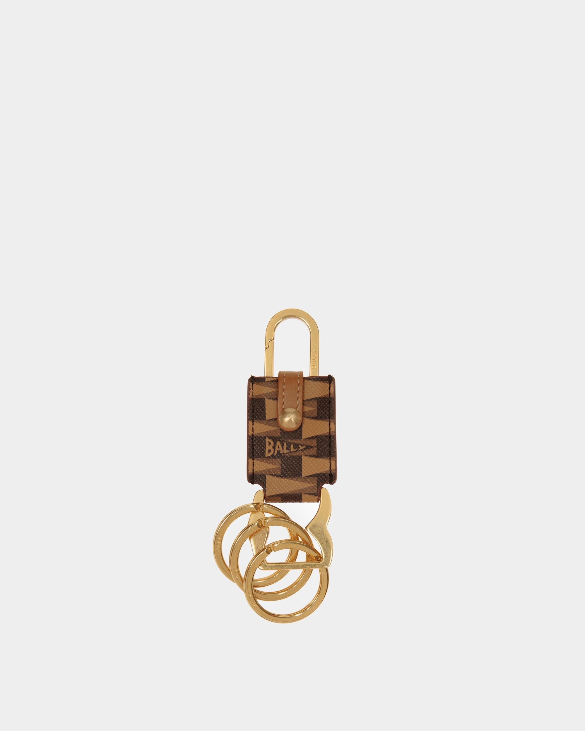 With its triple-ring attachment and retro-inspired pennant print. this key holder is a fresh take on an everyday necessity.