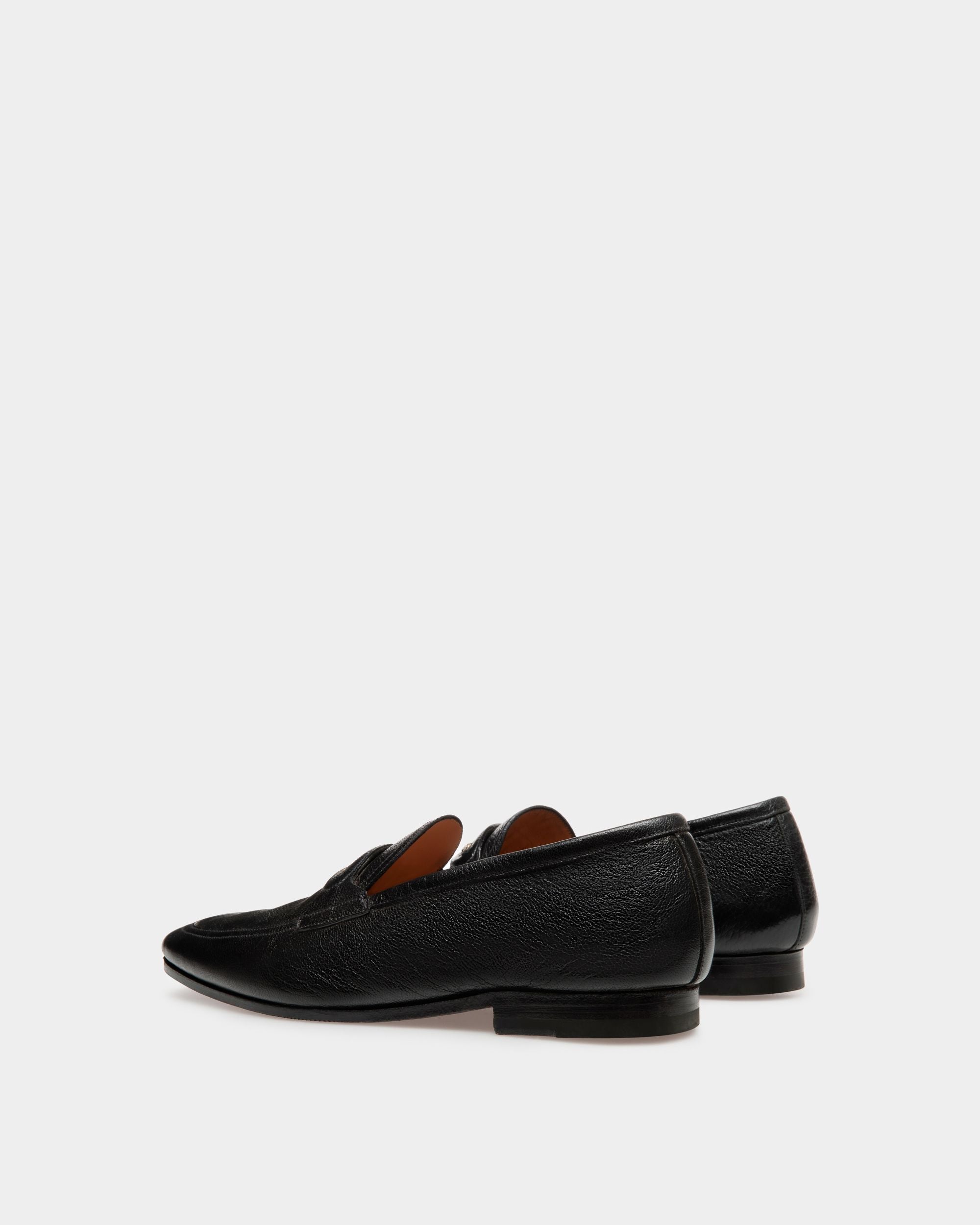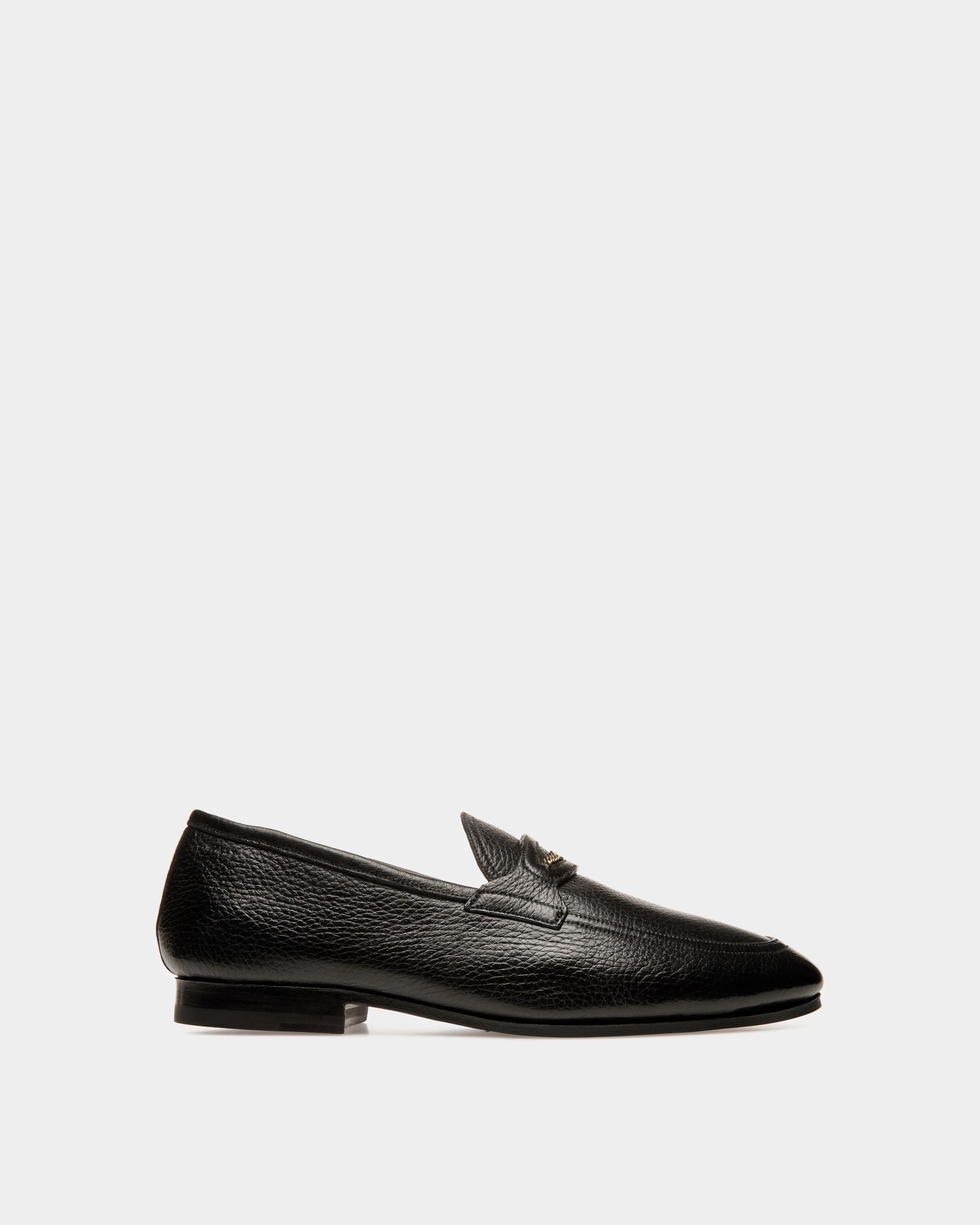 Crafted in textural grained leather. the Pesek loafers. here in black. feature a miniature Bally chain logo to the front.