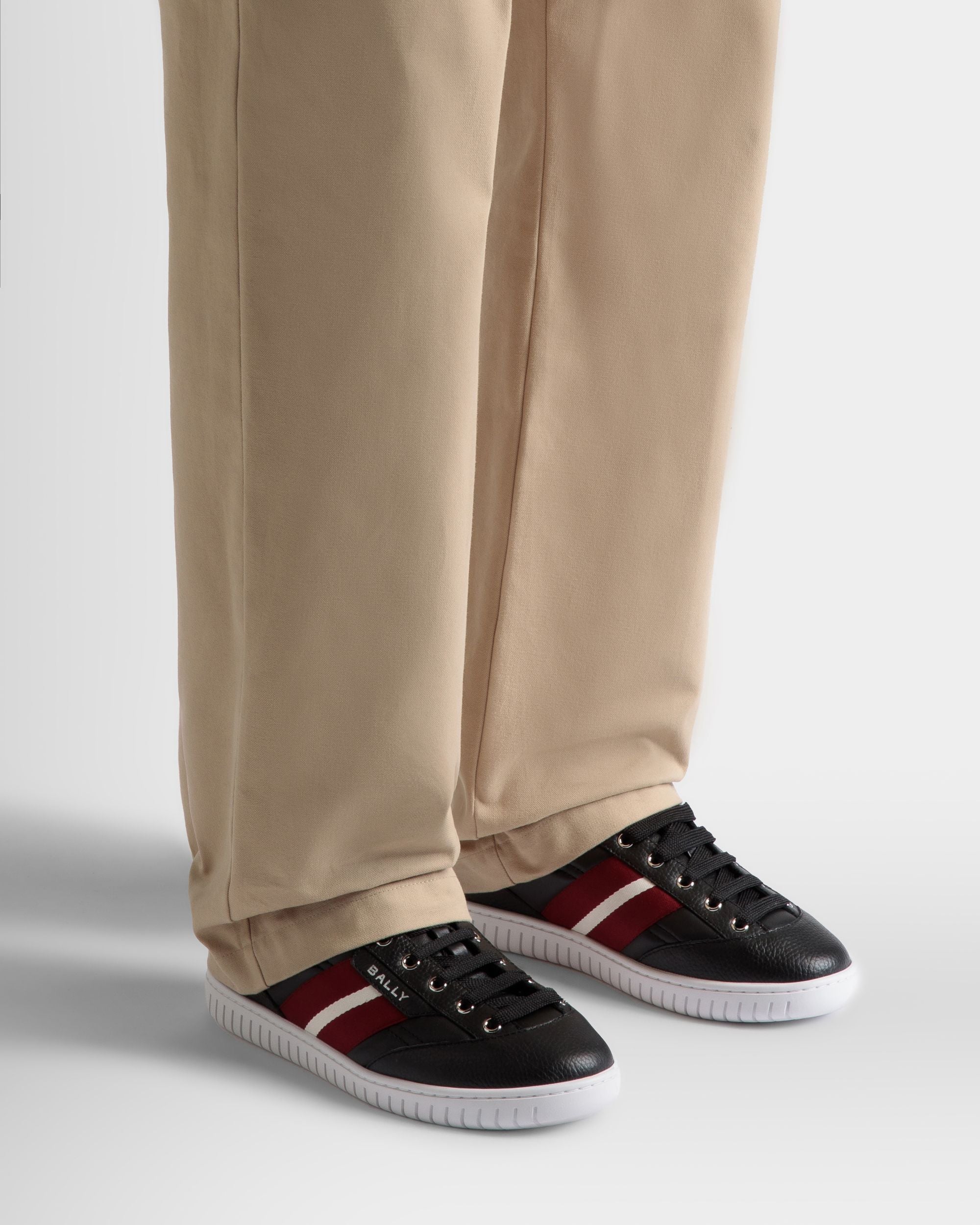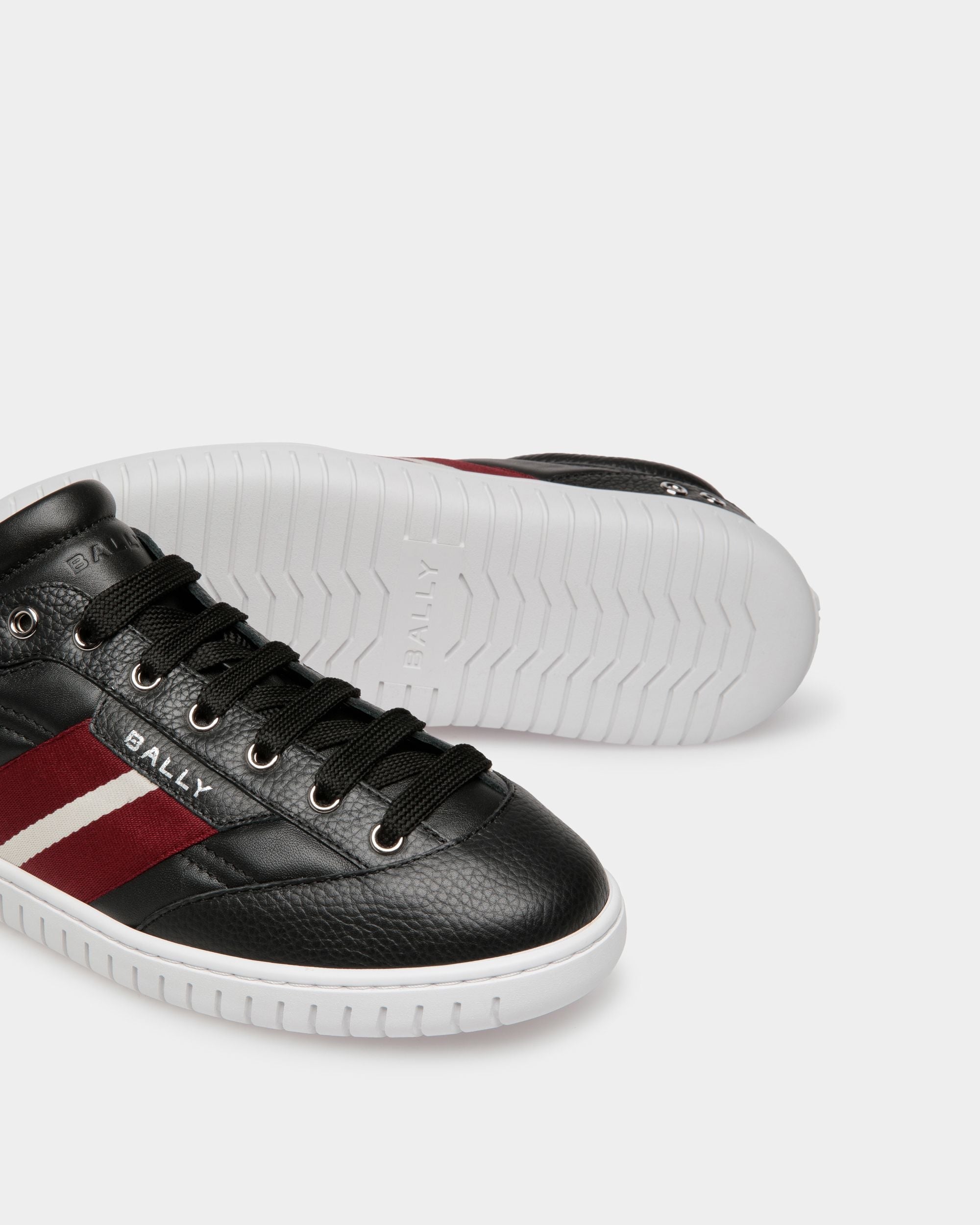 Crafted from premium black leather. these sneakers feature a sleek silhouette and a comfortable rubber sole for effortless style and all-day comfort. A Bally stripe and maxi palladium eyelets express their originality.