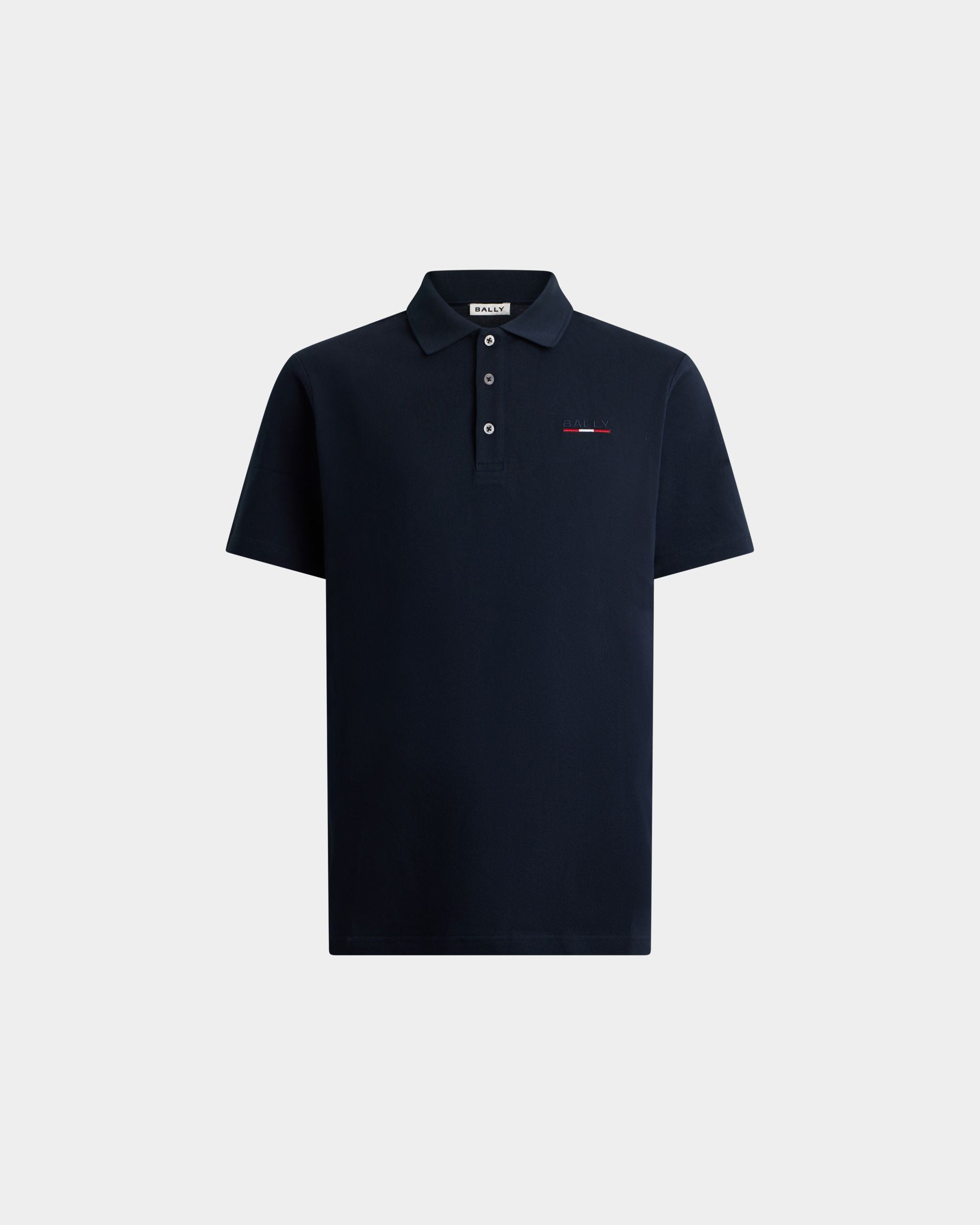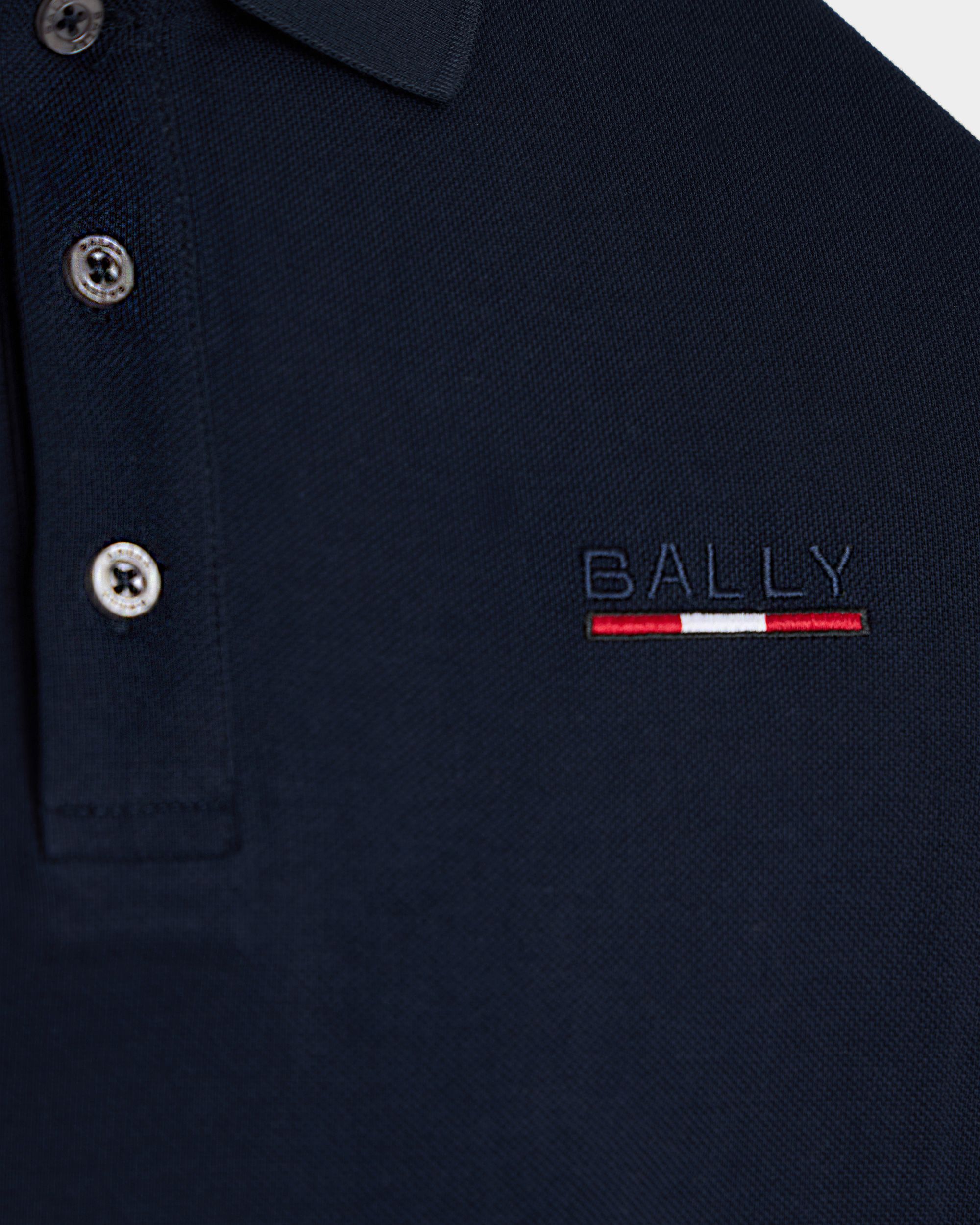 This short-sleeve polo shirt in navy blue piqu?? fabric is embellished with a discreet Bally logo and Ribbon on the left chest.