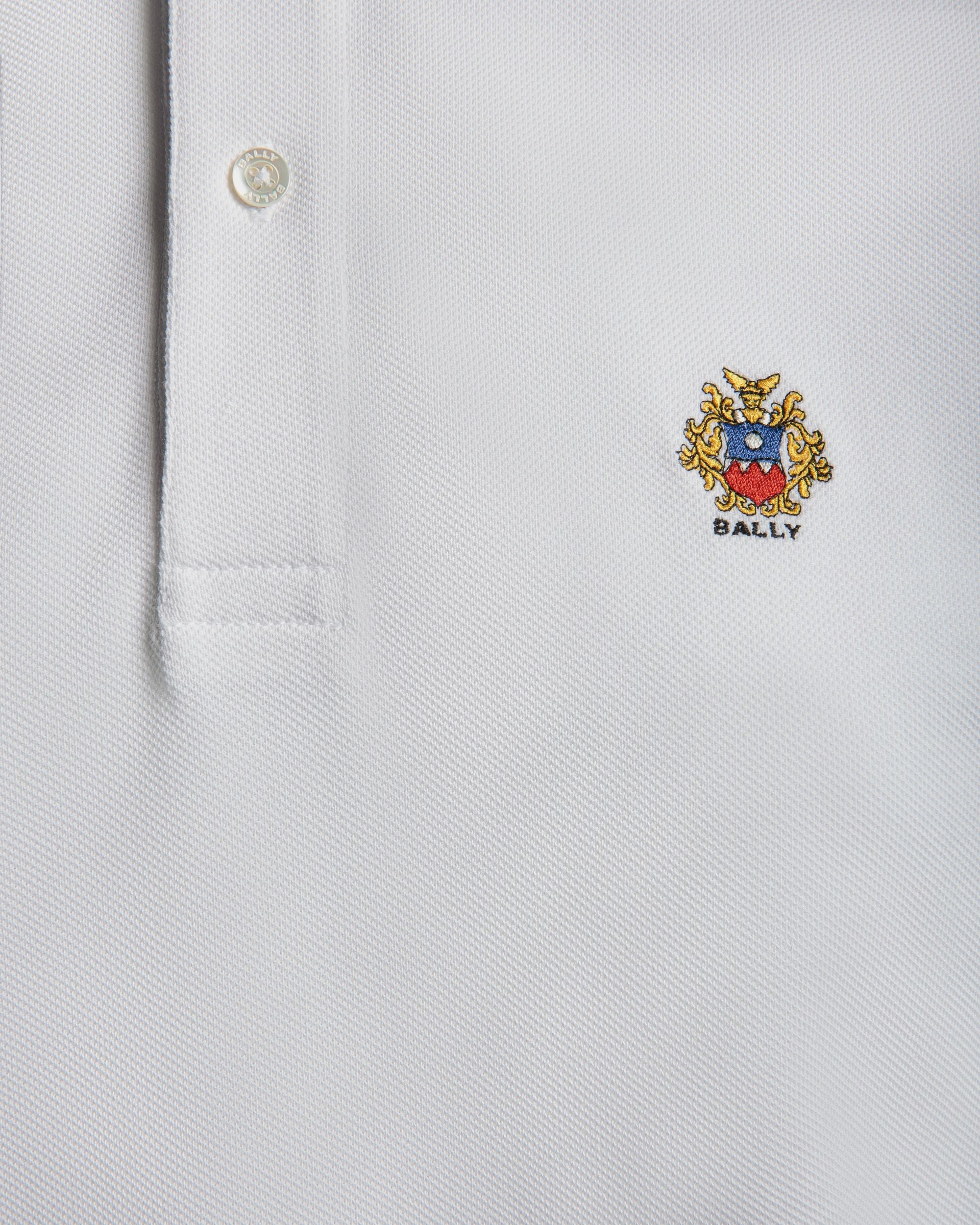 Classic and elegant white cotton polo shirt with an embroidered Bally Crest. The epitome of refined leisurewear. its impeccable fit and quality make it a versatile staple.
