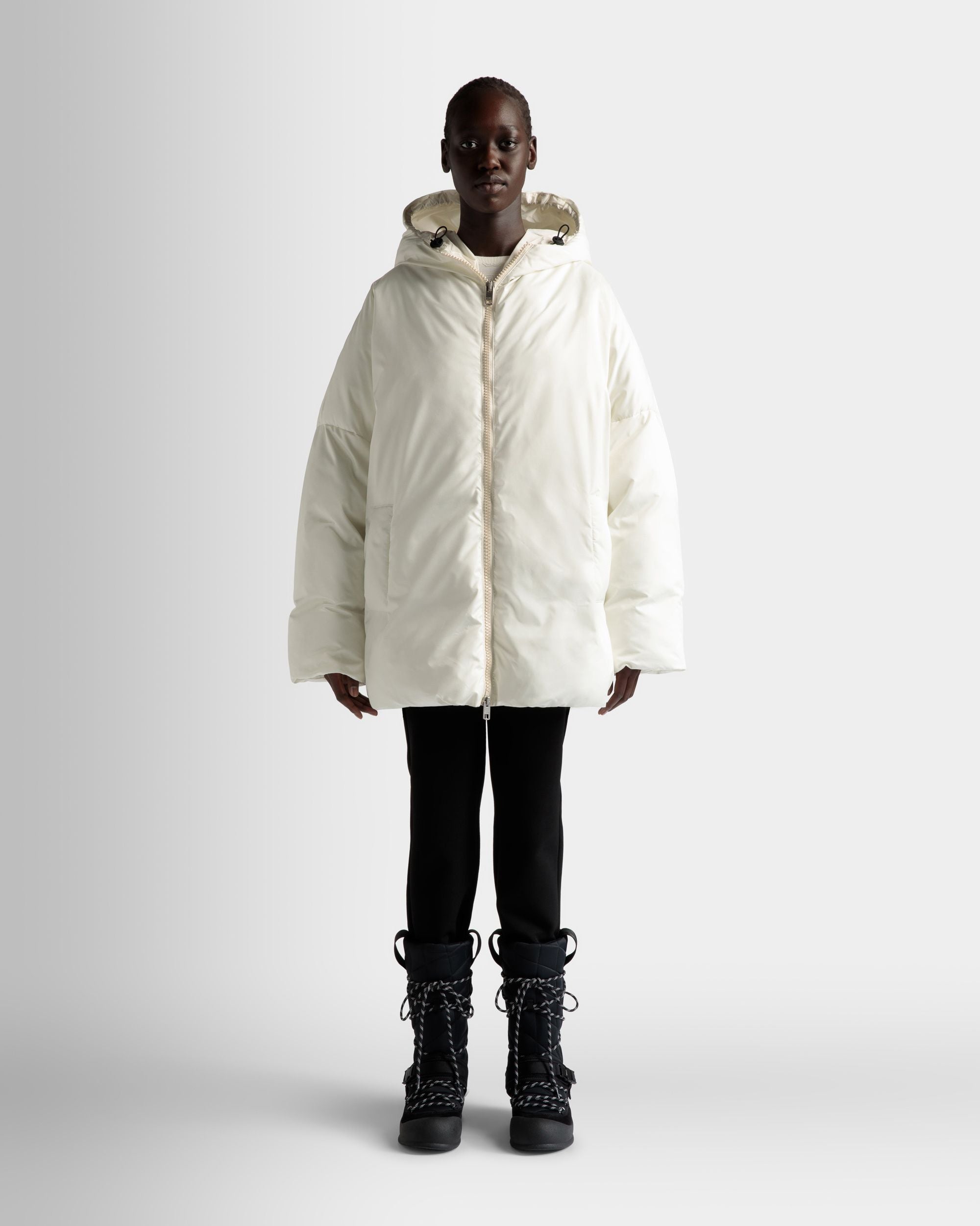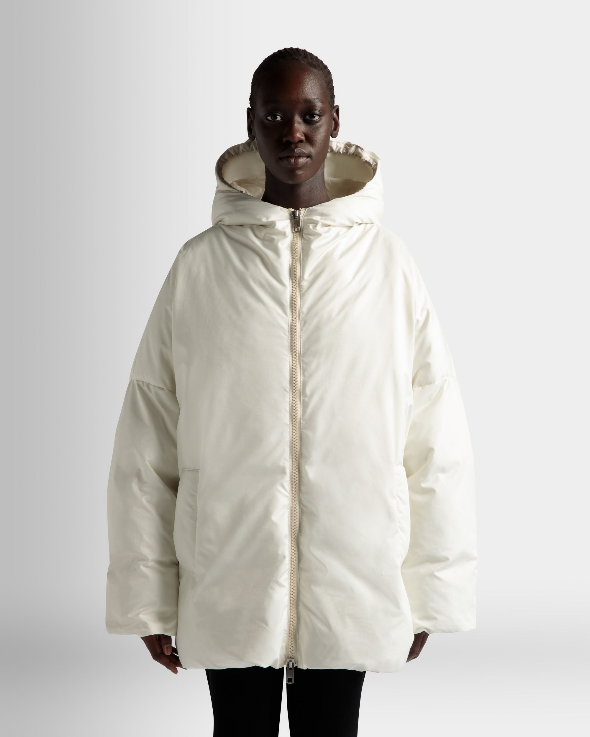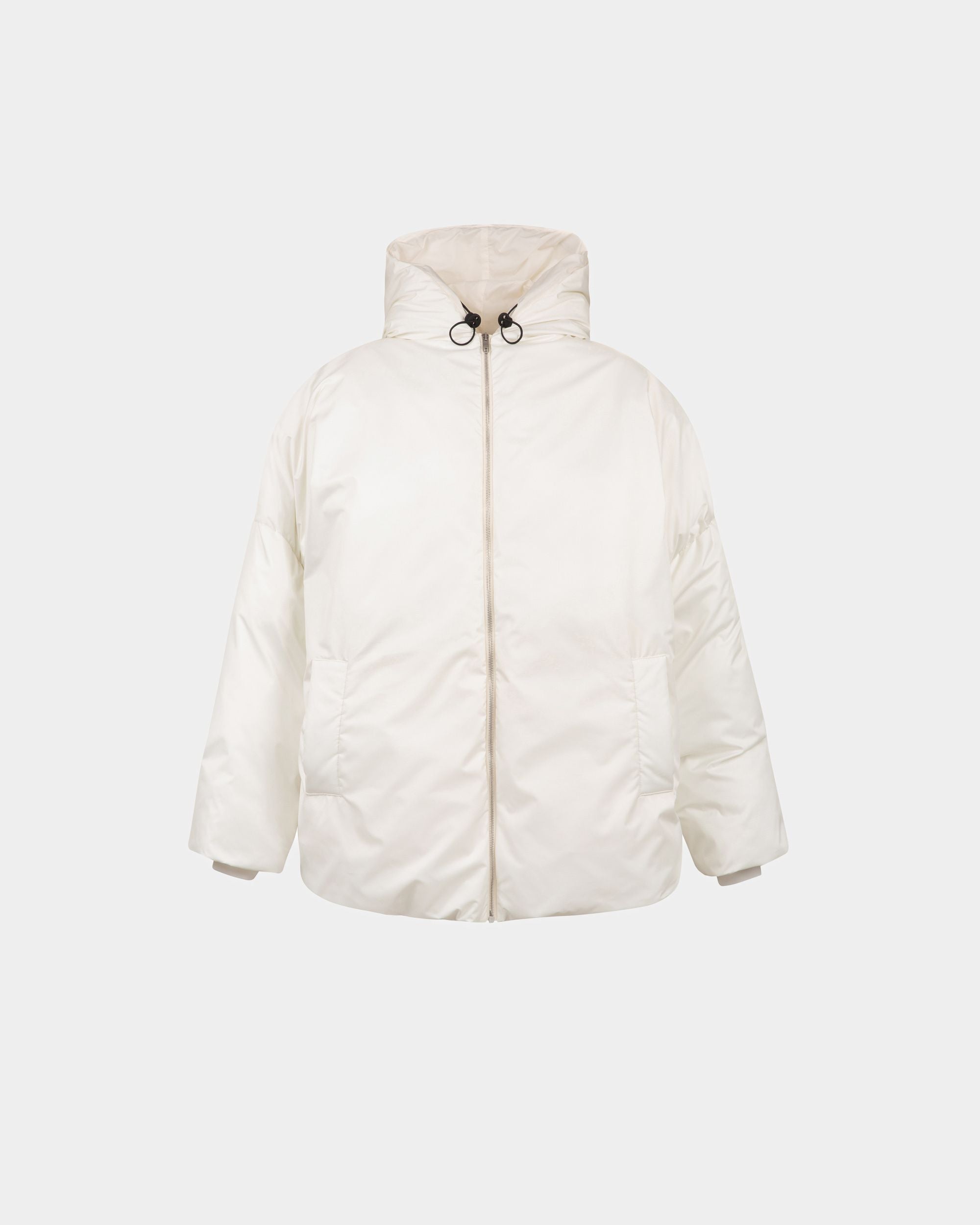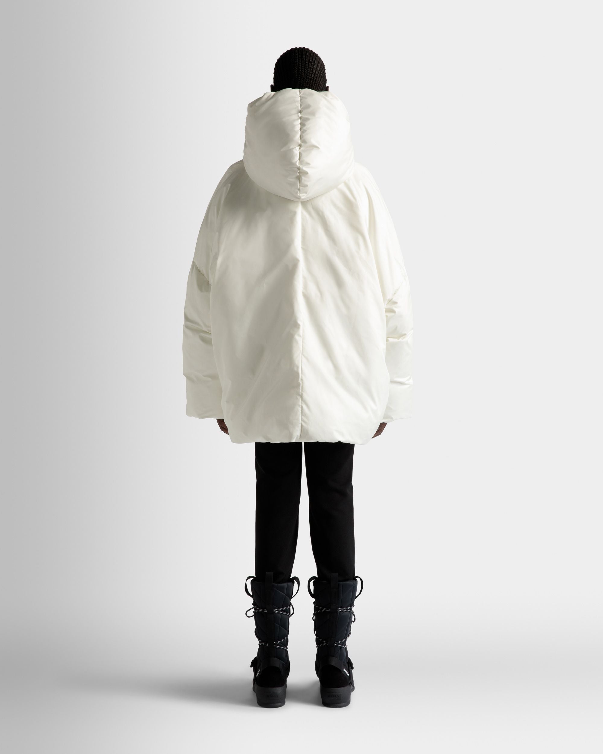 Elevate your winter wardrobe with our white puffer jacket in high-quality ripstop nylon fabric. Stay warm in this fashion-forward look. with its clean white hue and on-trend puffer silhouette.