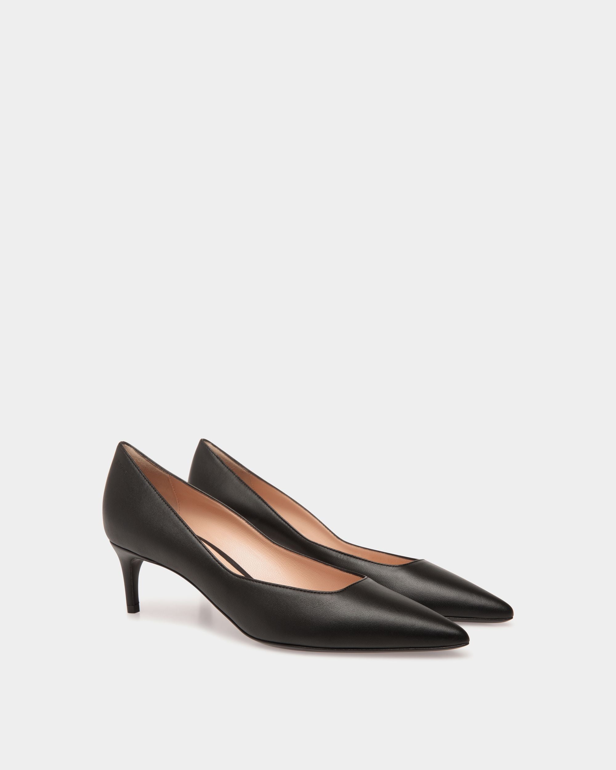 These pumps are made from supple leather. They have a leather-covered heel and pointed toe.