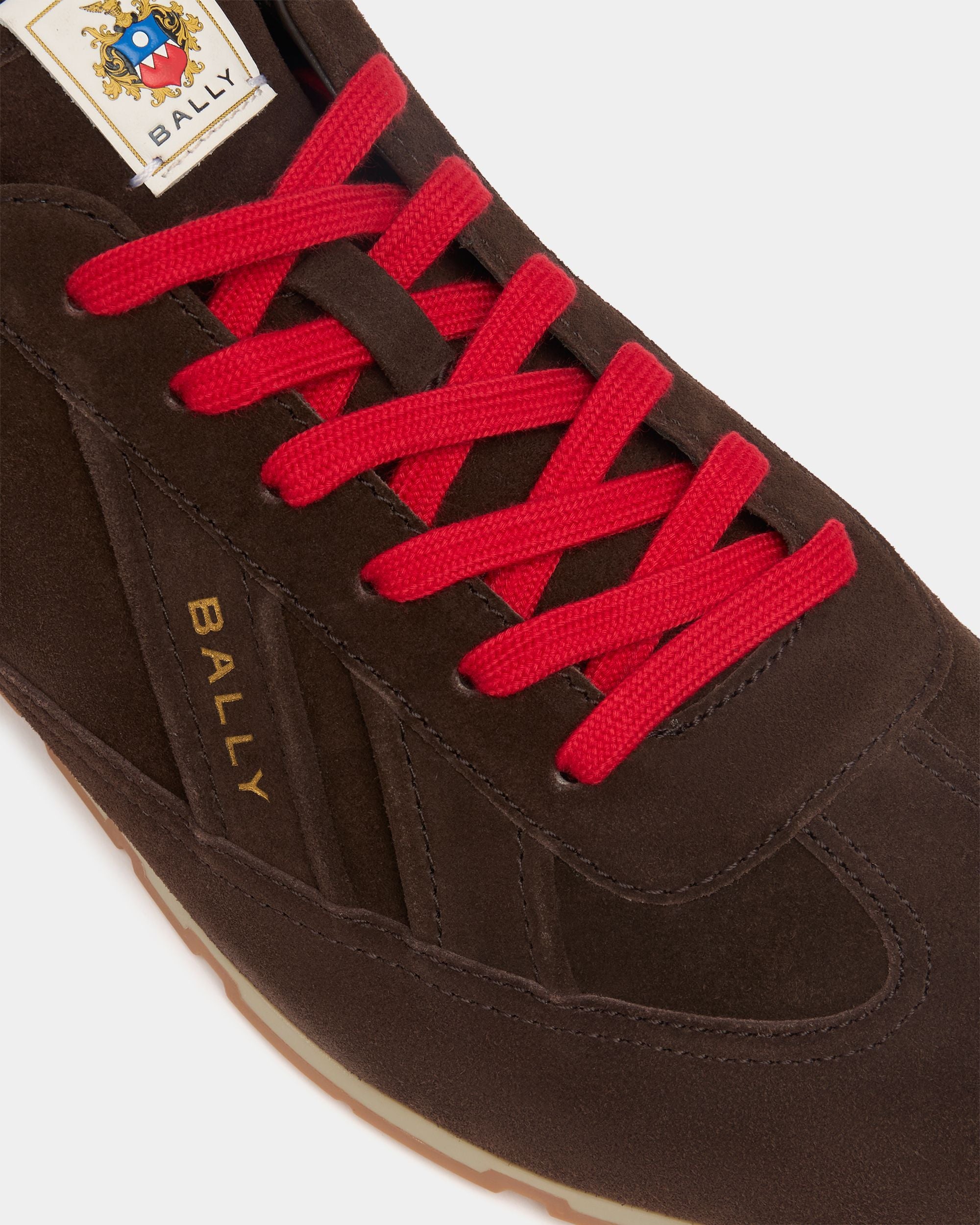 This lace-up Quarry sneaker in Ebano calf suede is embellished by a Bally logo and a minimalist tone-on-tone ribbon at the side. The sole is in ultra-slim TPU. an expression of the iconic design and advanced performance that have distinguished Bally since 1851.