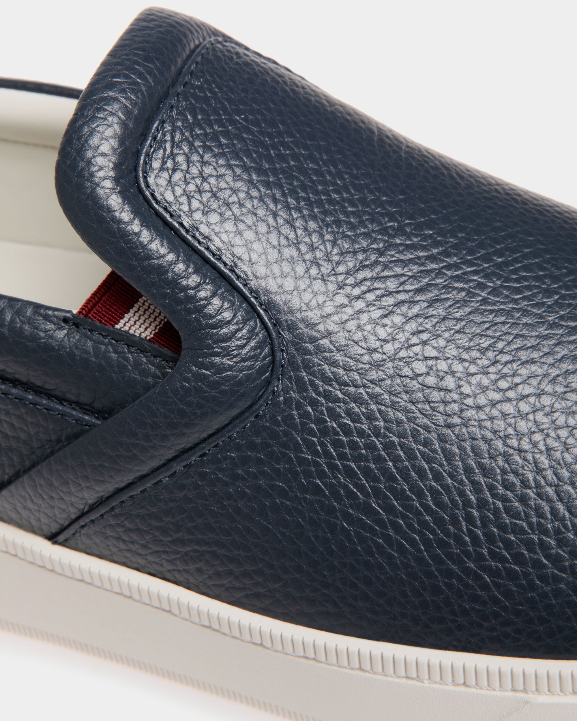 These slip-on sneakers are crafted from blue grained leather and effortlessly combine comfort and style.
