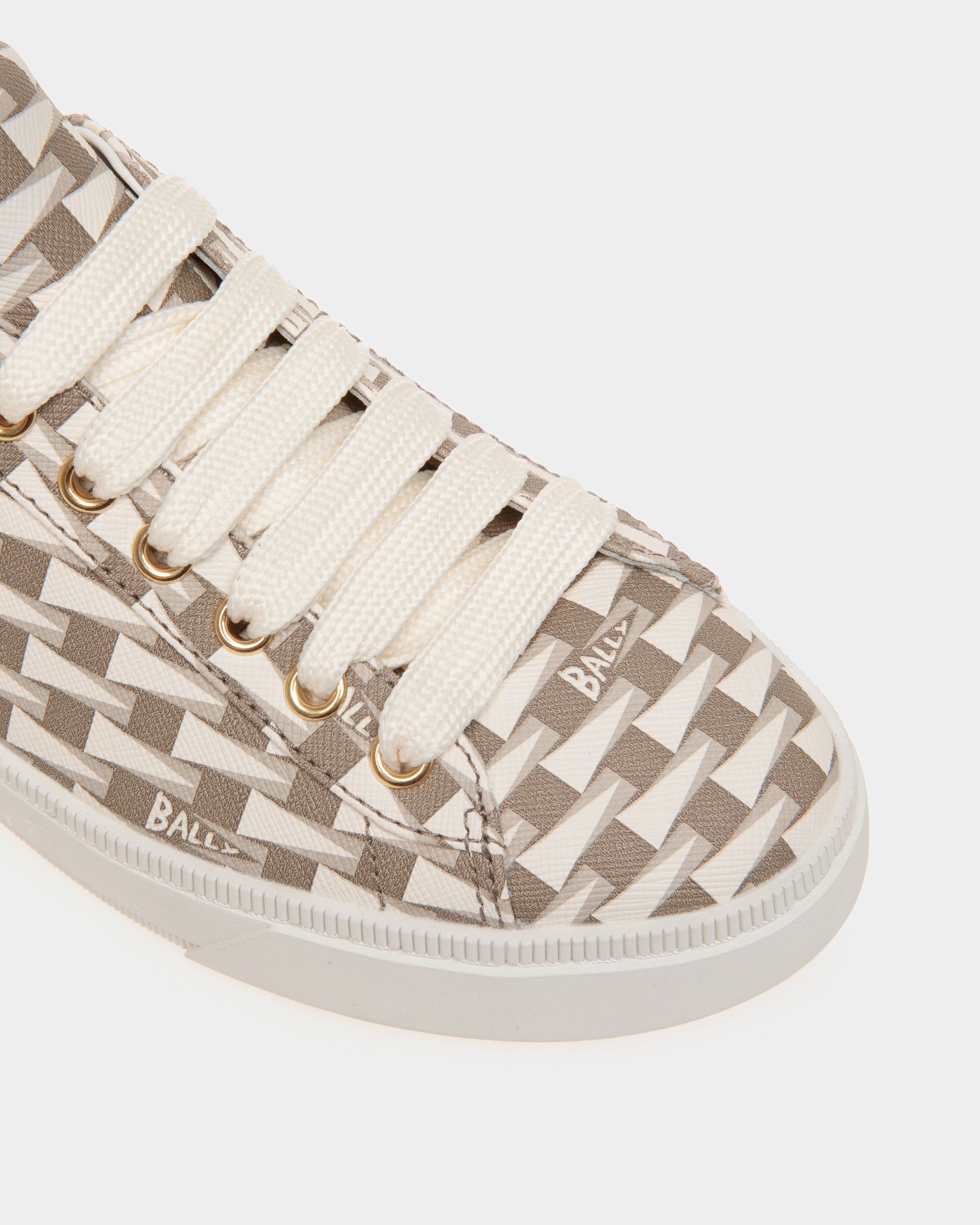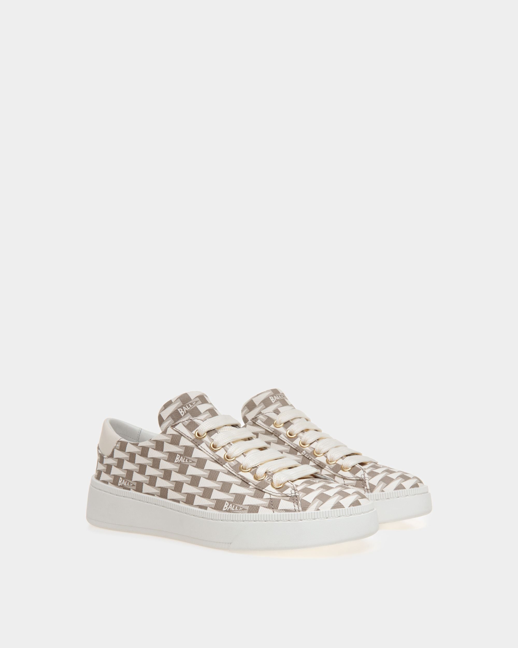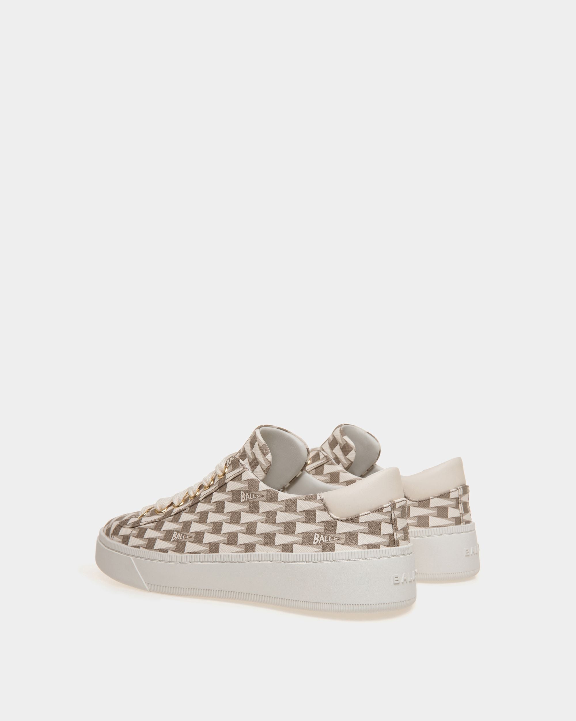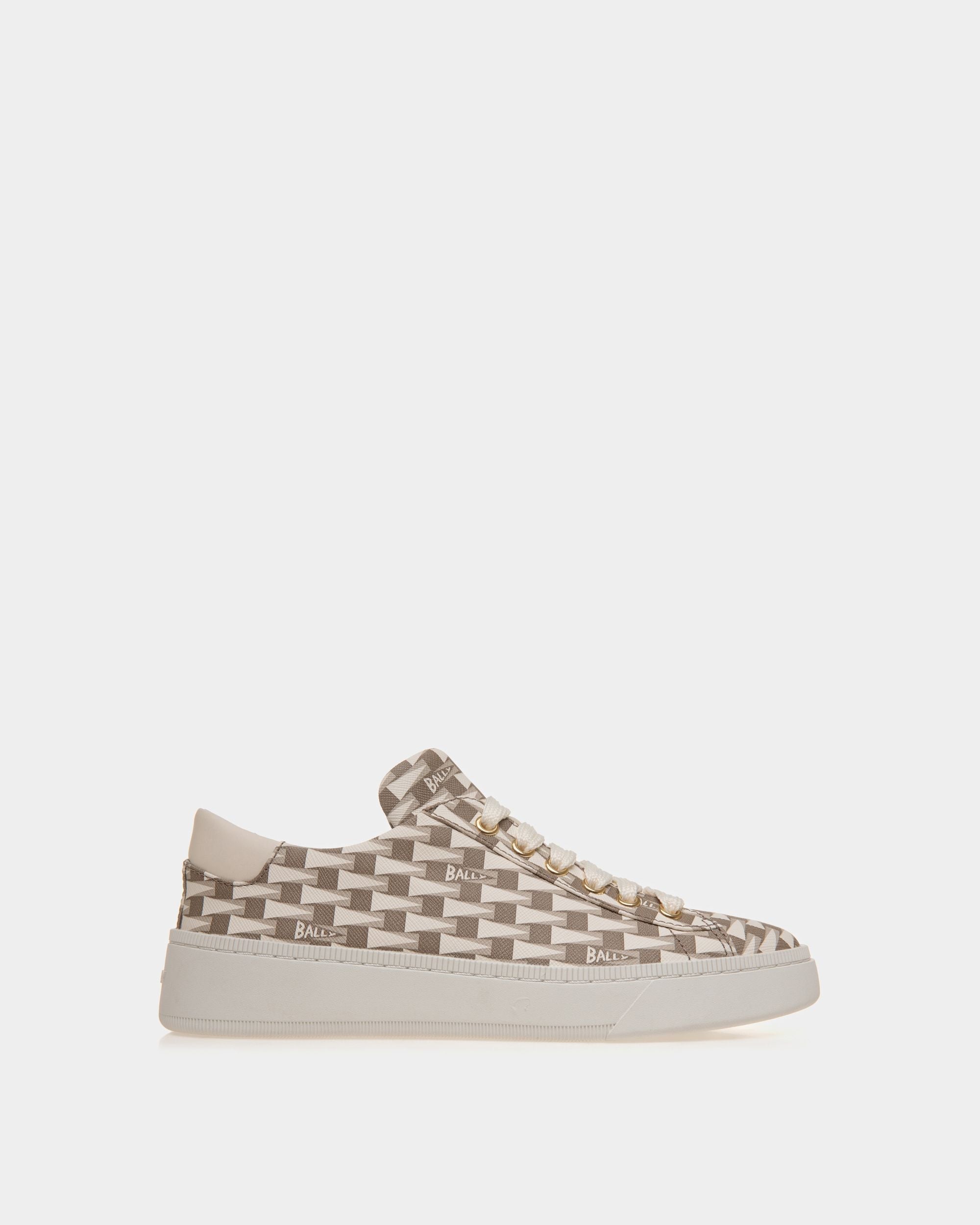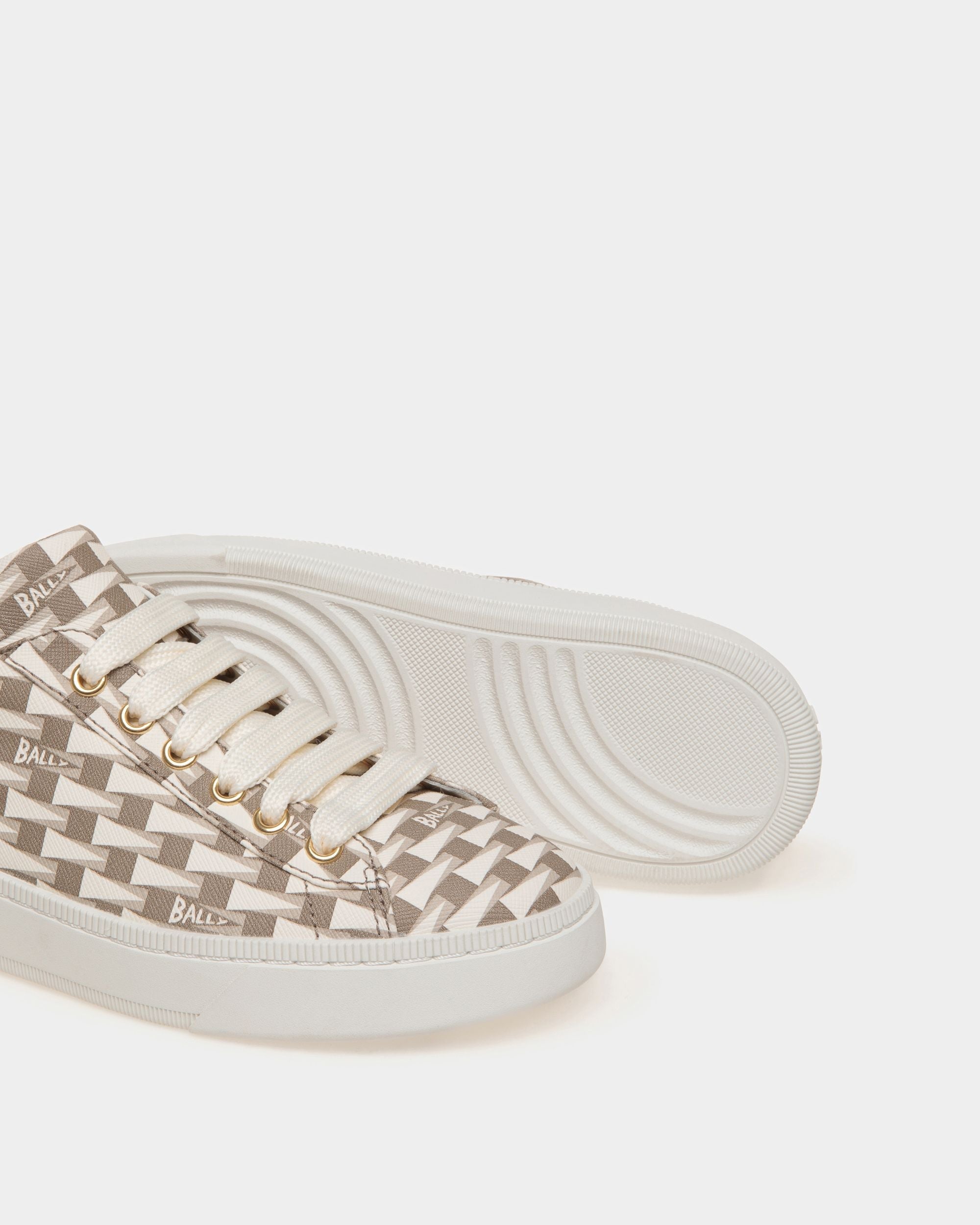 Crafted with exquisite attention to detail. these sneakers feature a versatile beige colorway and a Bally pennant motif. Resting on a durable. high-quality rubber sole. they offer both style and comfort in casual wardrobes.