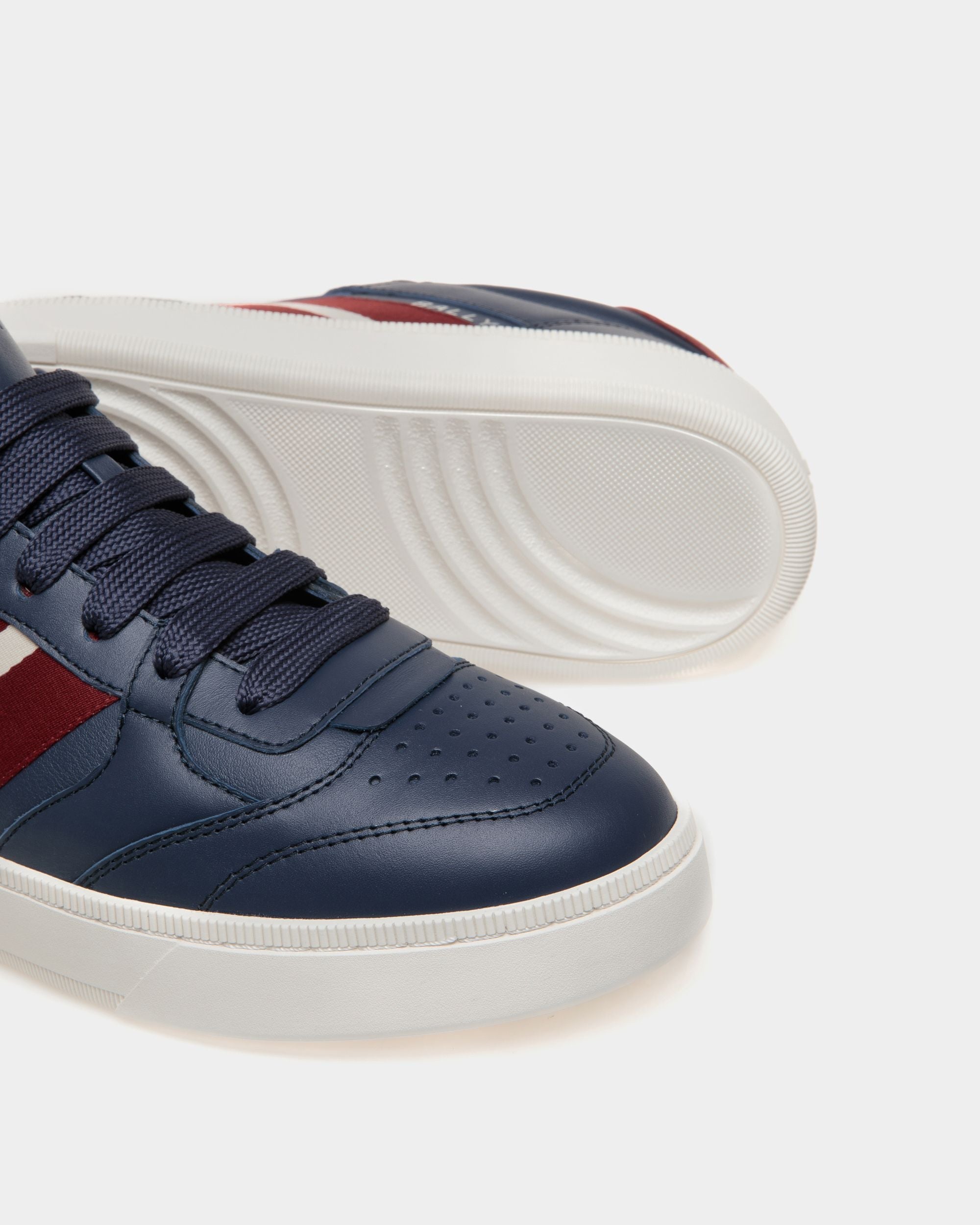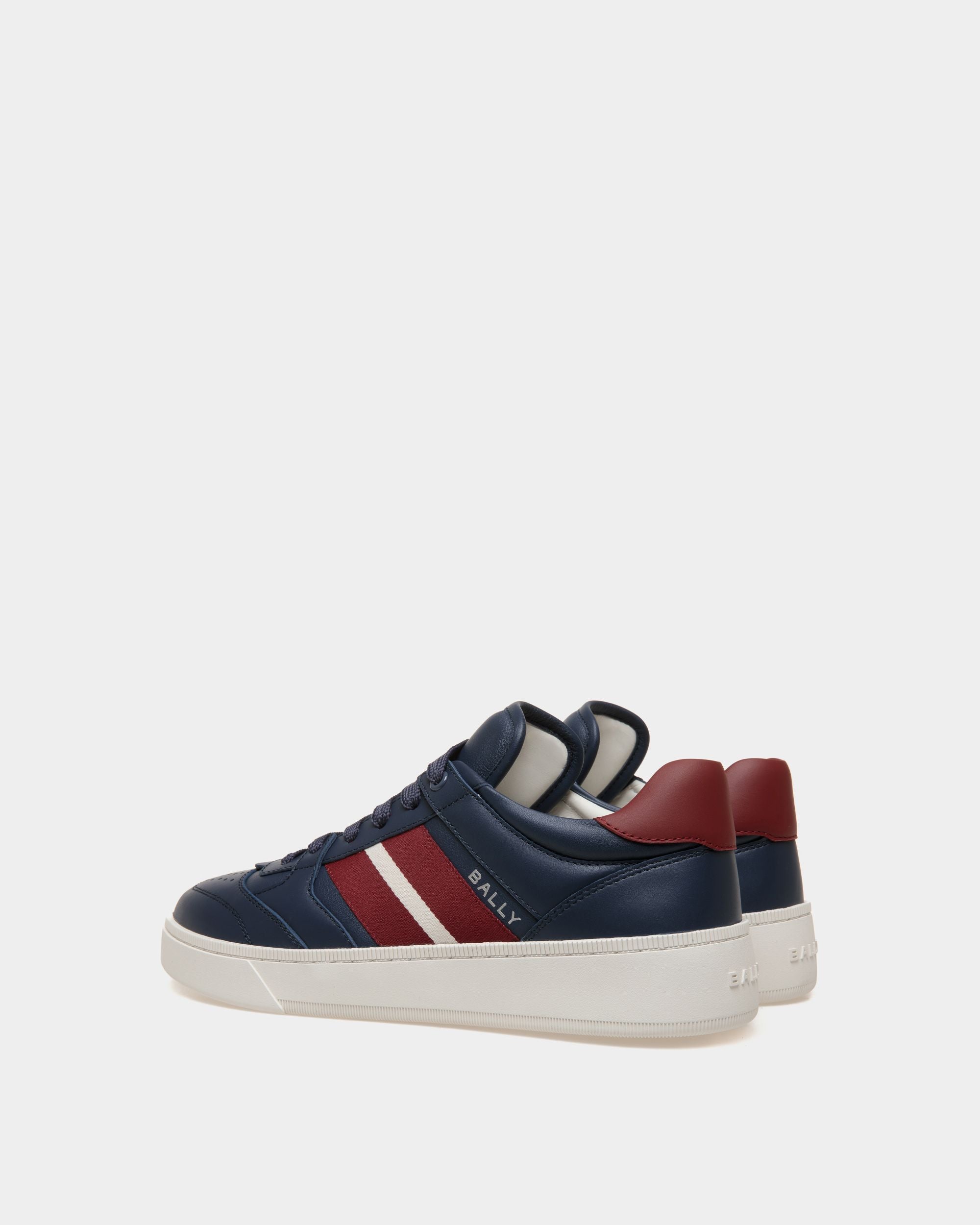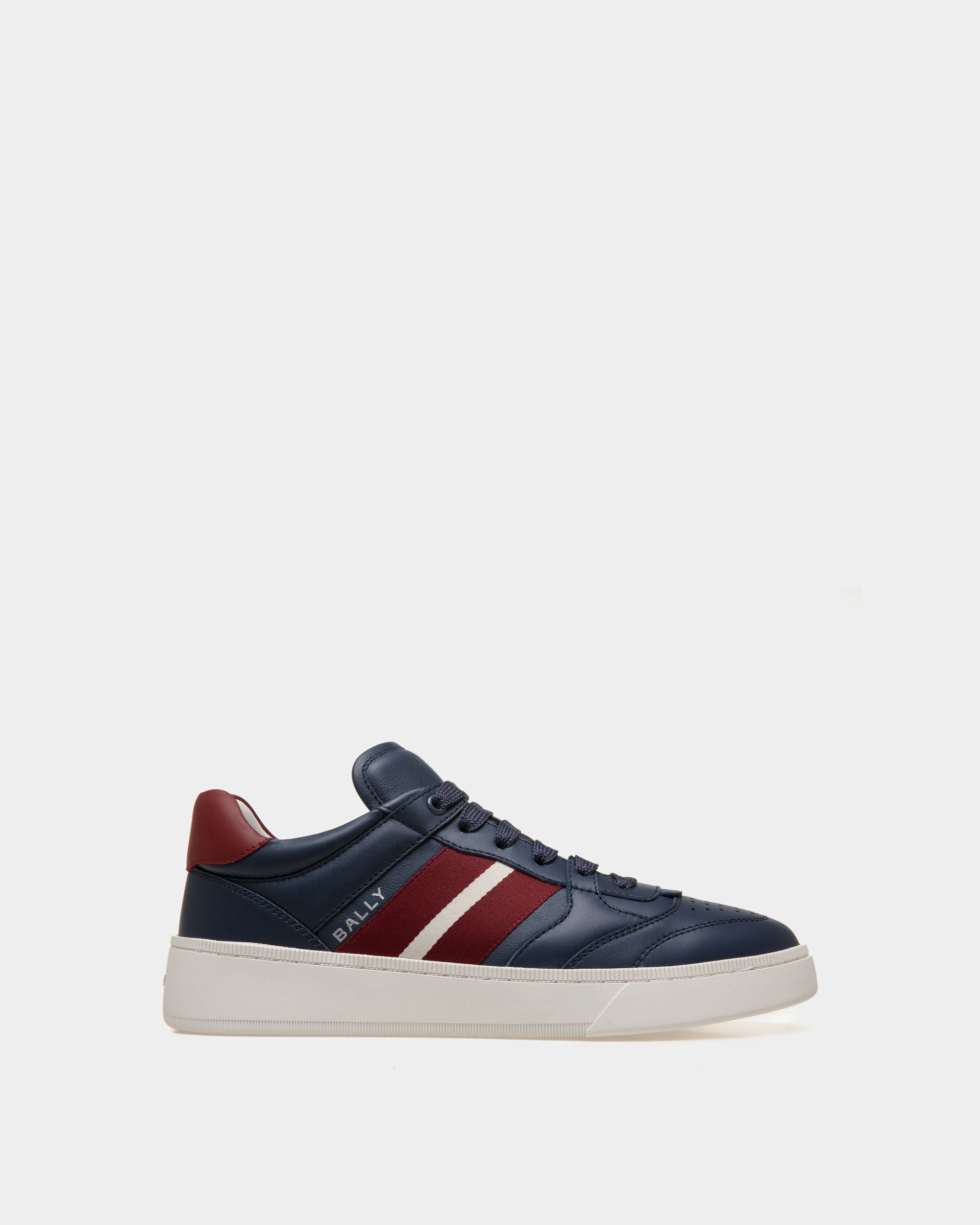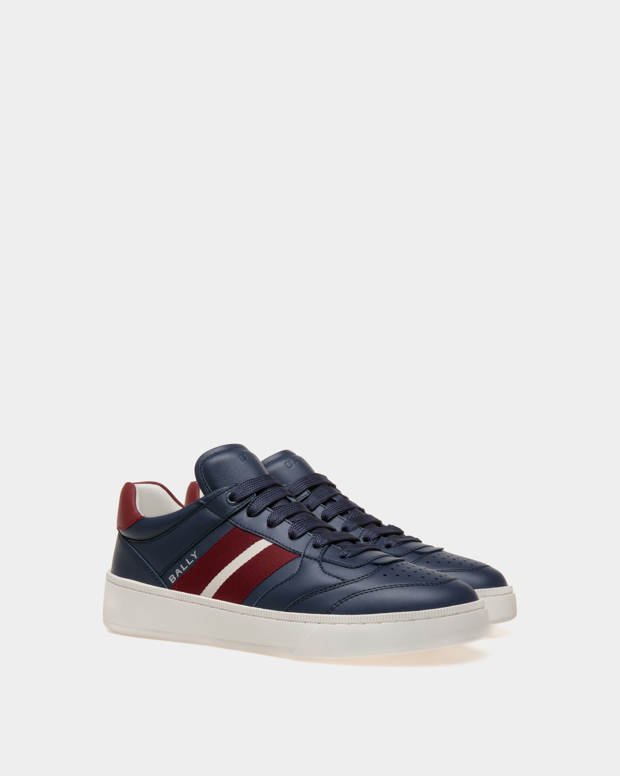With a sleek design emblazoned by a red and white Bally Ribbon. these blue leather sneakers combine style and functionality. The supple calfskin upper offers a luxurious feel. while the rubber sole guarantees optimal grip and flexibility for all-day comfort.