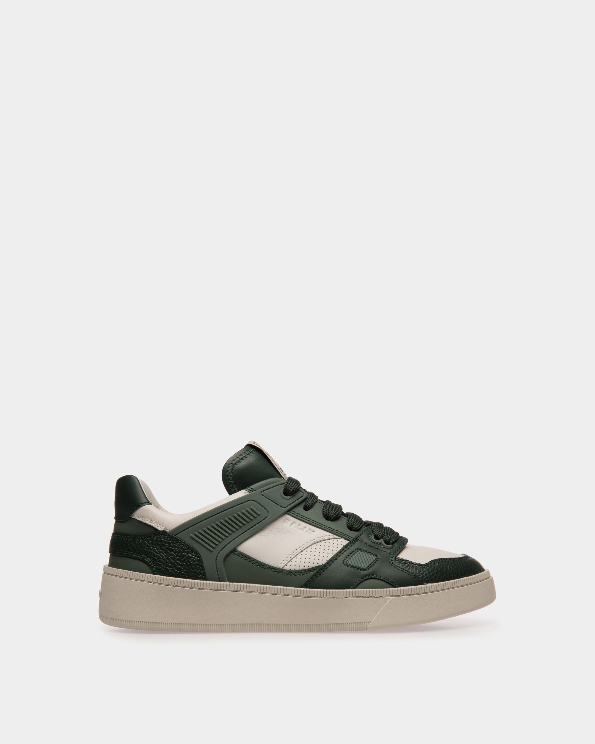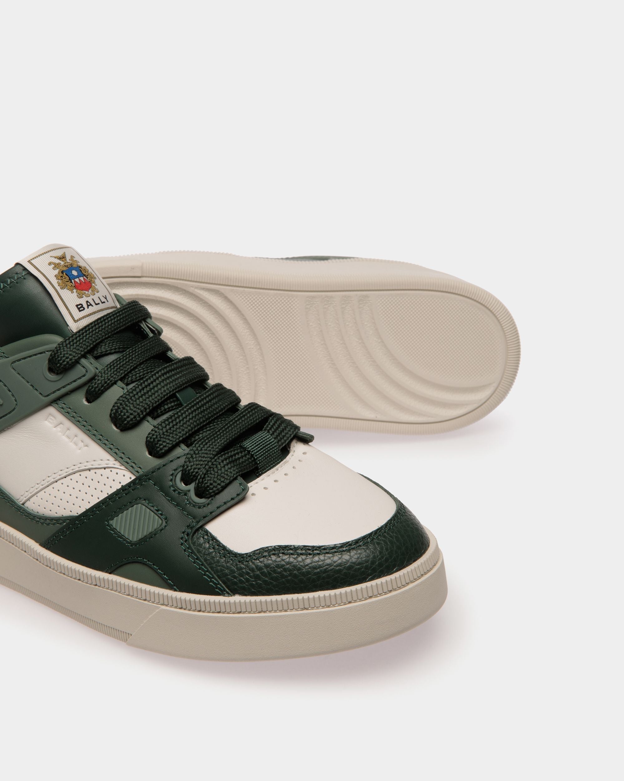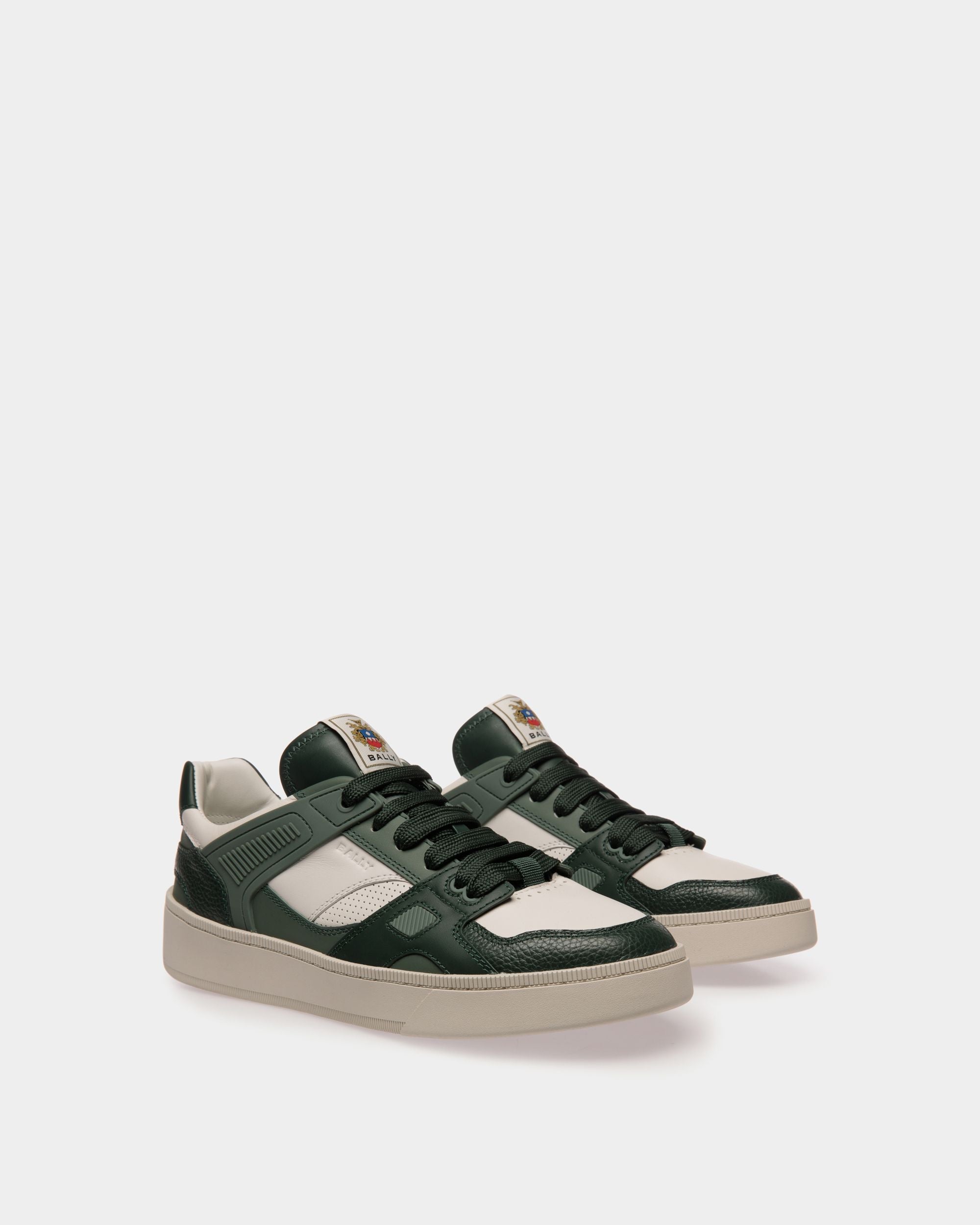 Fresh and dynamic. this low-top Raise sneaker is intricately decorated by leather panels and a Bally Crest label. A raised rubber sole offers all-day comfort and style.