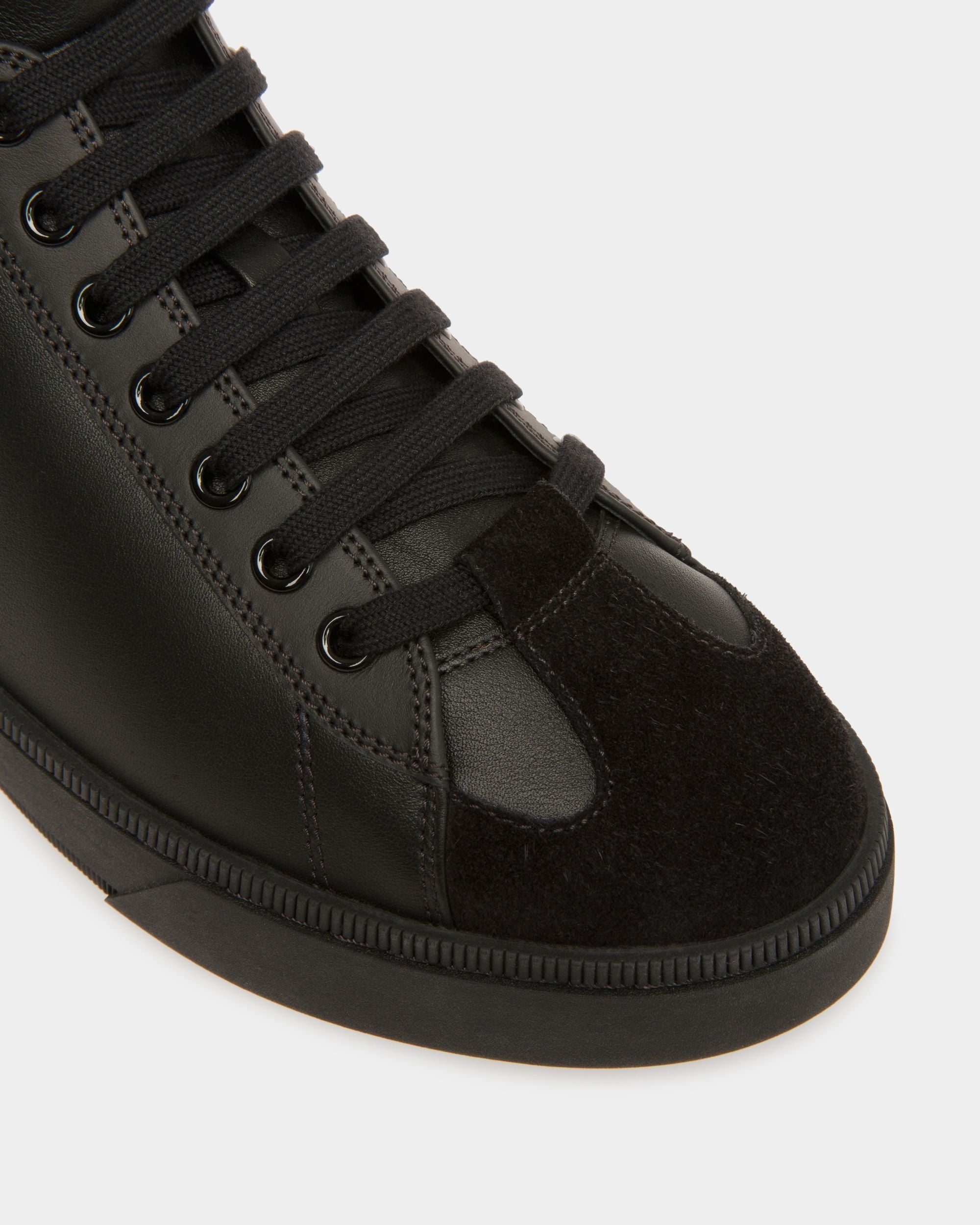 Part of the Raise sneaker collection. the Randy is a high-top style. laced all the way to the ankle. Python print adds a subtle extra touch to the sleek all-black design.