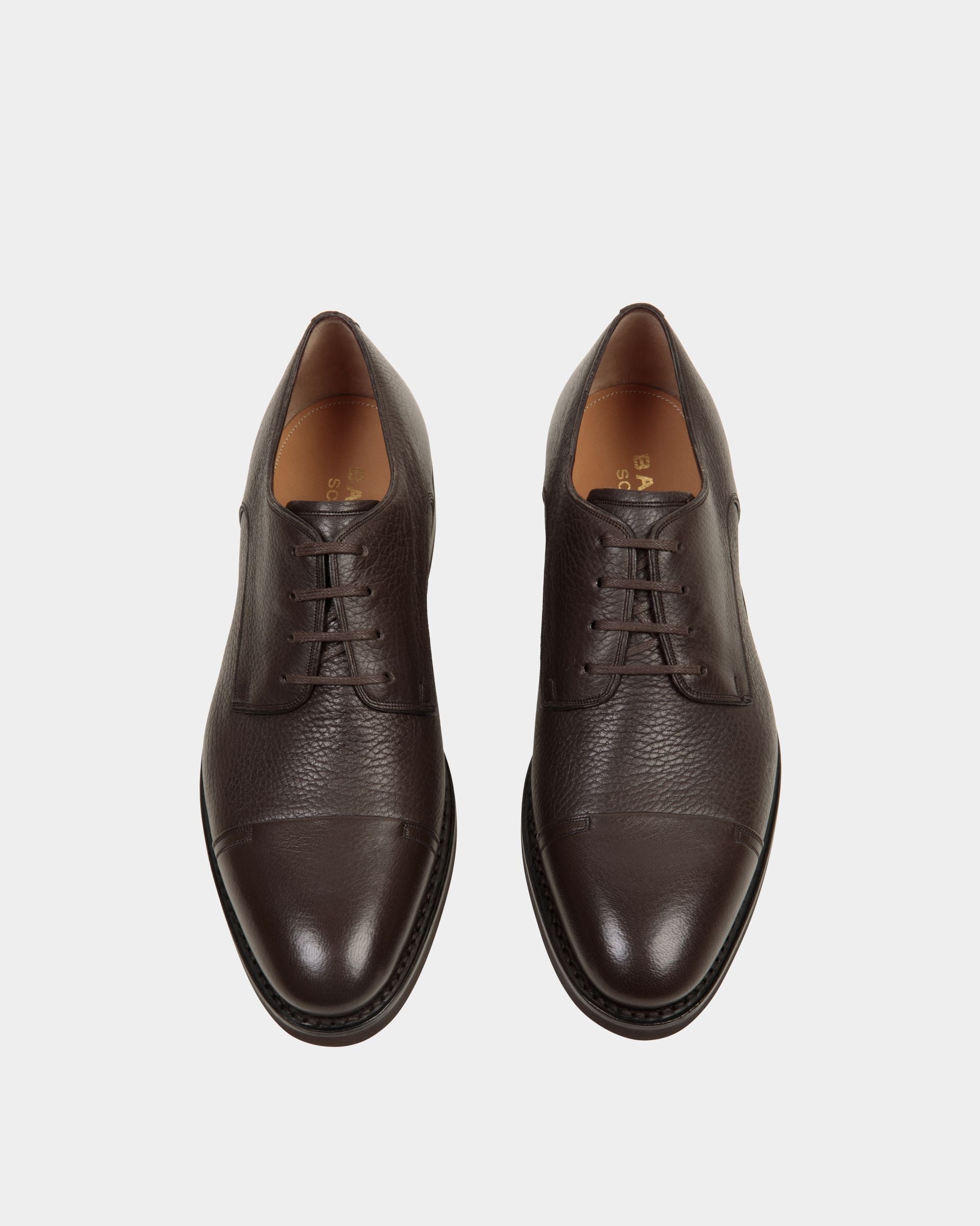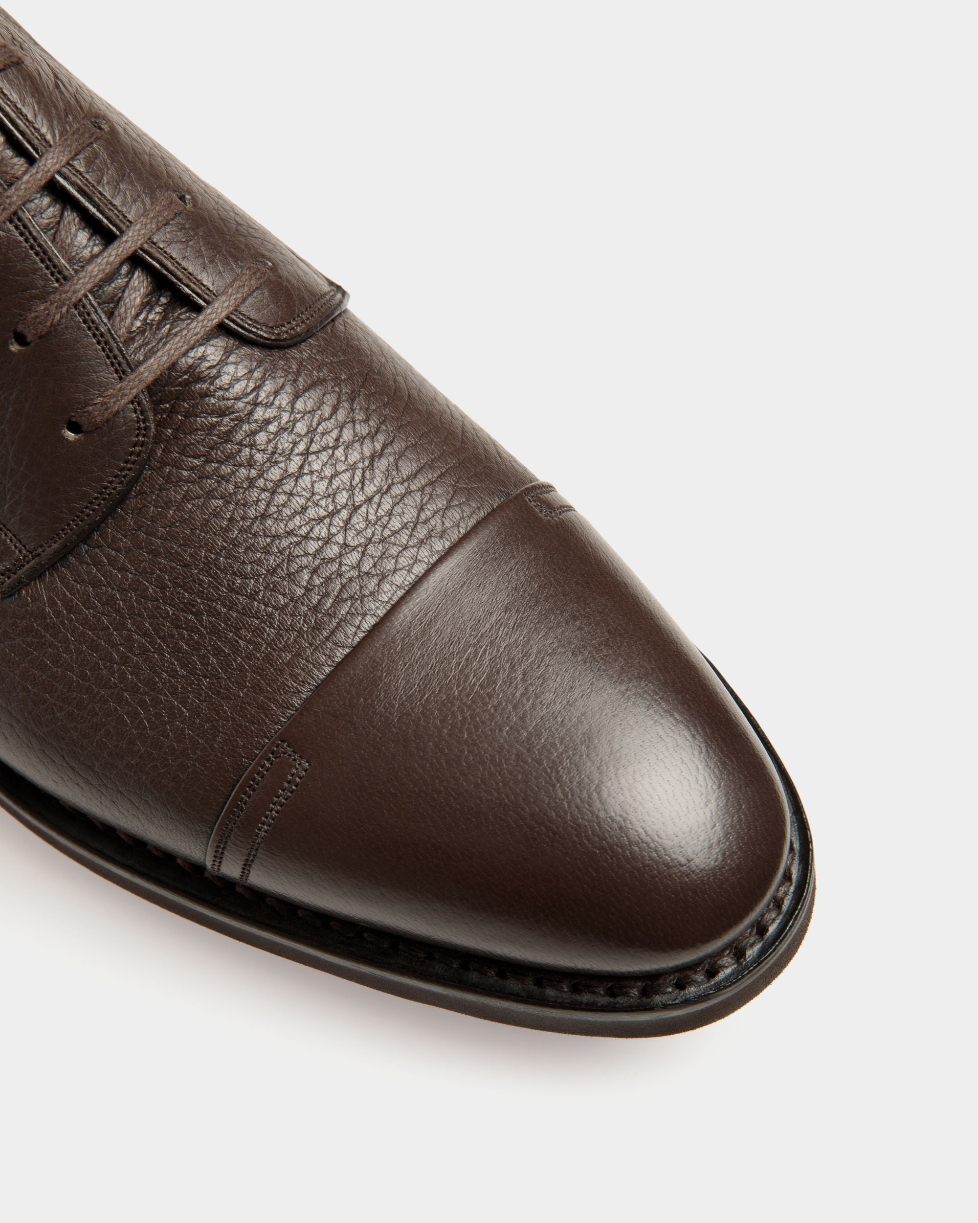 Timeless and hand-crafted. this Scribe Un derby is Bally’s interpretation of a classic lace-up silhouette. The smooth cap toe is juxtaposed with the grained vamp for added distinction. Meticulous stitching – 9 stitches per centimeter – reveals the artisanal spirit of this style.