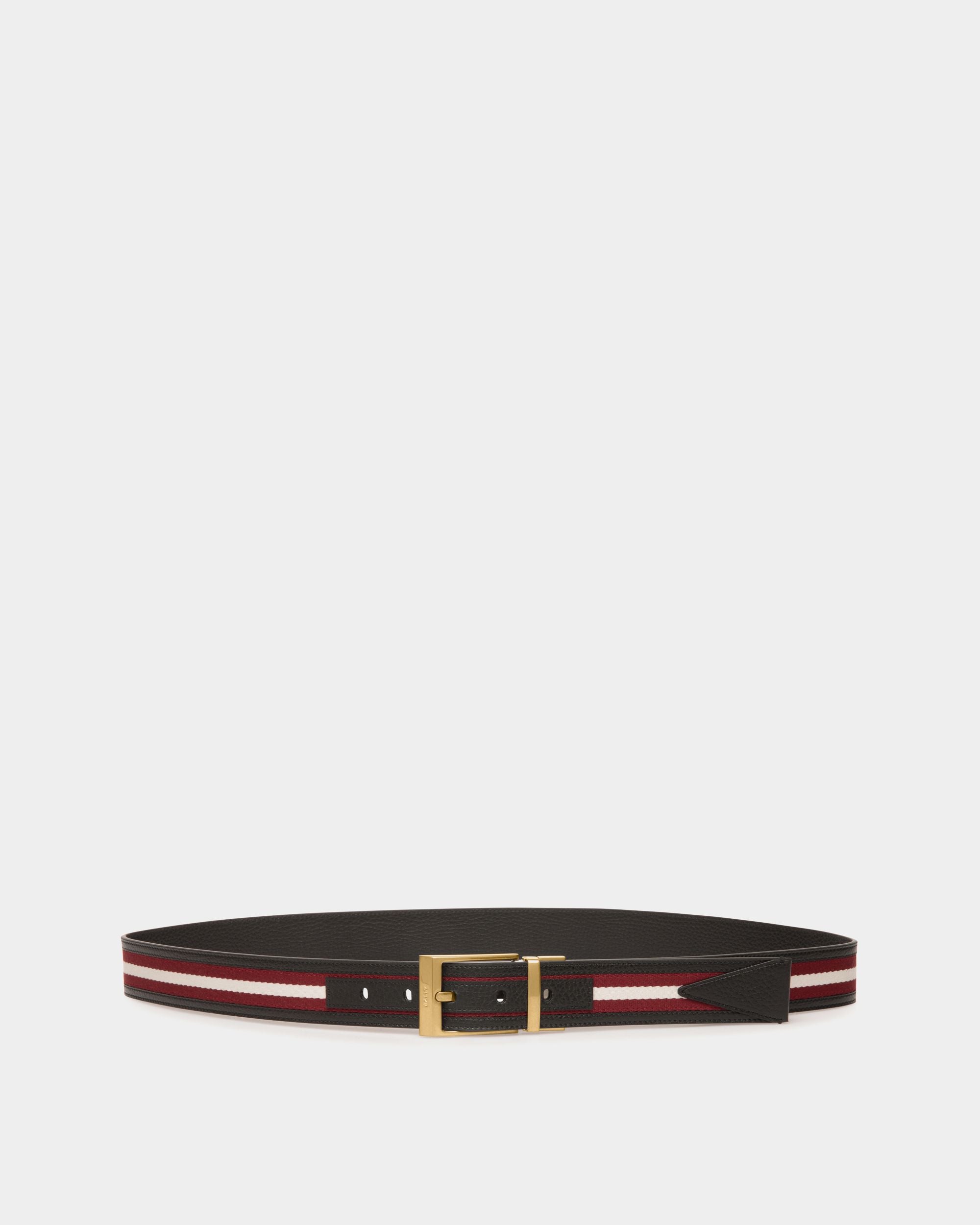 A Bally Ribbon in fabric has been set into one side of this reversible Shiffie 35 mm belt in grained leather. a technique that conveys the brand’s heritage and craftsmanship.