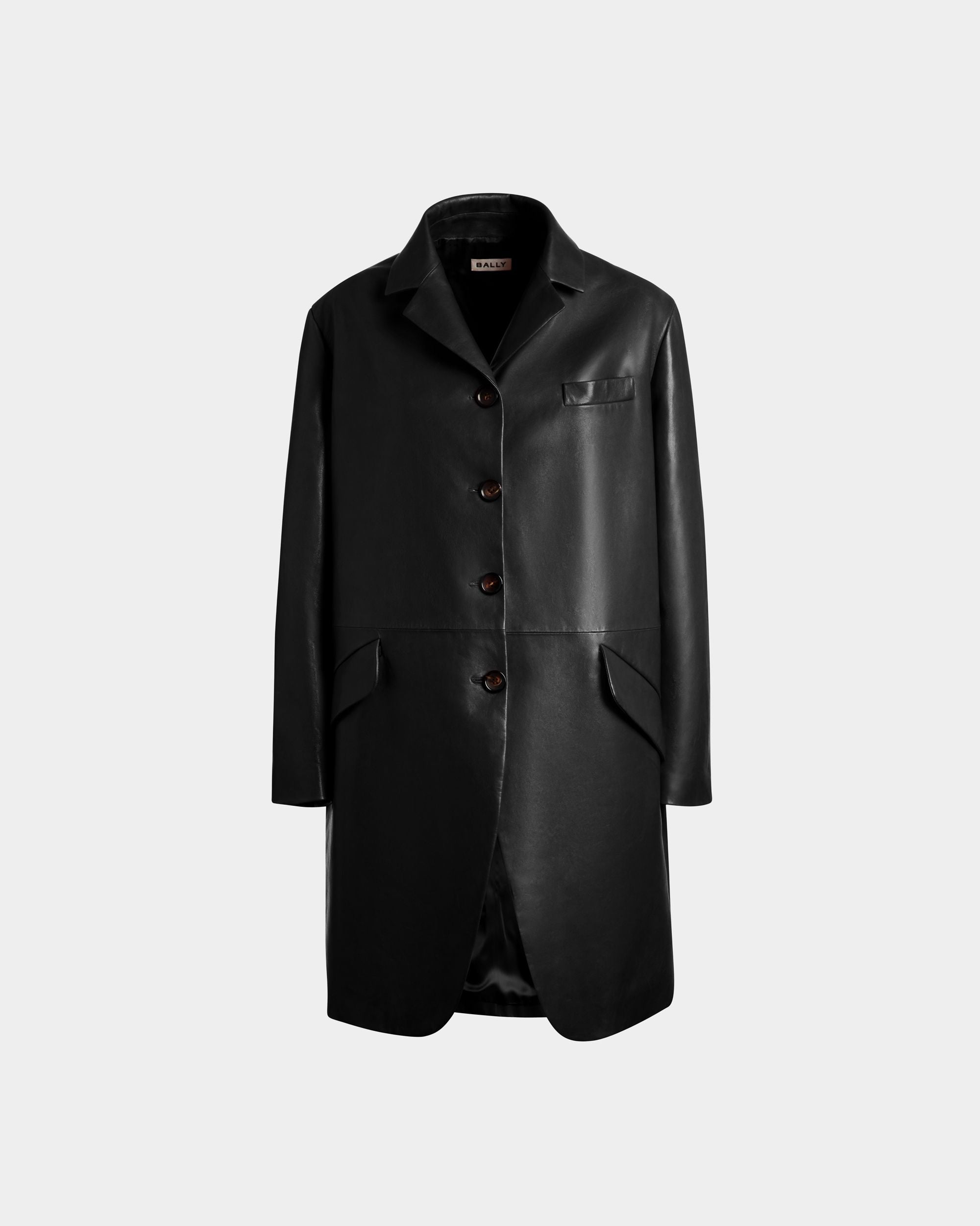Single-Breasted Midi Coat In Black Leather