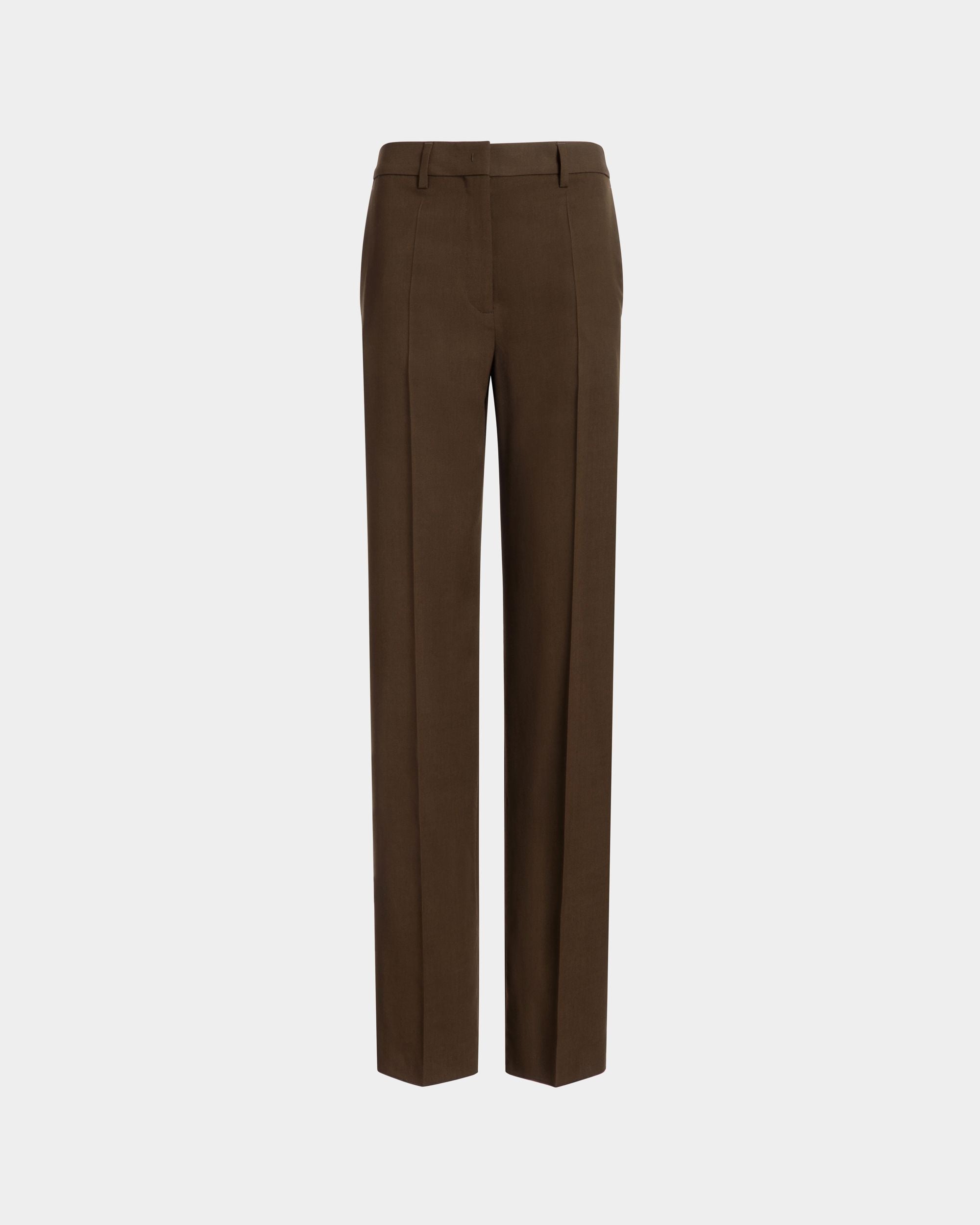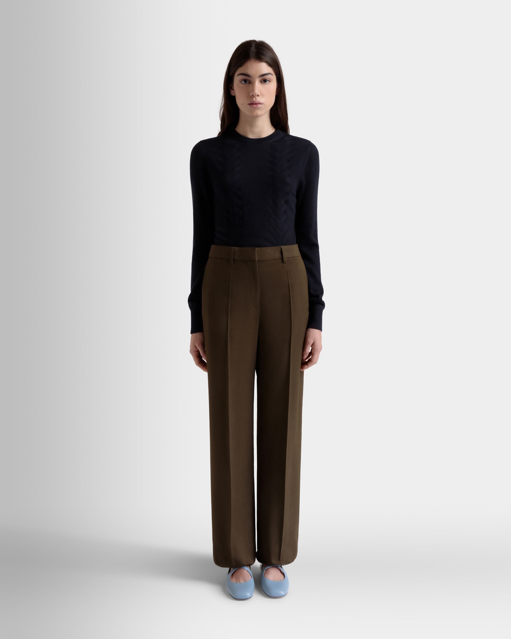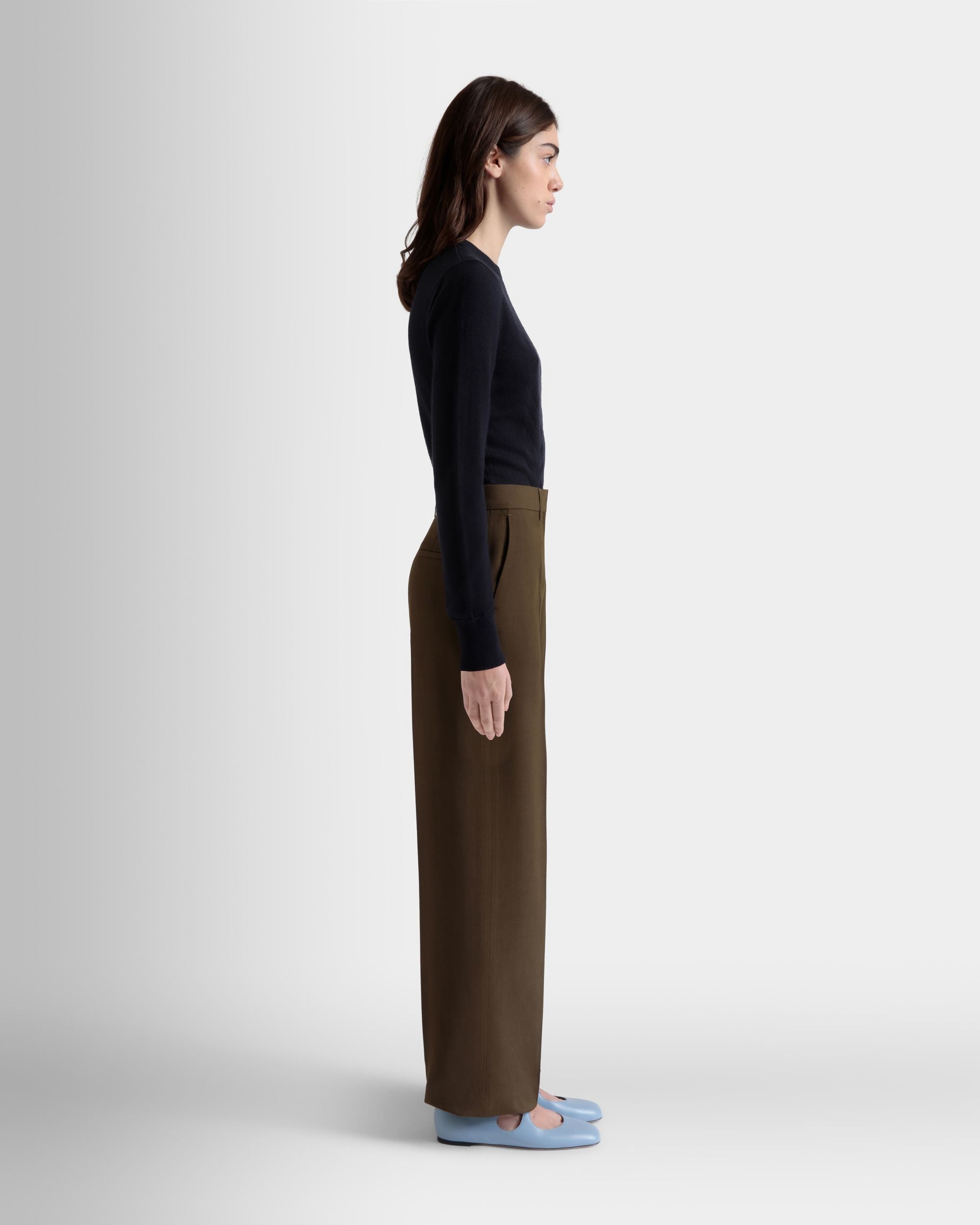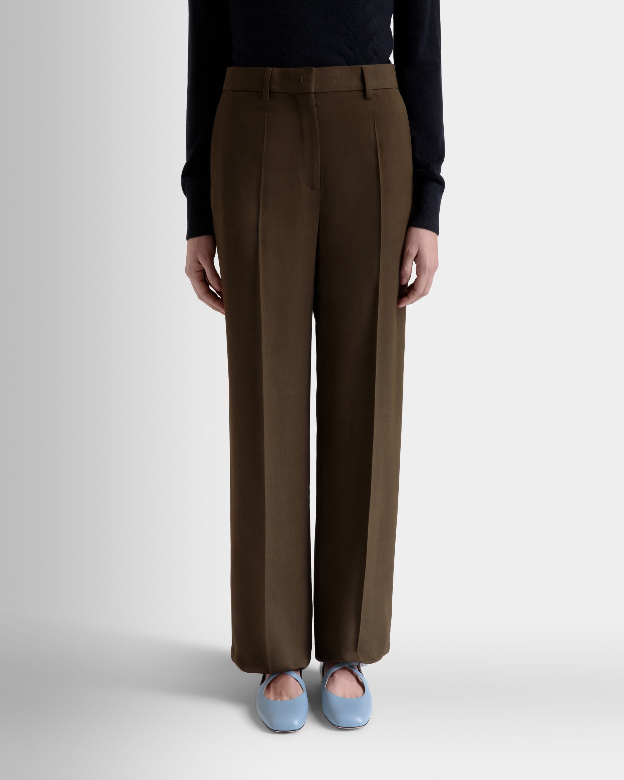 Straight-Leg Pants in Military Green Fluid Gabardine