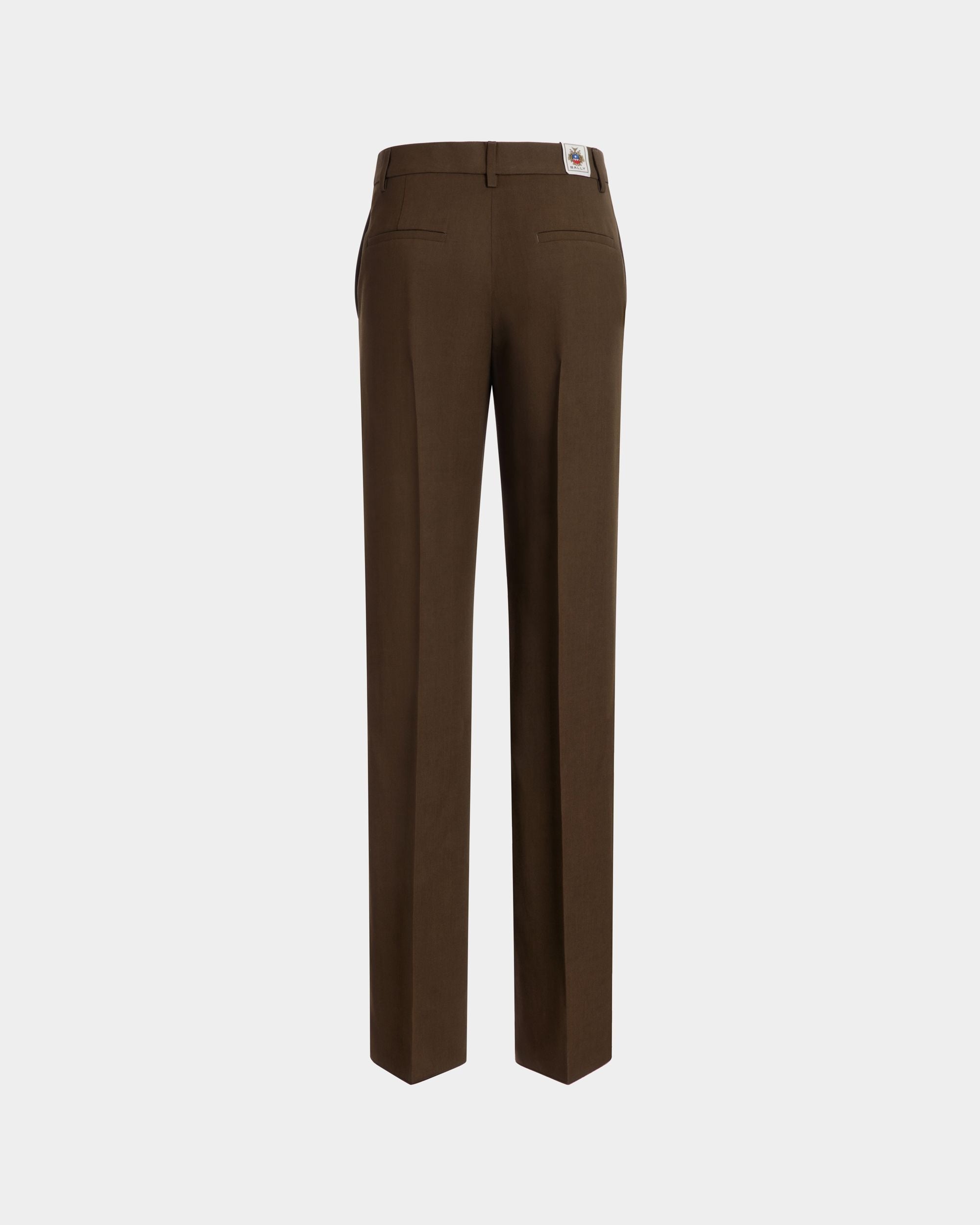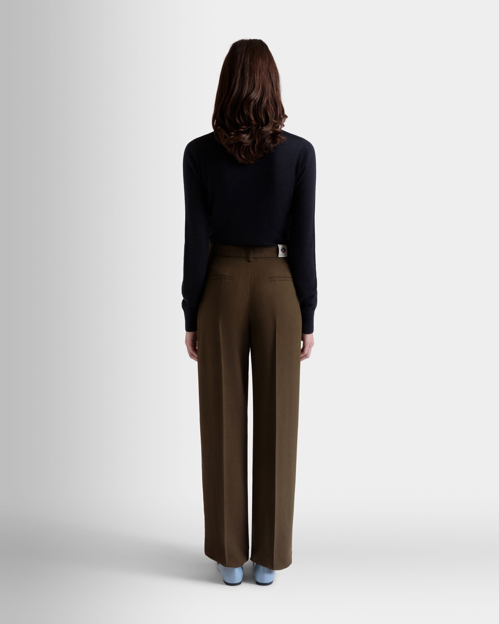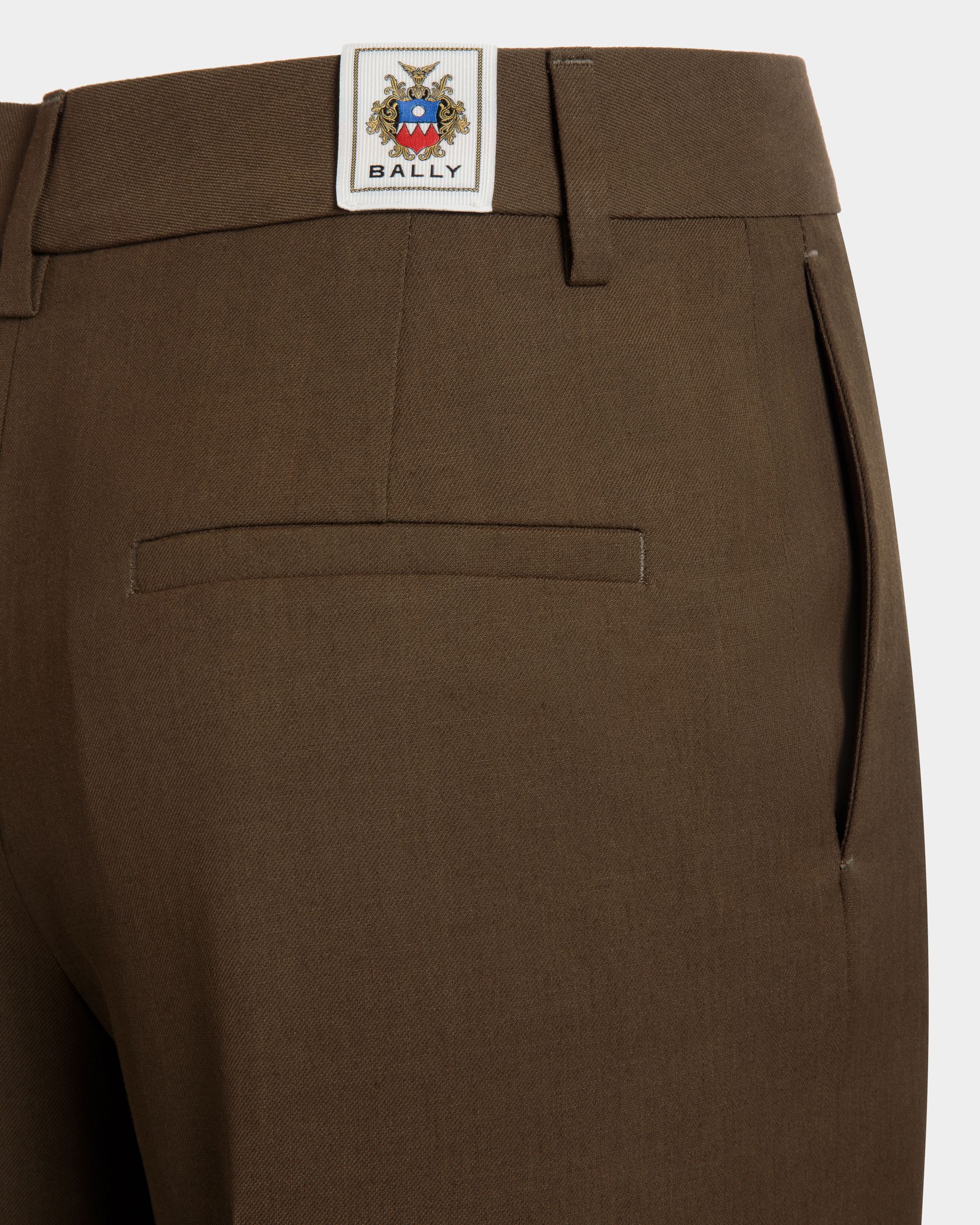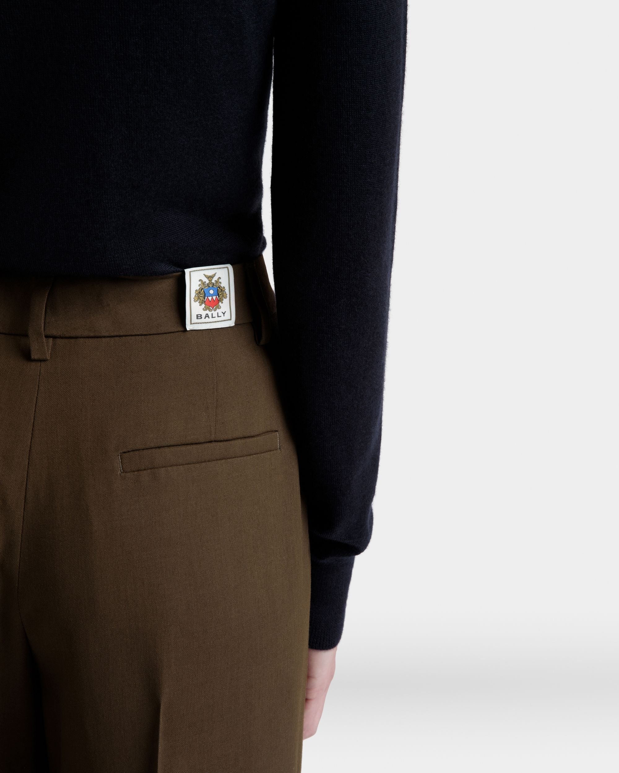 Straight-Leg Pants in Military Green Fluid Gabardine