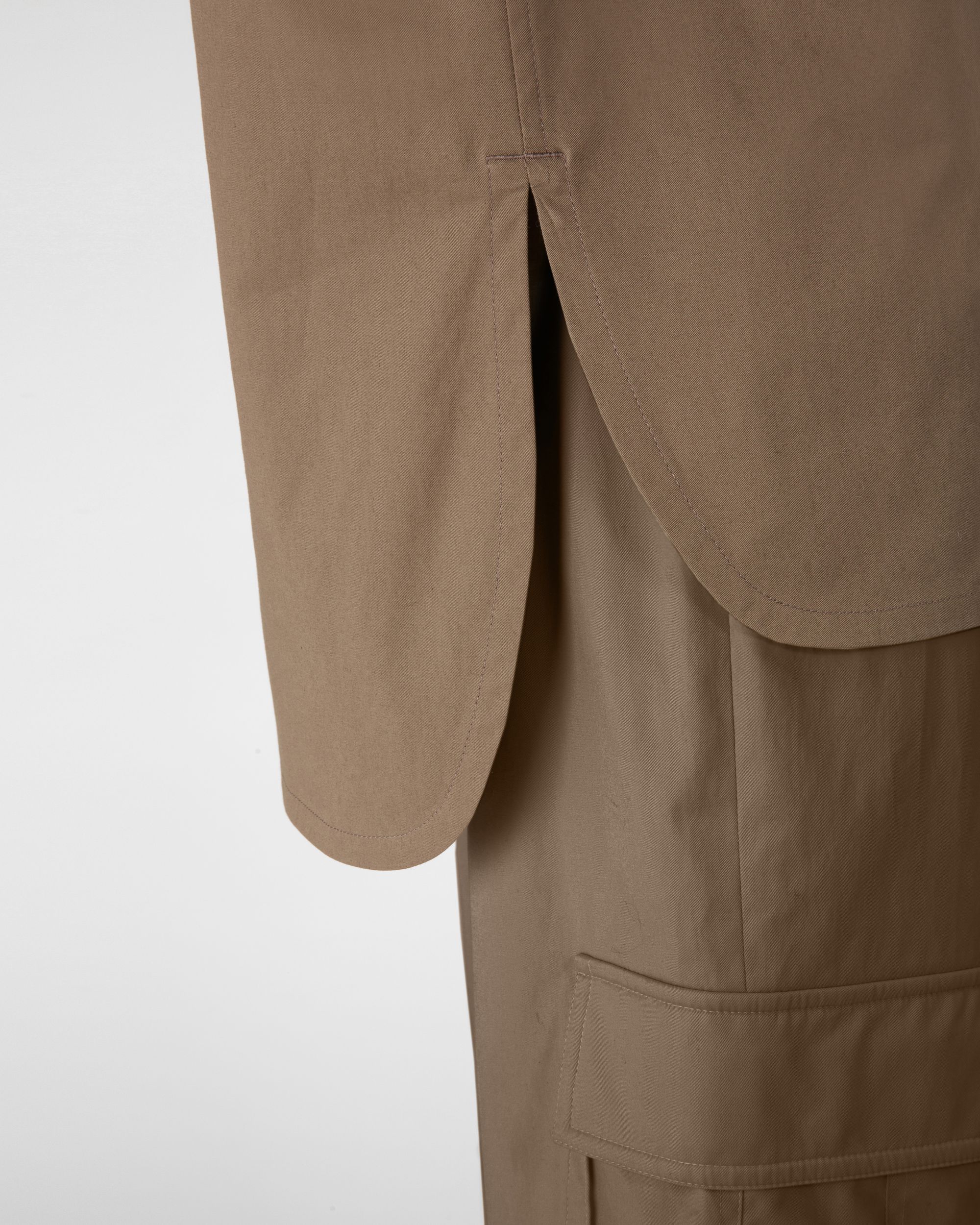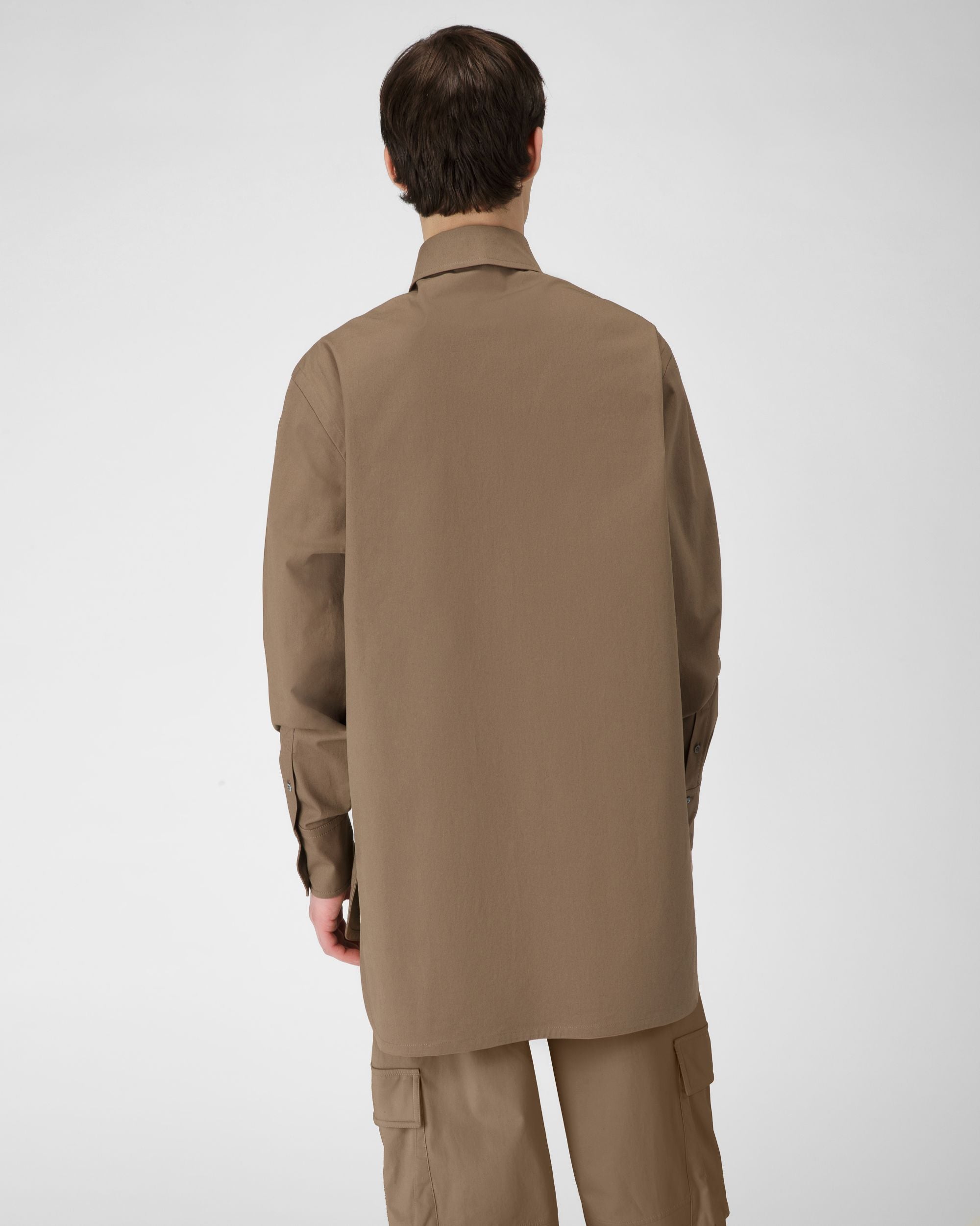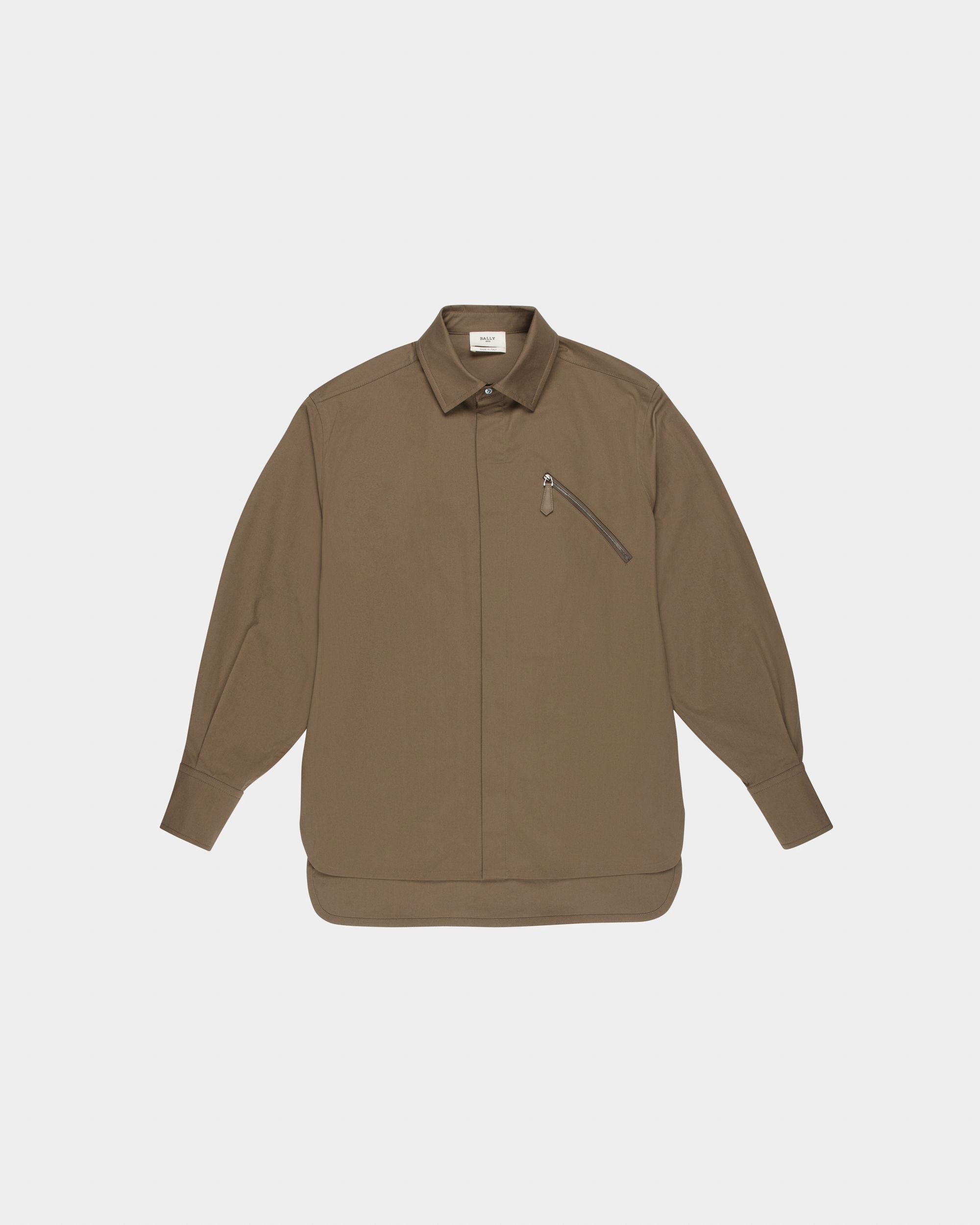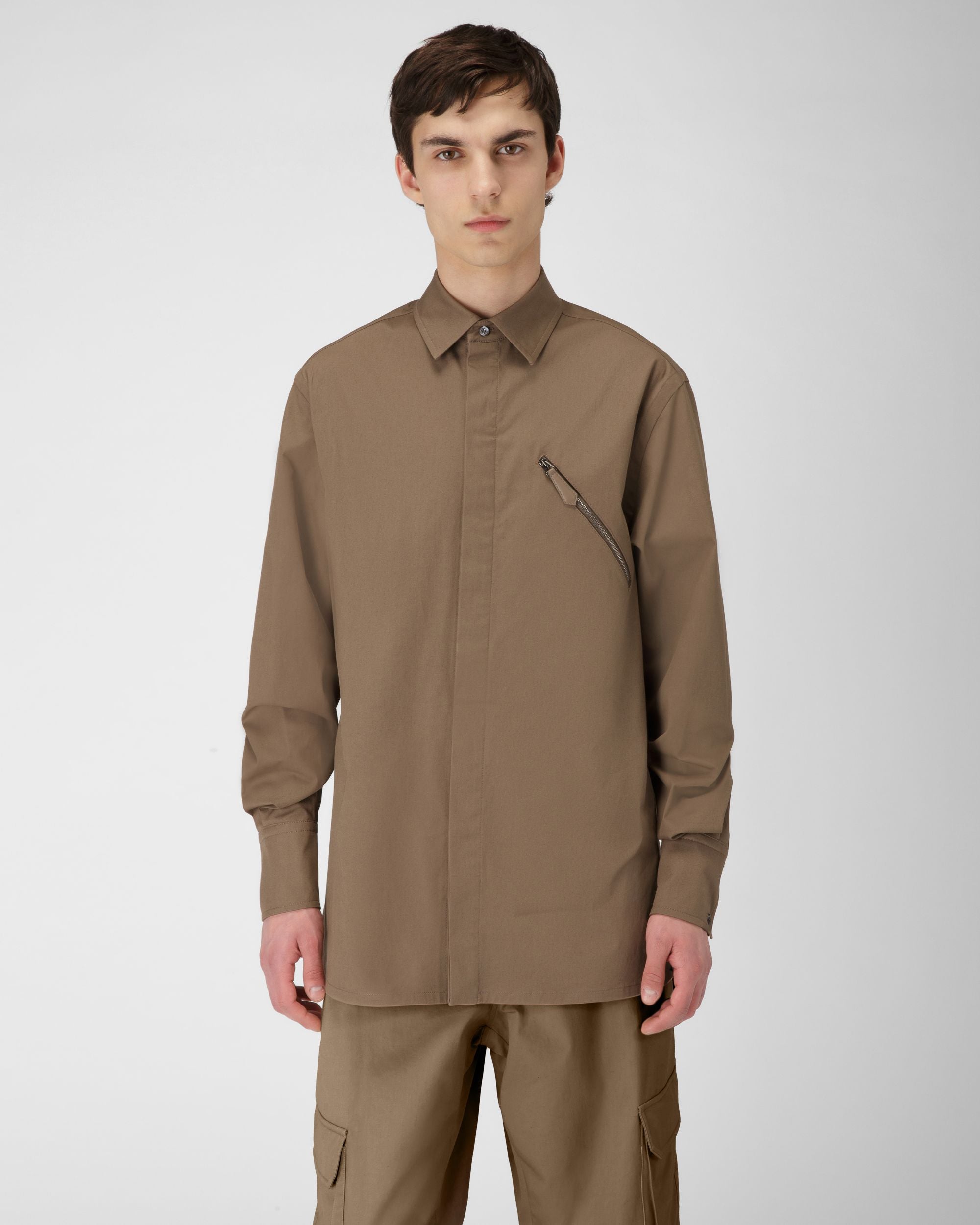 Crafted from taupe cotton with a hint of stretch. this loose-fitting shirt is ideal to elevate everyday looks. A zipped chest pocket adds a special touch.