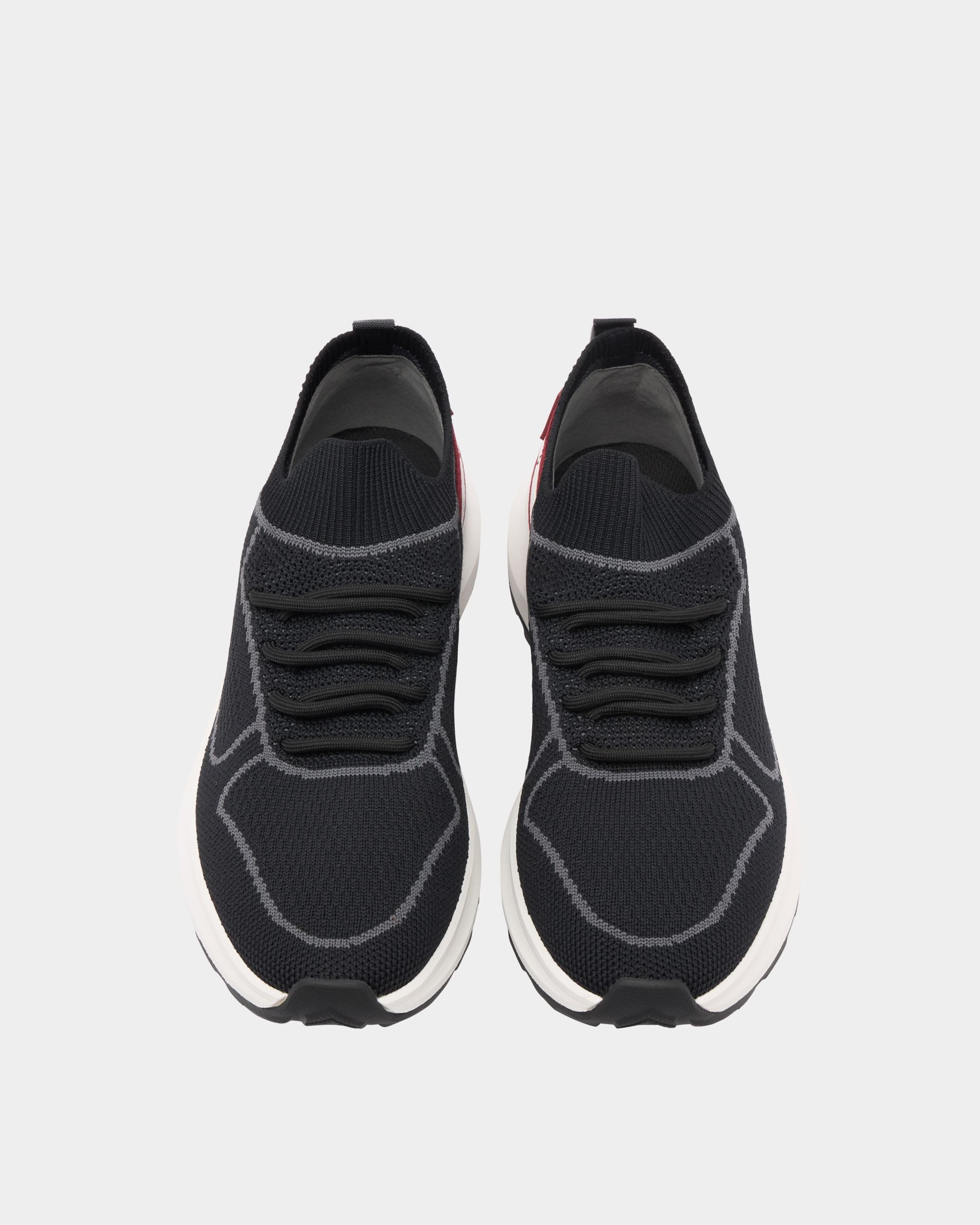The knit upper of the Sylen sneaker promises slip-on comfort and versatility for this running-inspire design. The Ribbon and logo on the heel unite modern aesthetics and Bally heritage in one sleek detail.