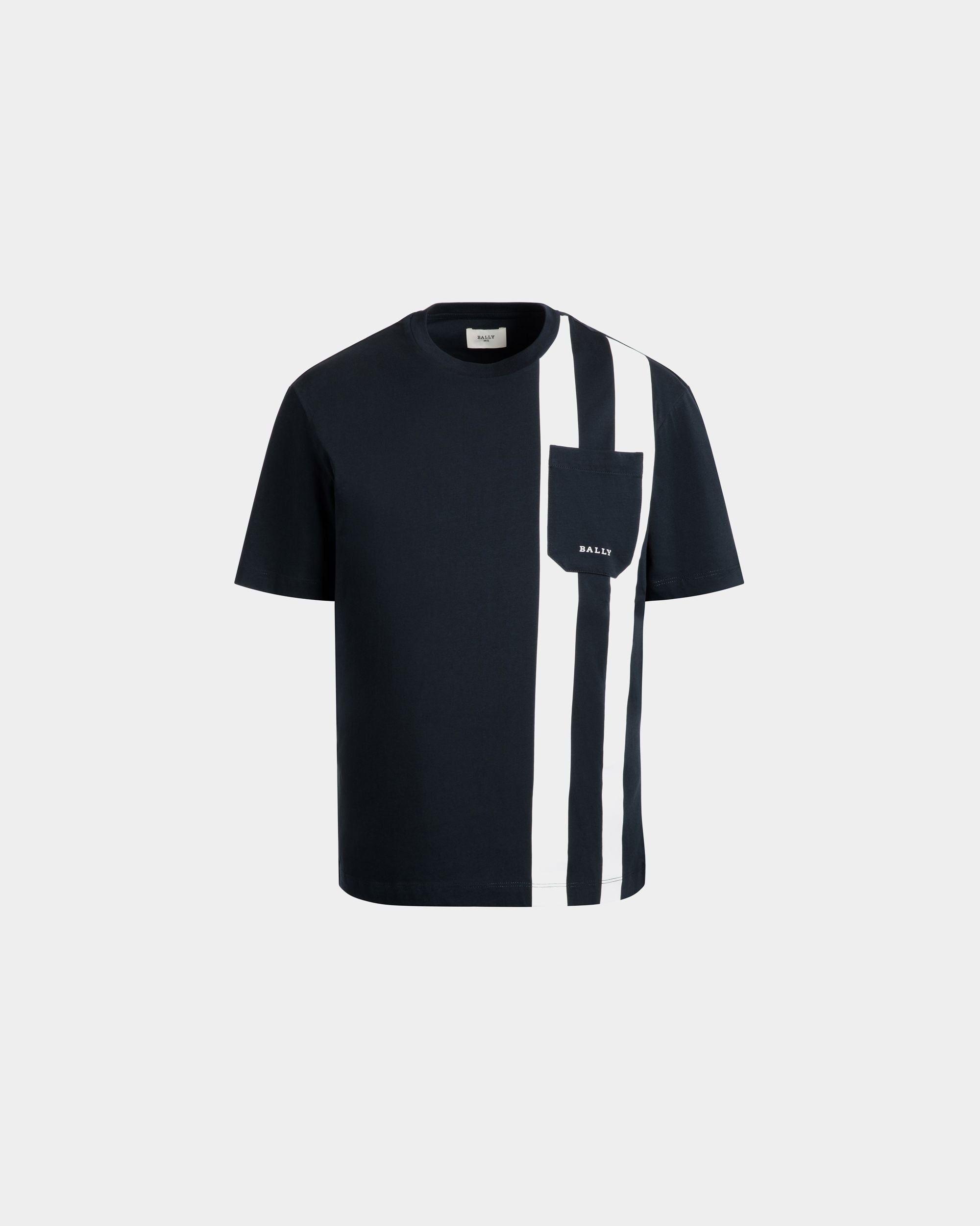 This t-shirt is cut from soft knit cotton jersey. It features contrasting white stripes down the front.