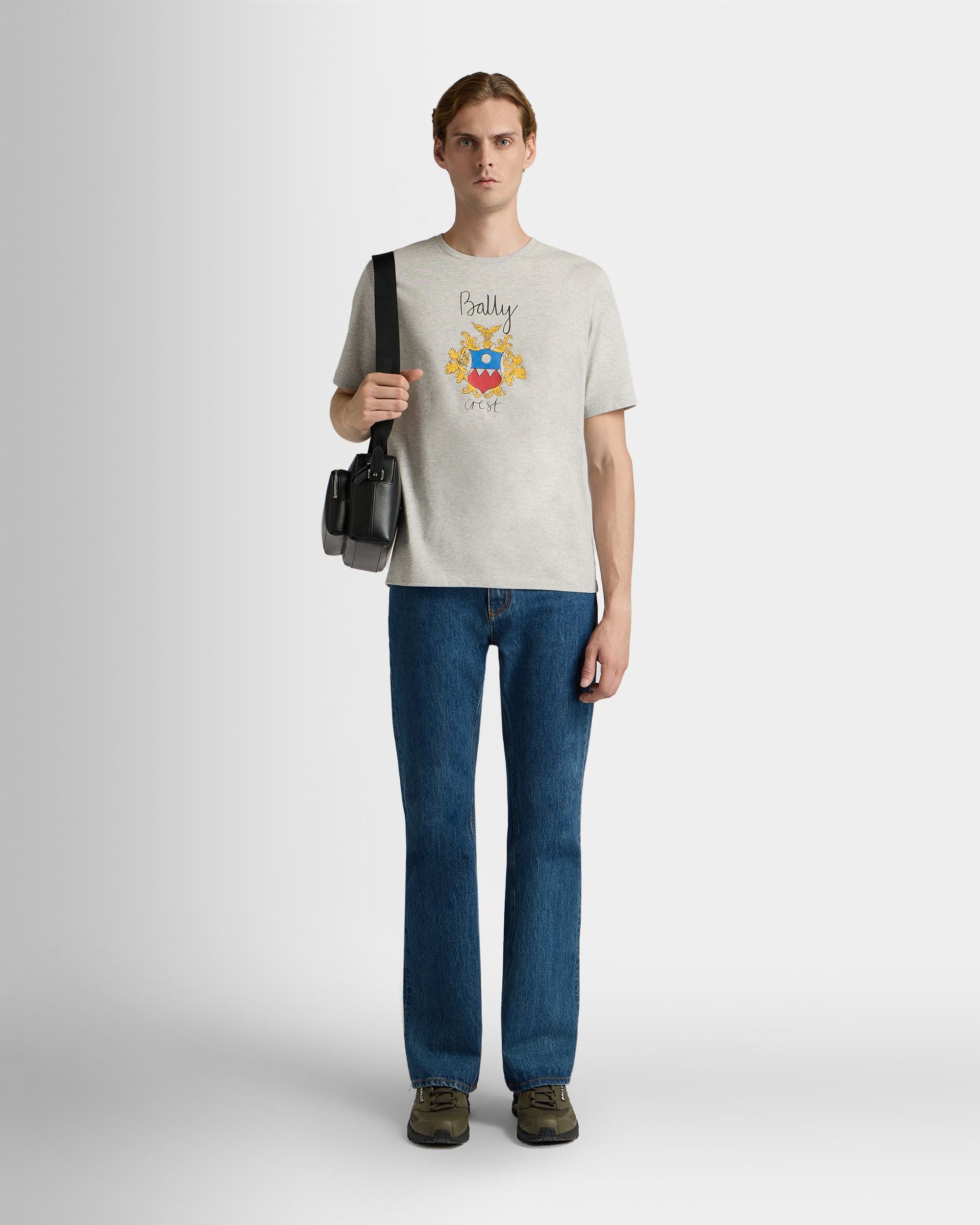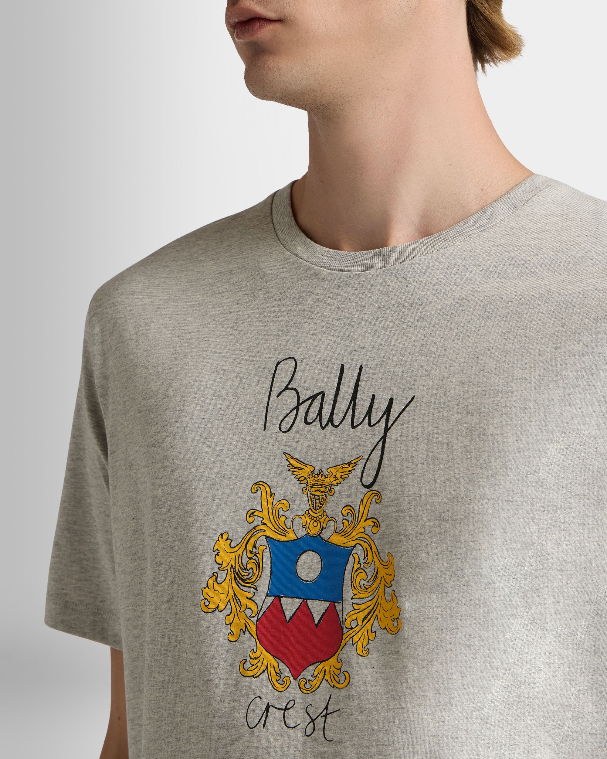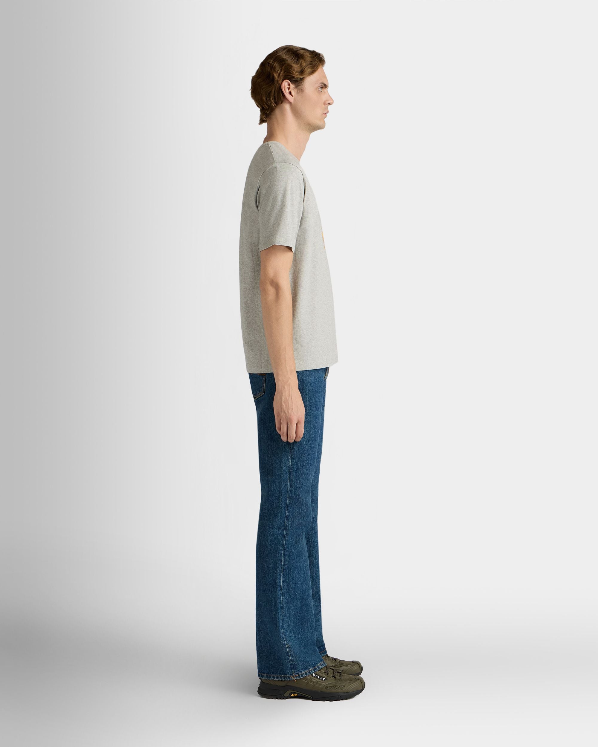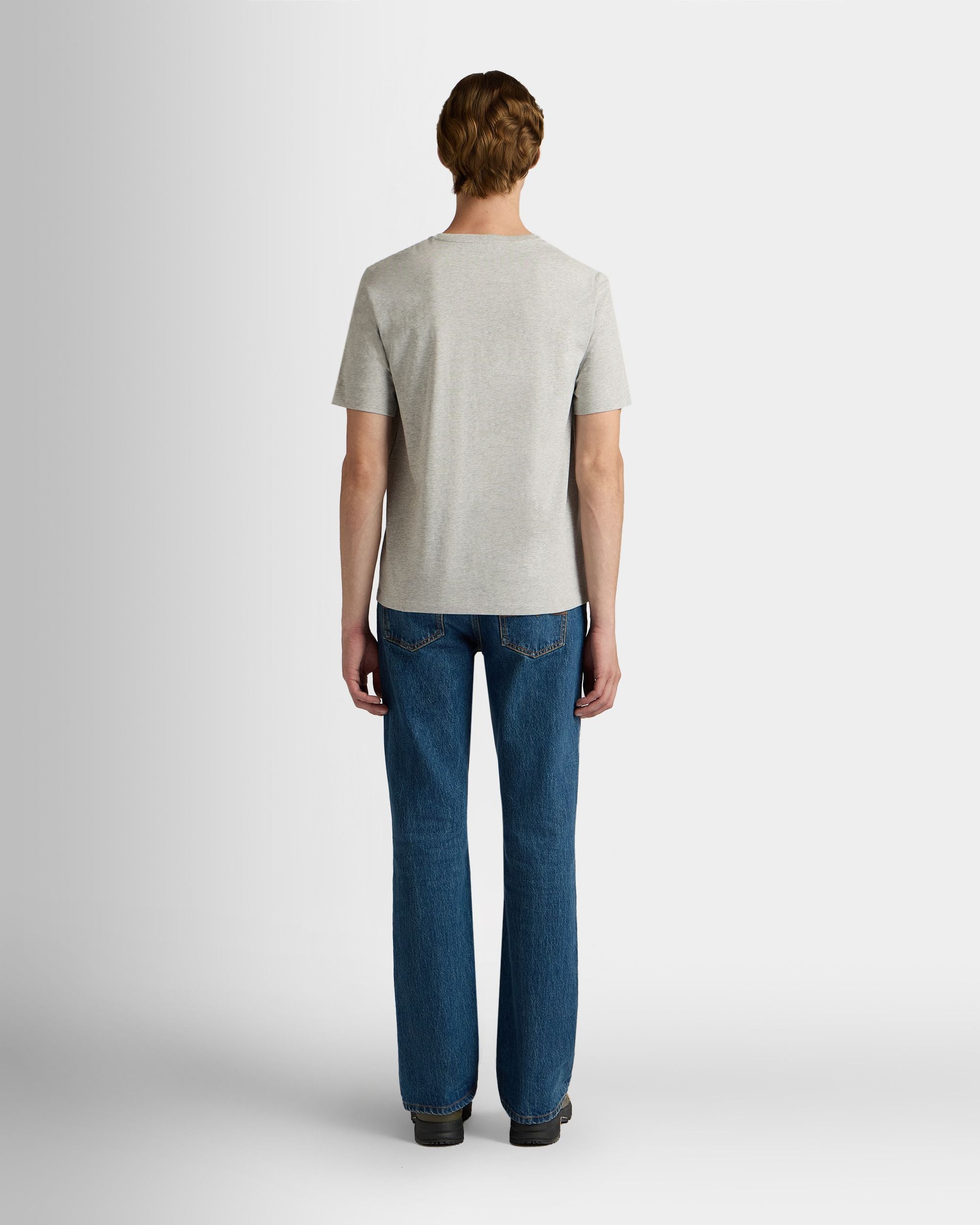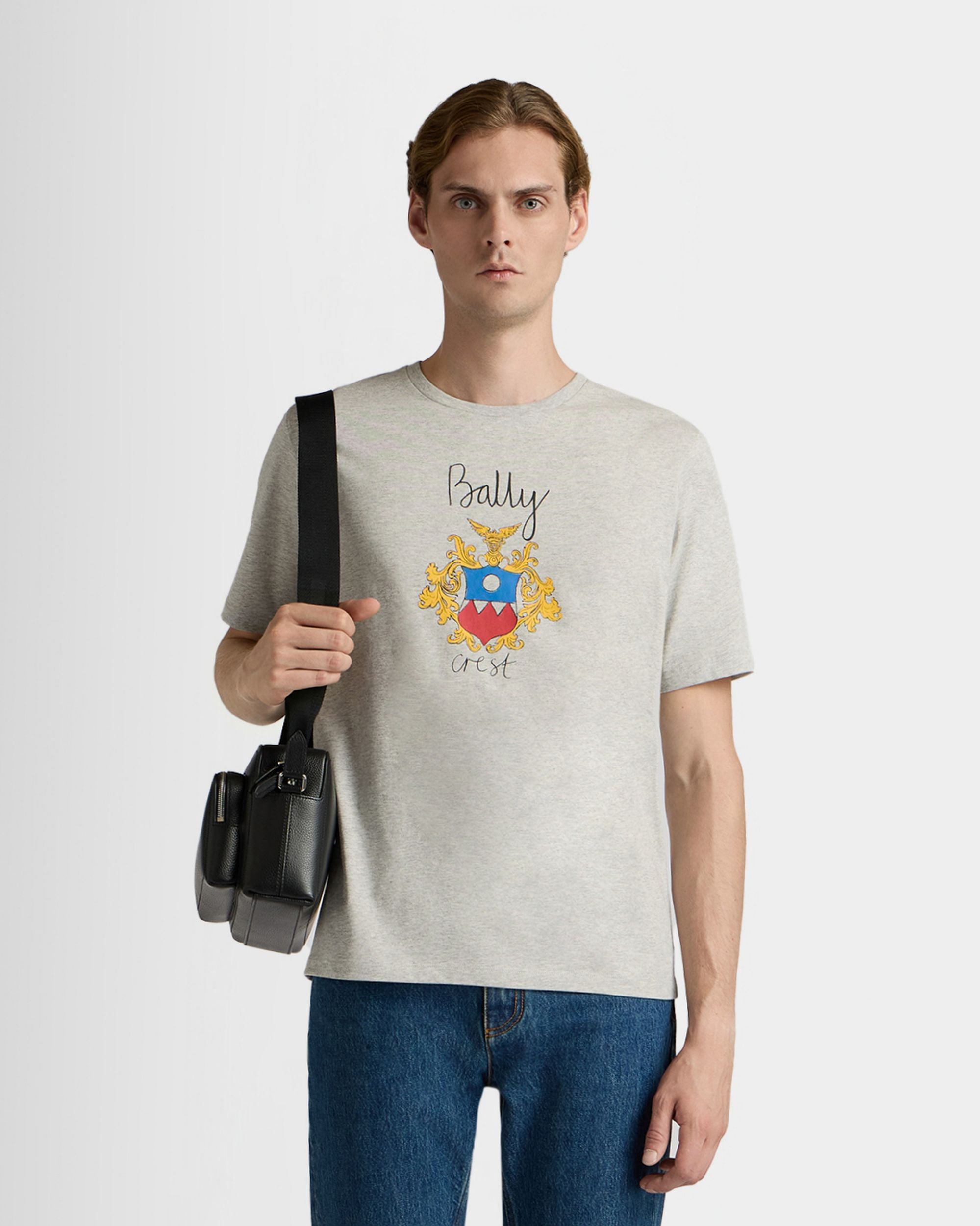 T-Shirt in Mélange Grey Cotton with a Bally Crest