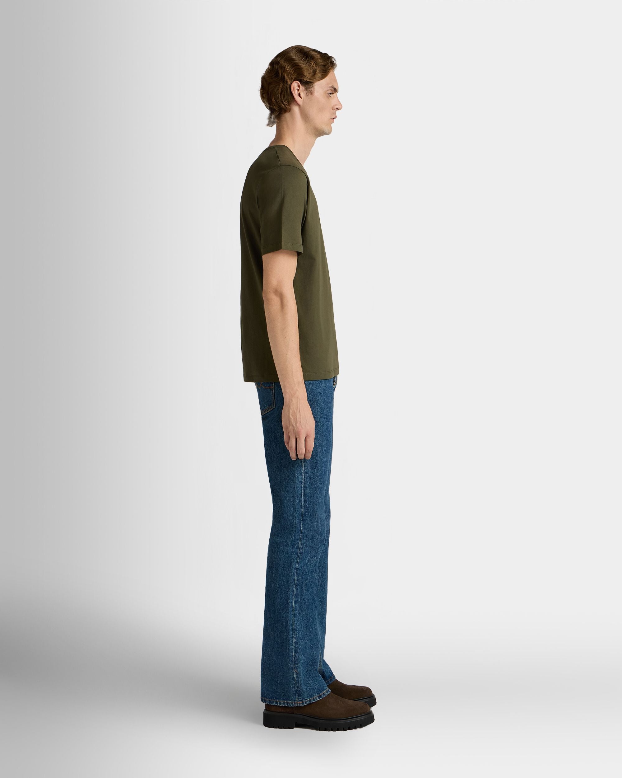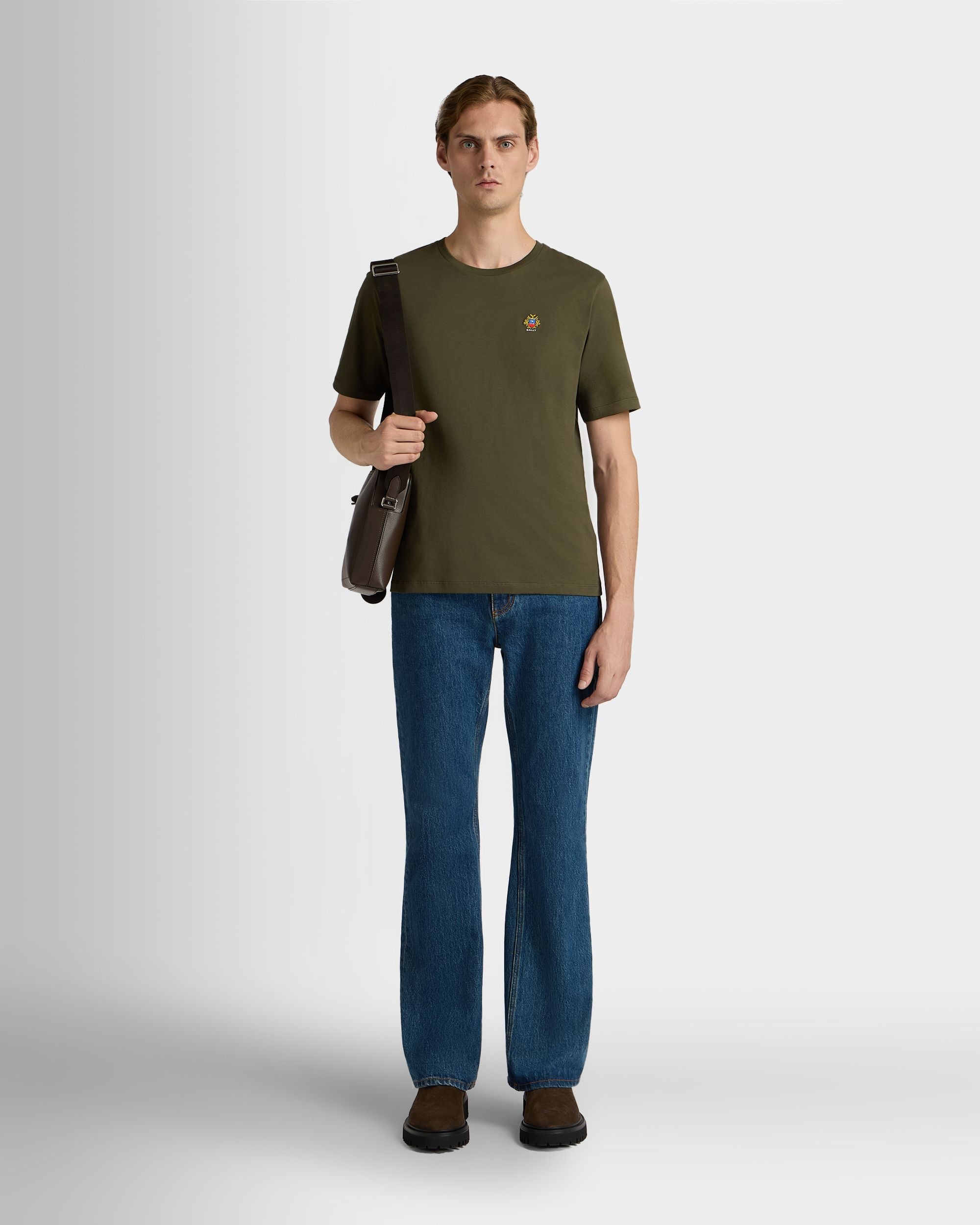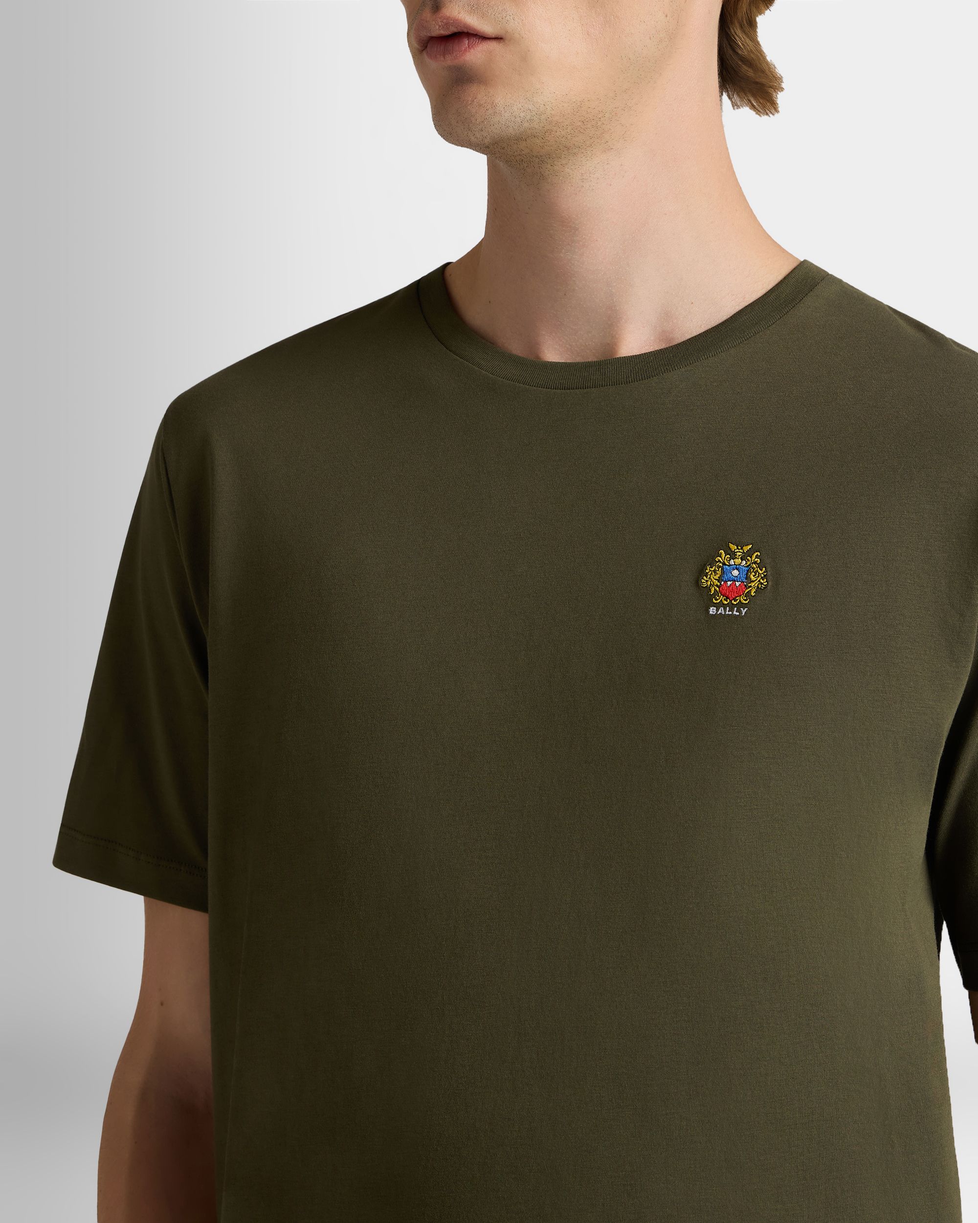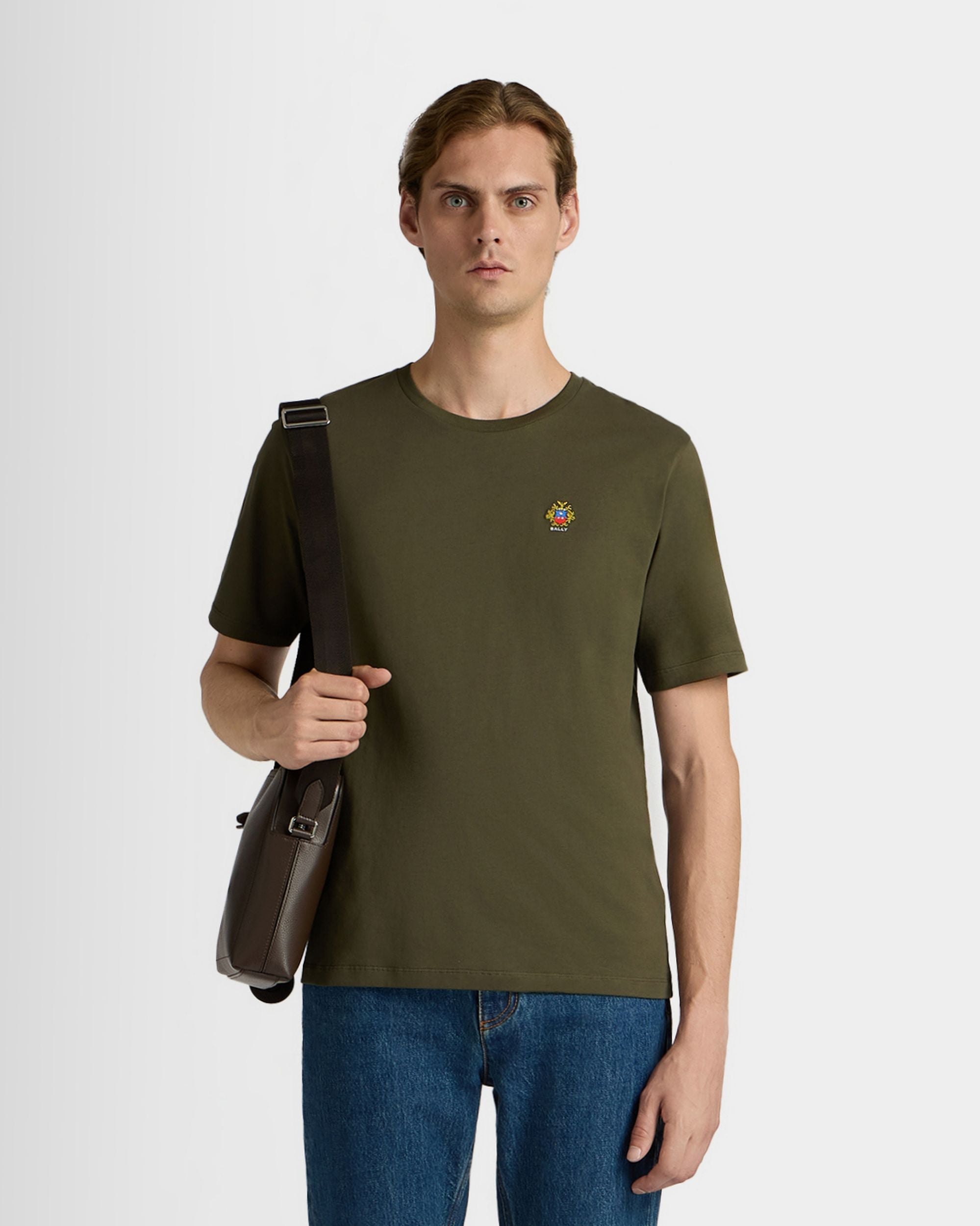 This military green t-shirt in soft knit cotton features a small Bally Crest embroidered on the chest.