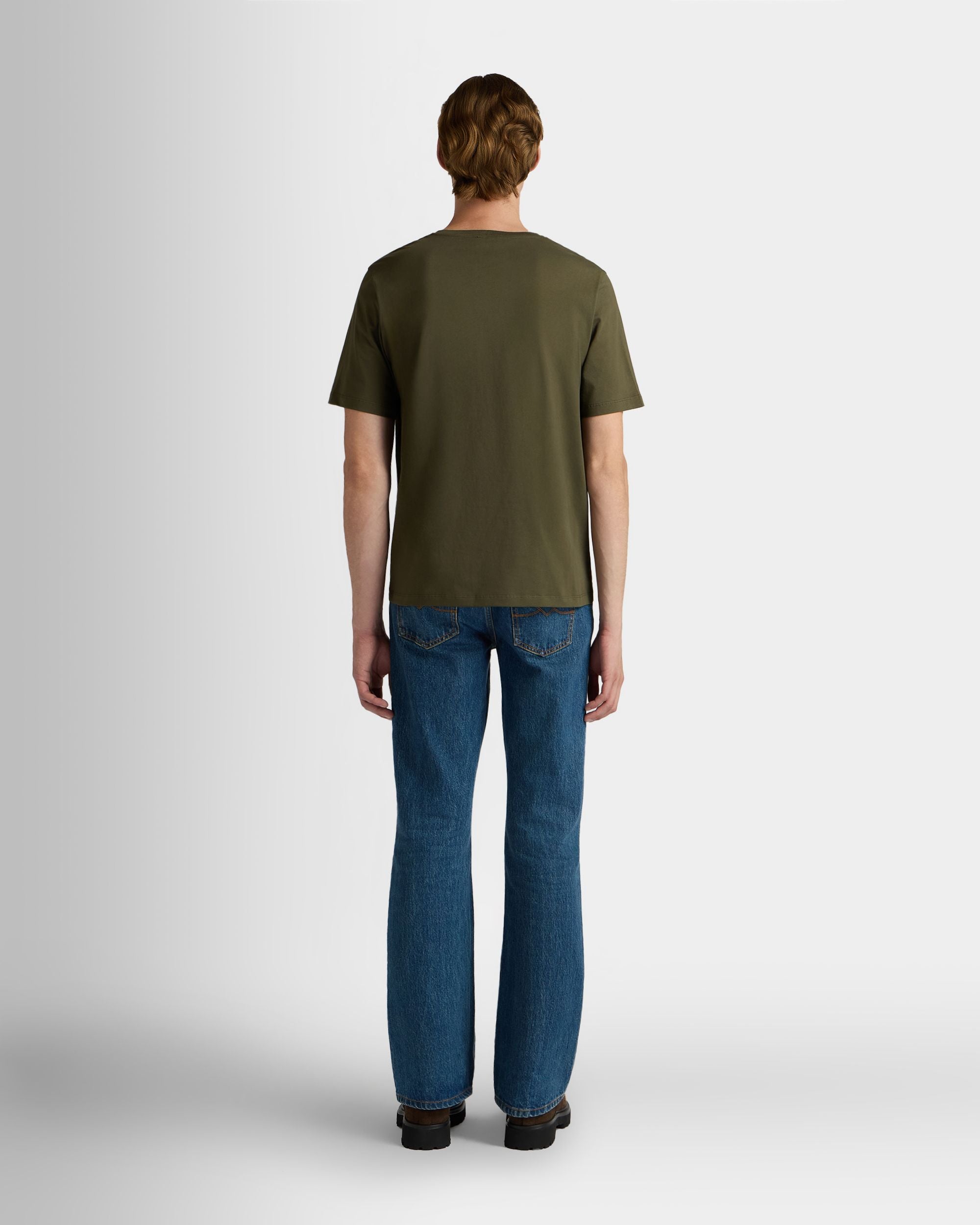 T-Shirt in Military Green Cotton with a Bally Crest