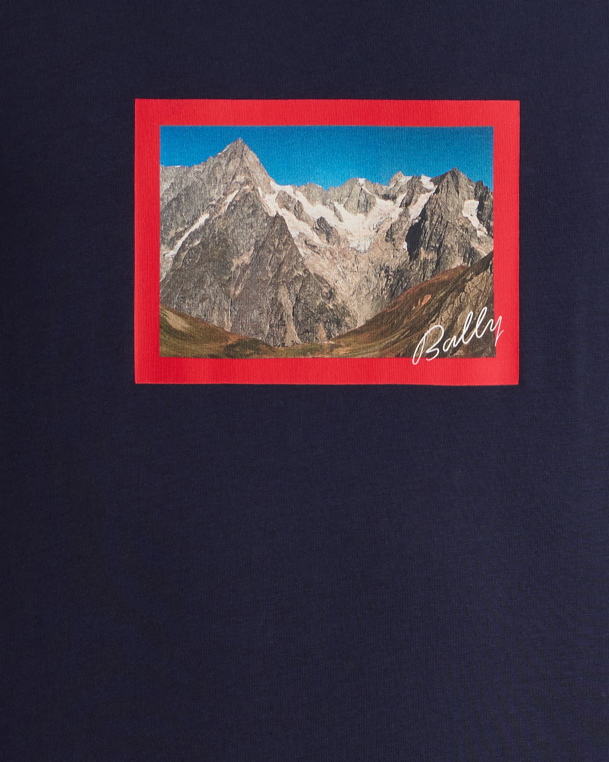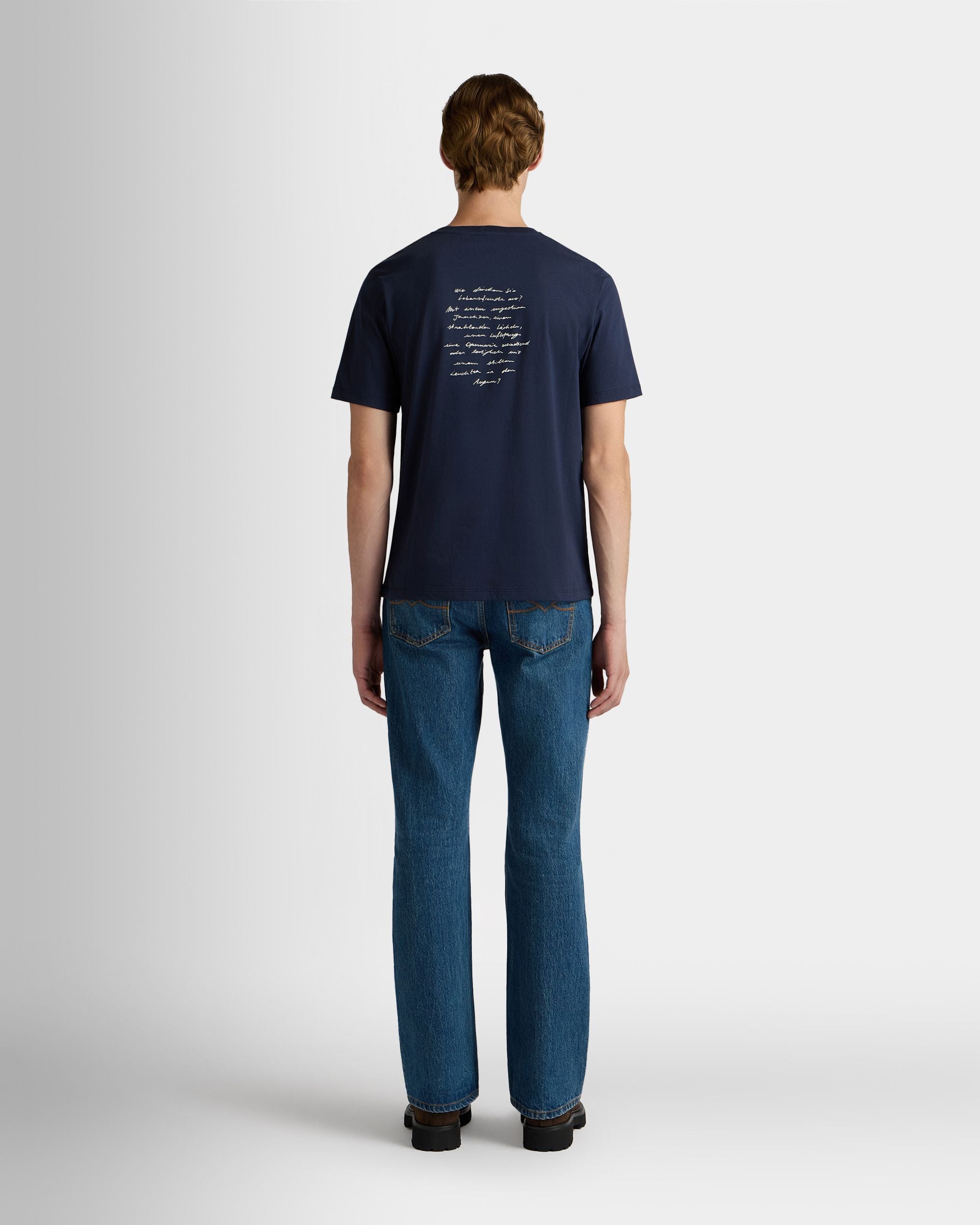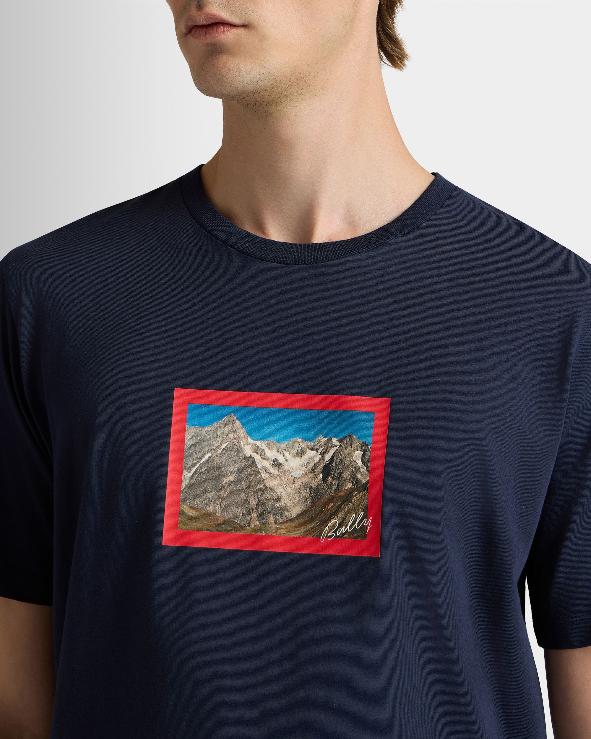 T-Shirt in Navy Blue Cotton With a Vintage Postcard Print