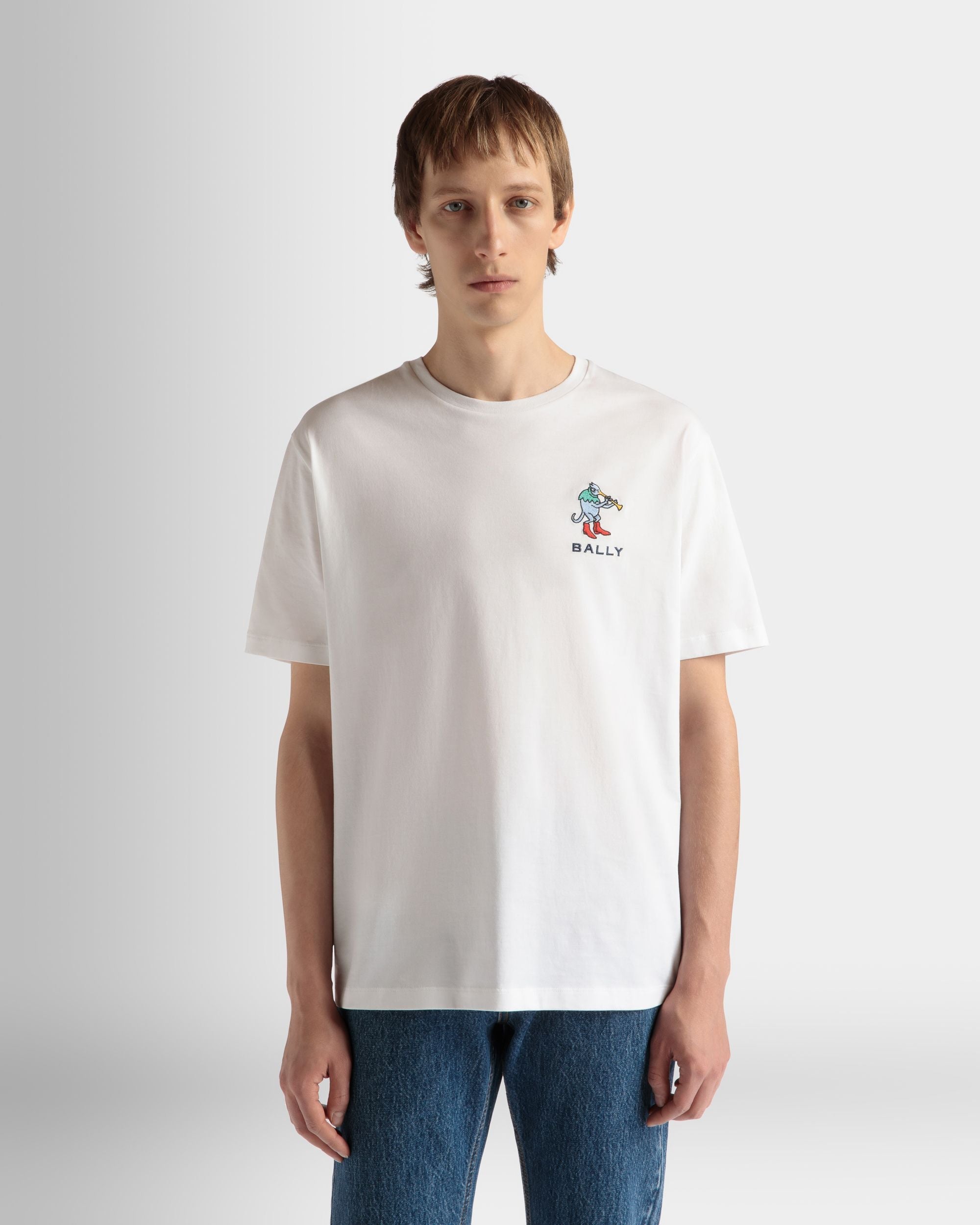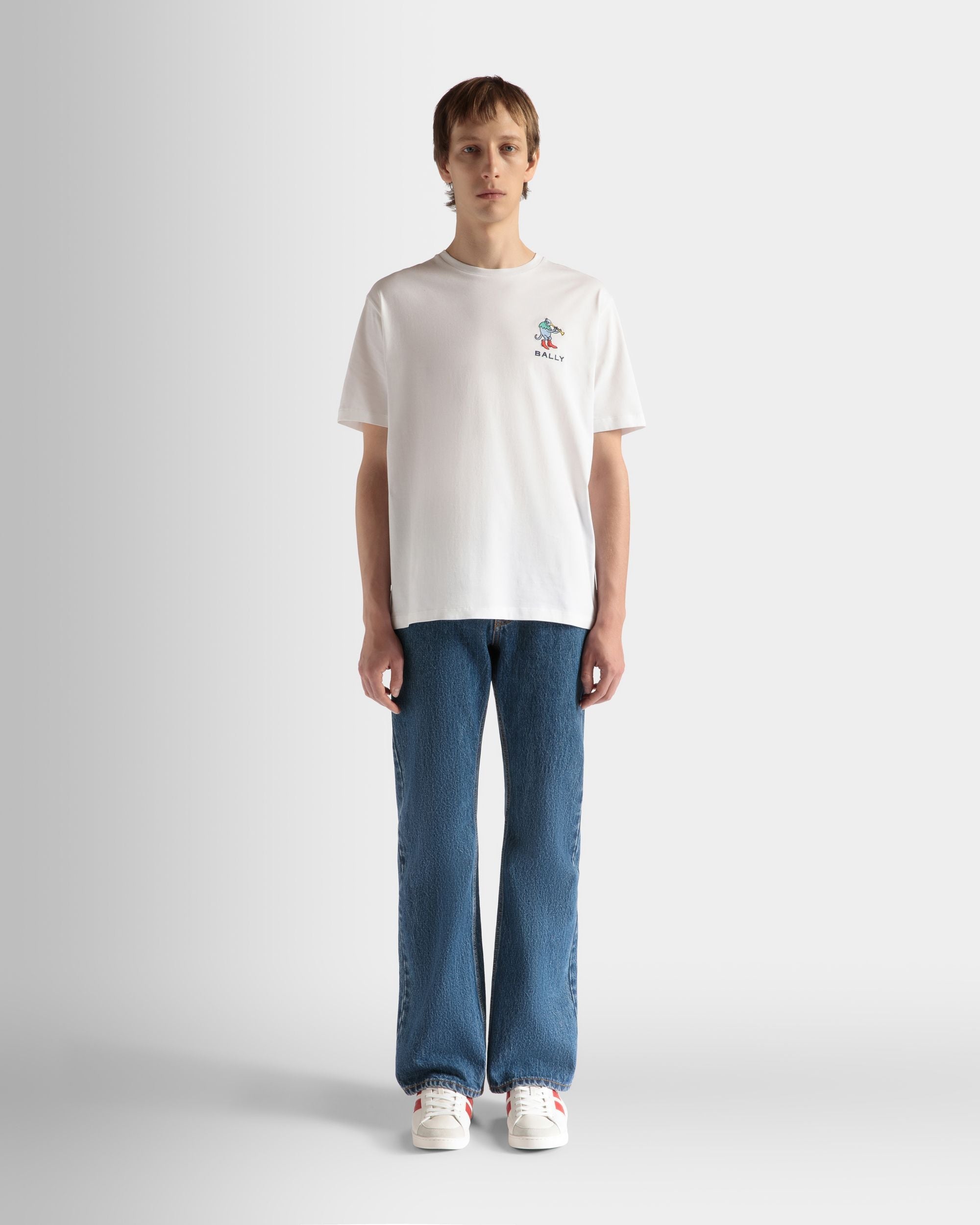 An embroidered creature – Naso Piffero – decorates this white cotton t-shirt. designed for comfort and a free-spirited attitude. The pure white hue is versatile. making it must-have staple.