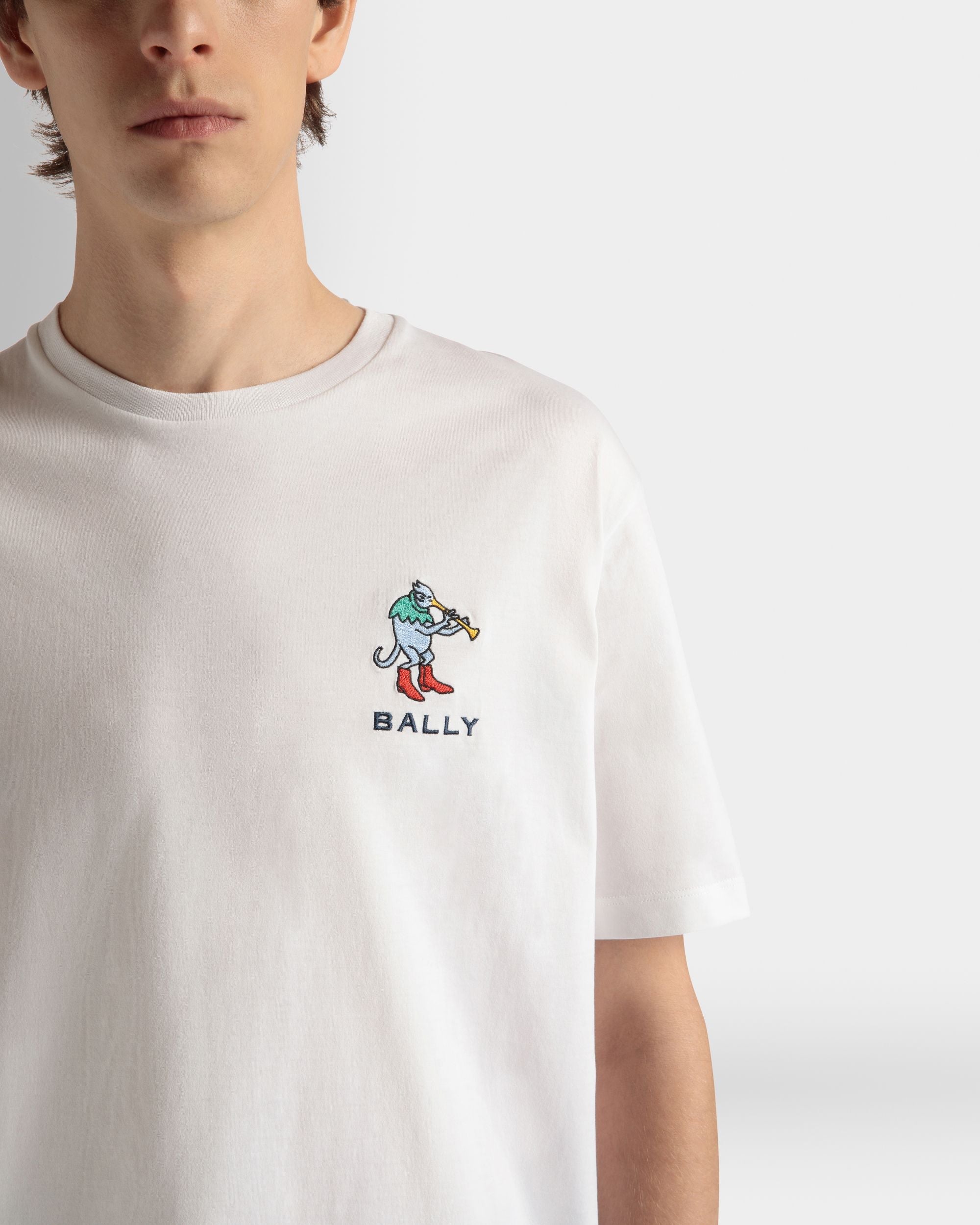 An embroidered creature – Naso Piffero – decorates this white cotton t-shirt. designed for comfort and a free-spirited attitude. The pure white hue is versatile. making it must-have staple.