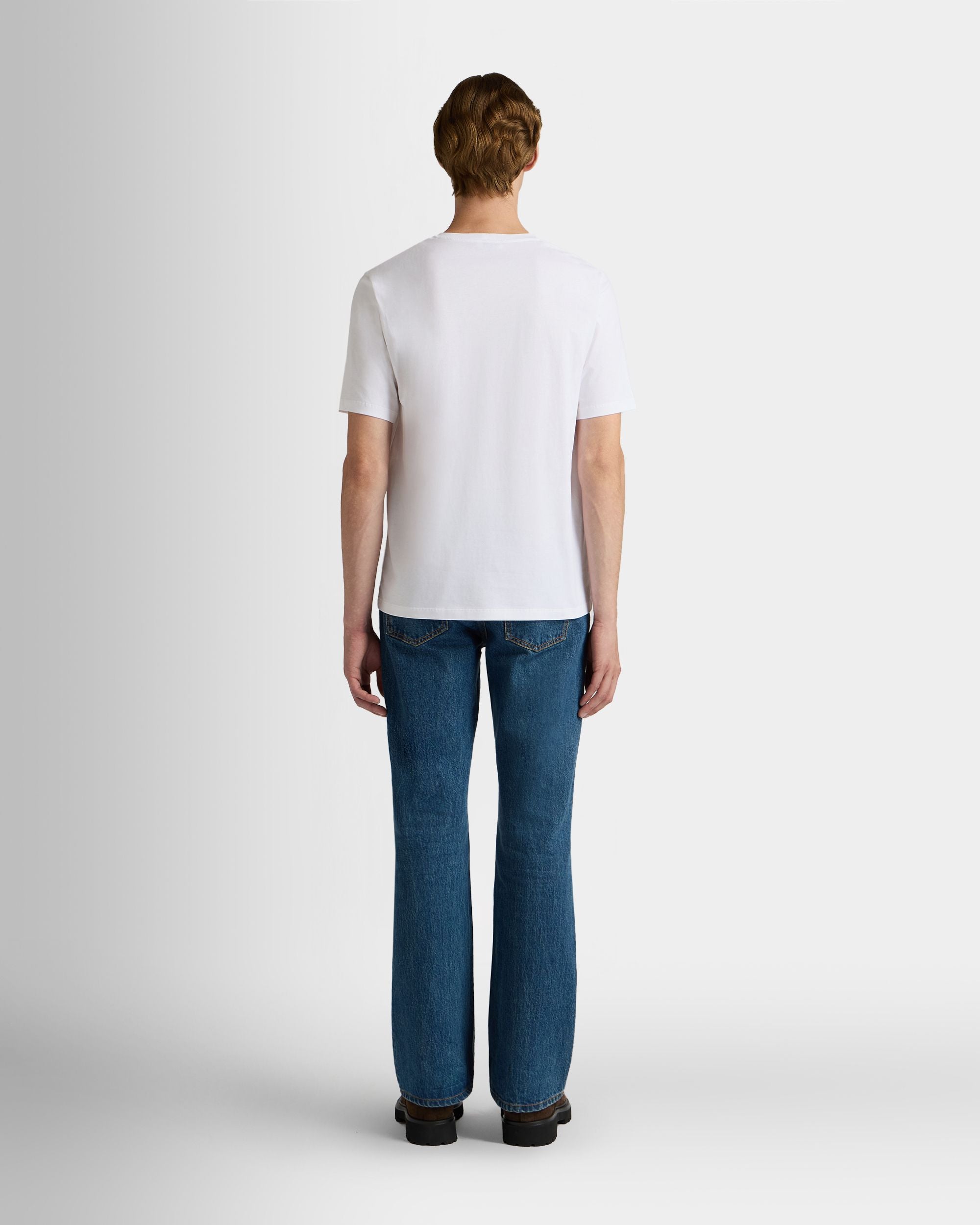 T-Shirt in White Cotton with a Bally Crest