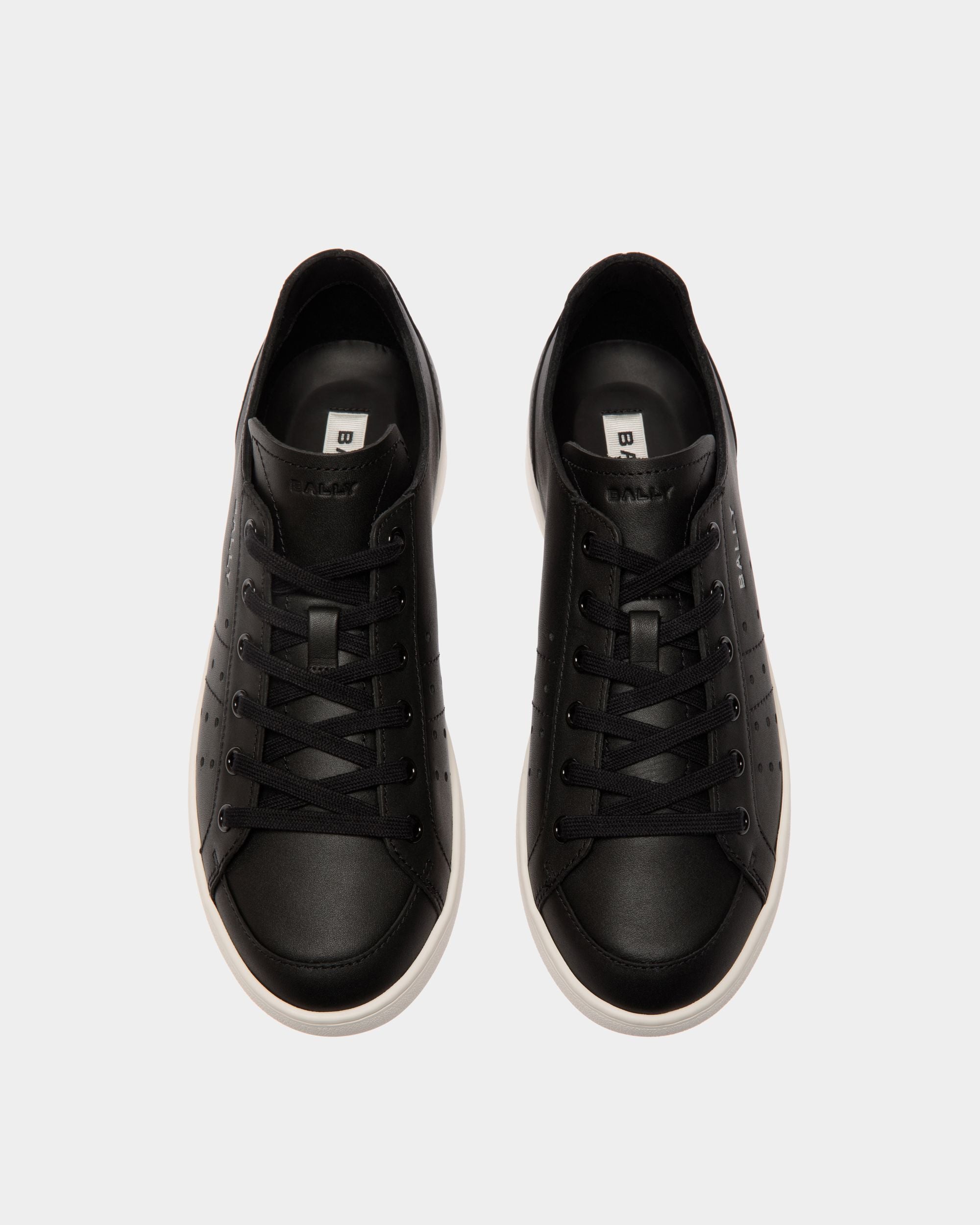 This Tennis sneaker unites a black leather upper with perforations and a thick rubber sole. A silver-tone debossed Bally Crest and logo add an iconic note.