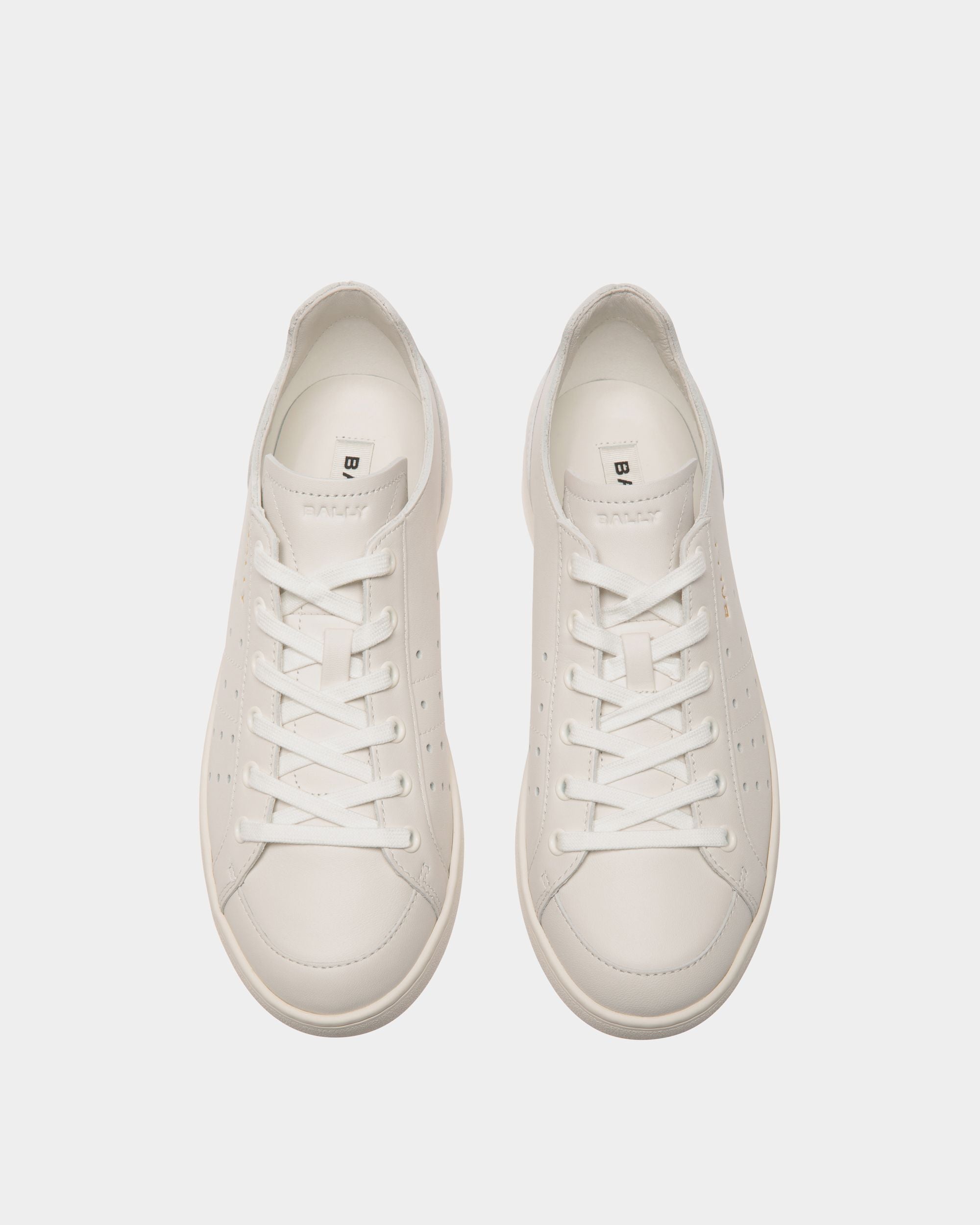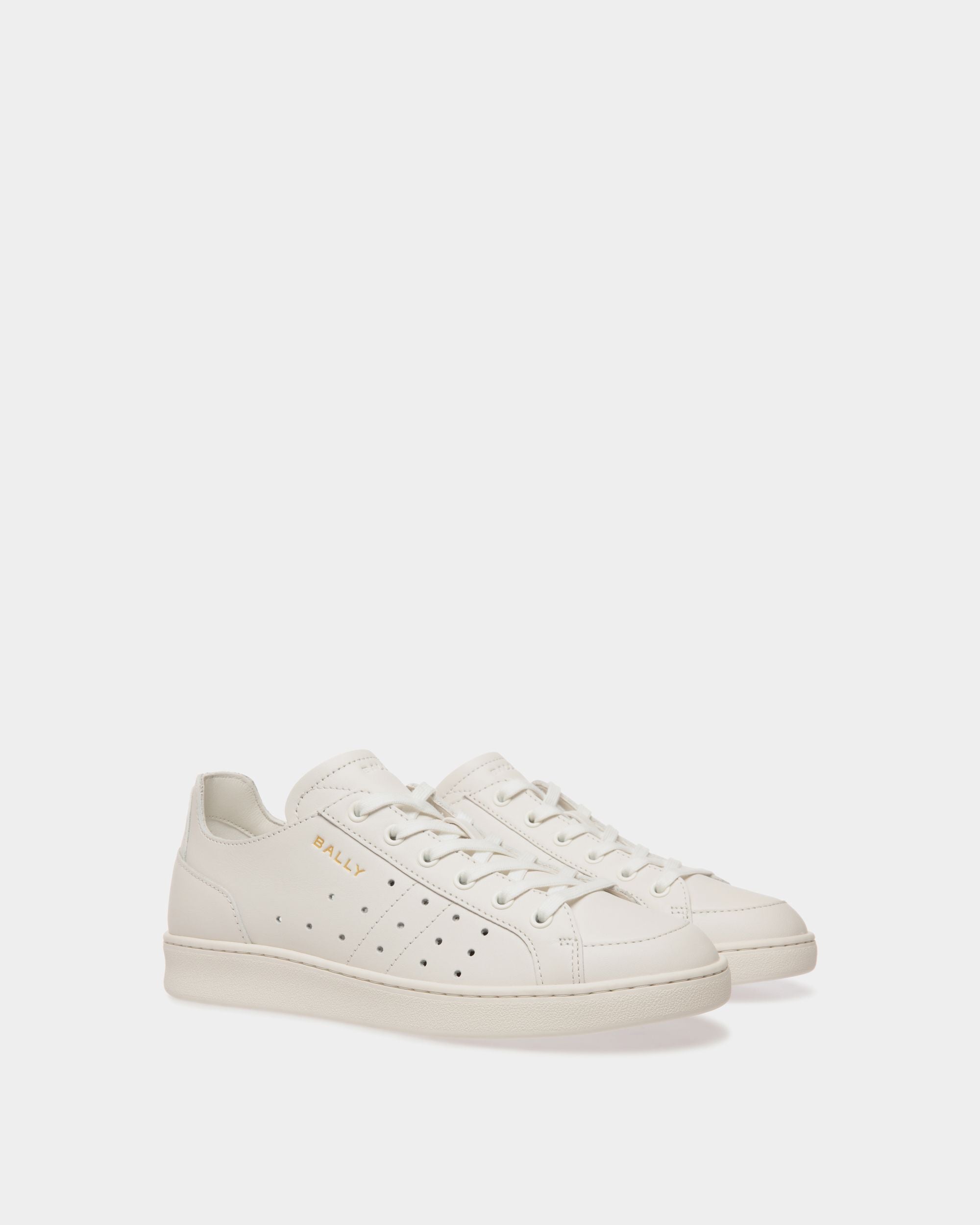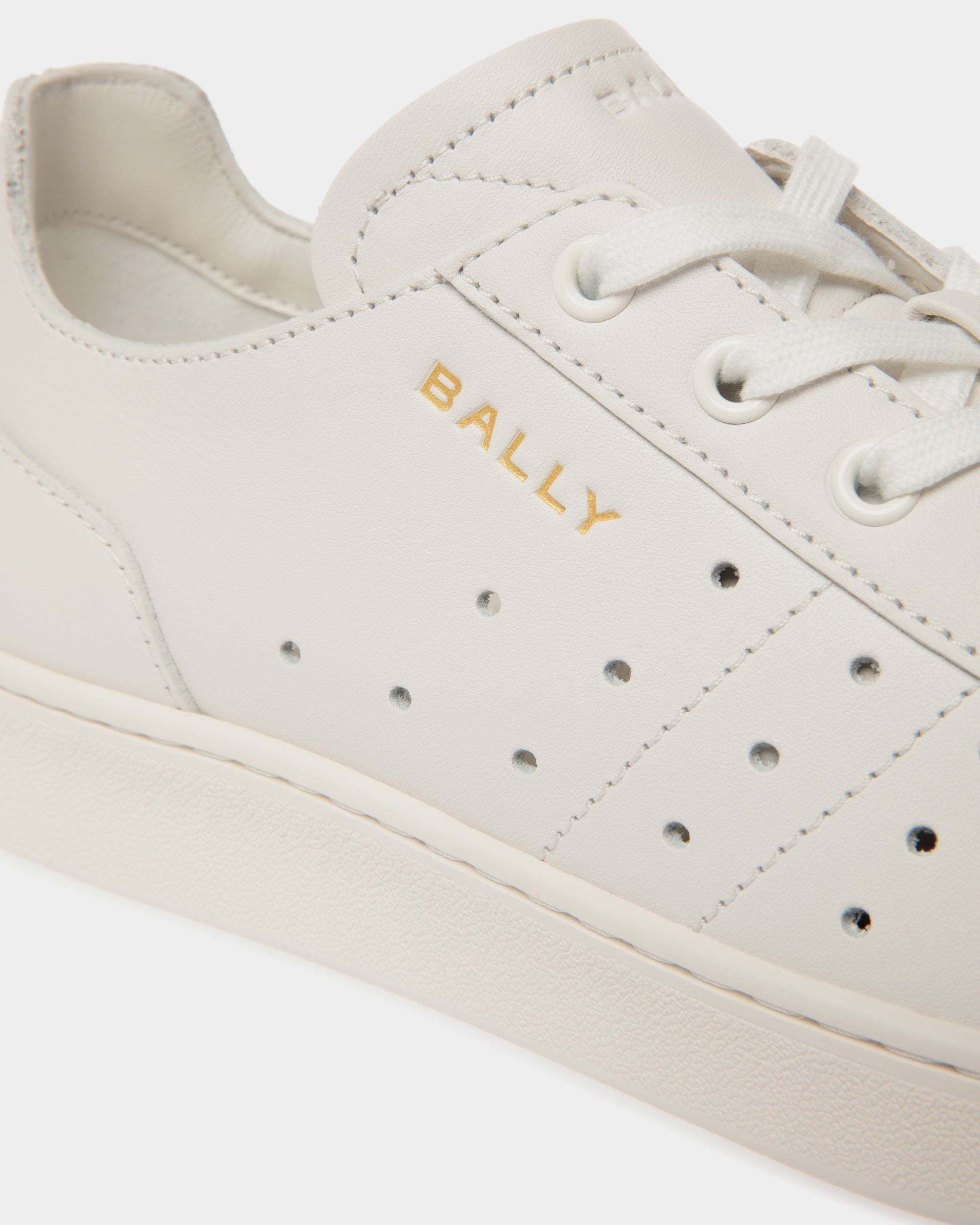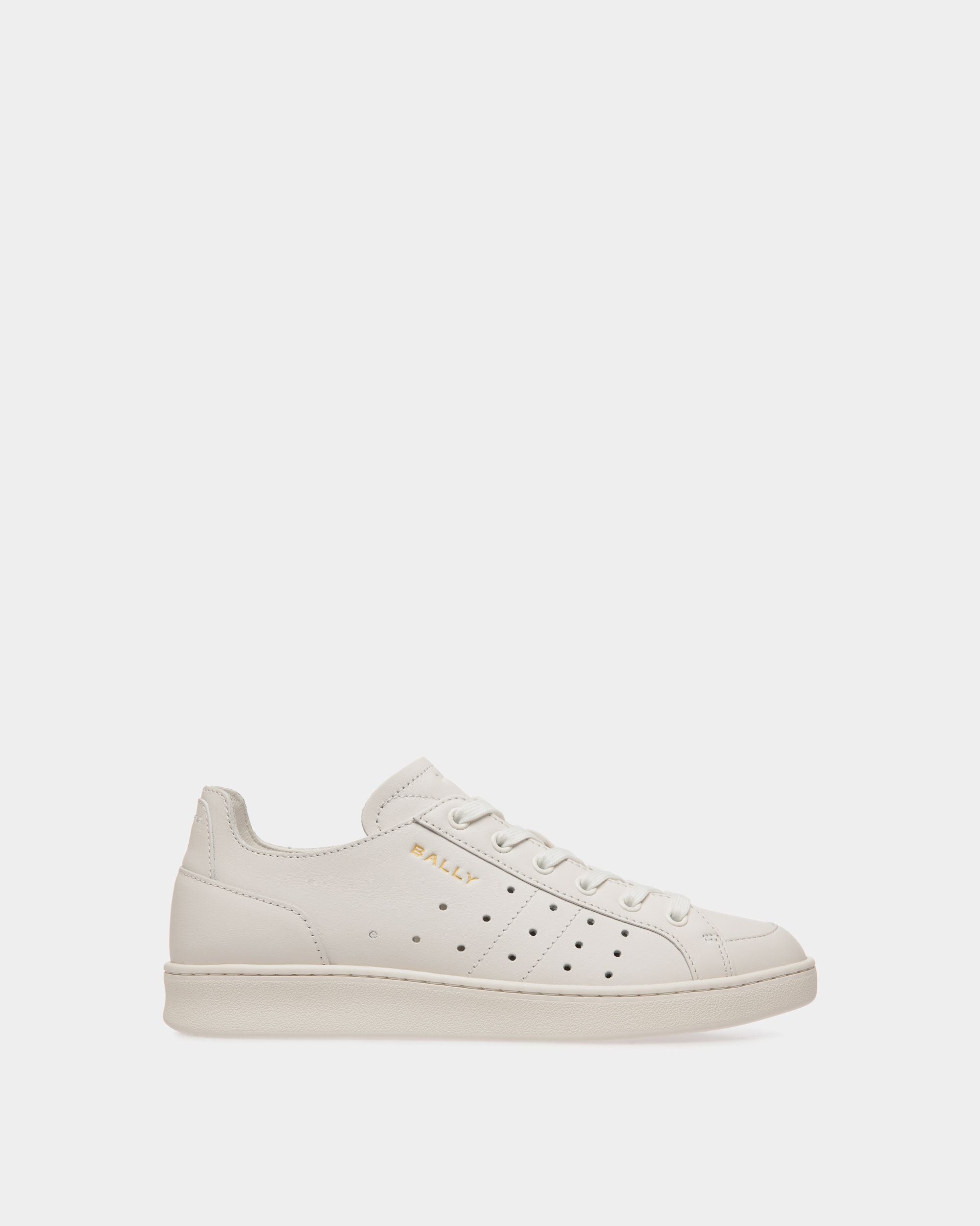 This Tennis sneaker unites a white leather upper with perforations and a thick rubber sole. A gold-tone debossed Bally Crest and logo add an iconic note.