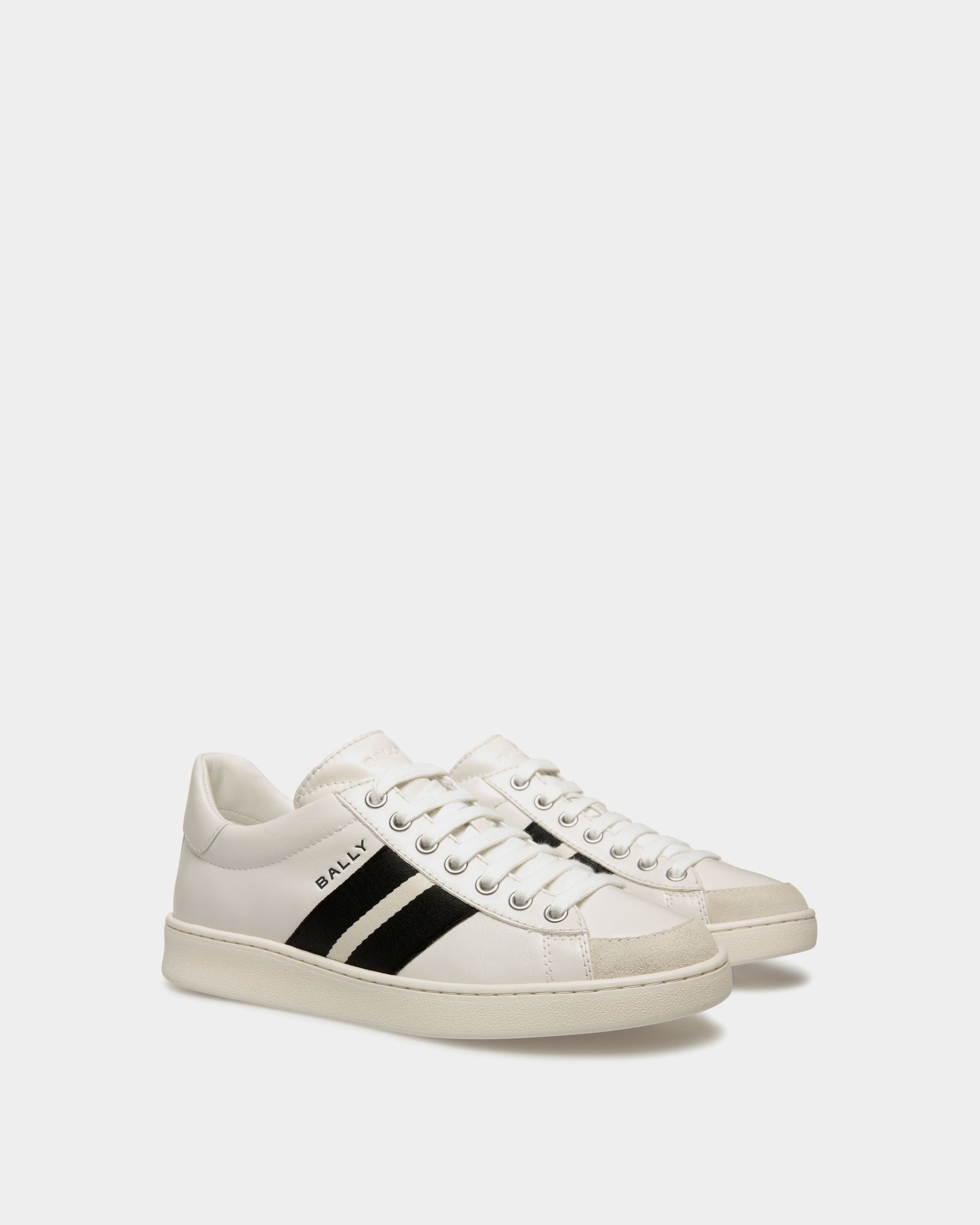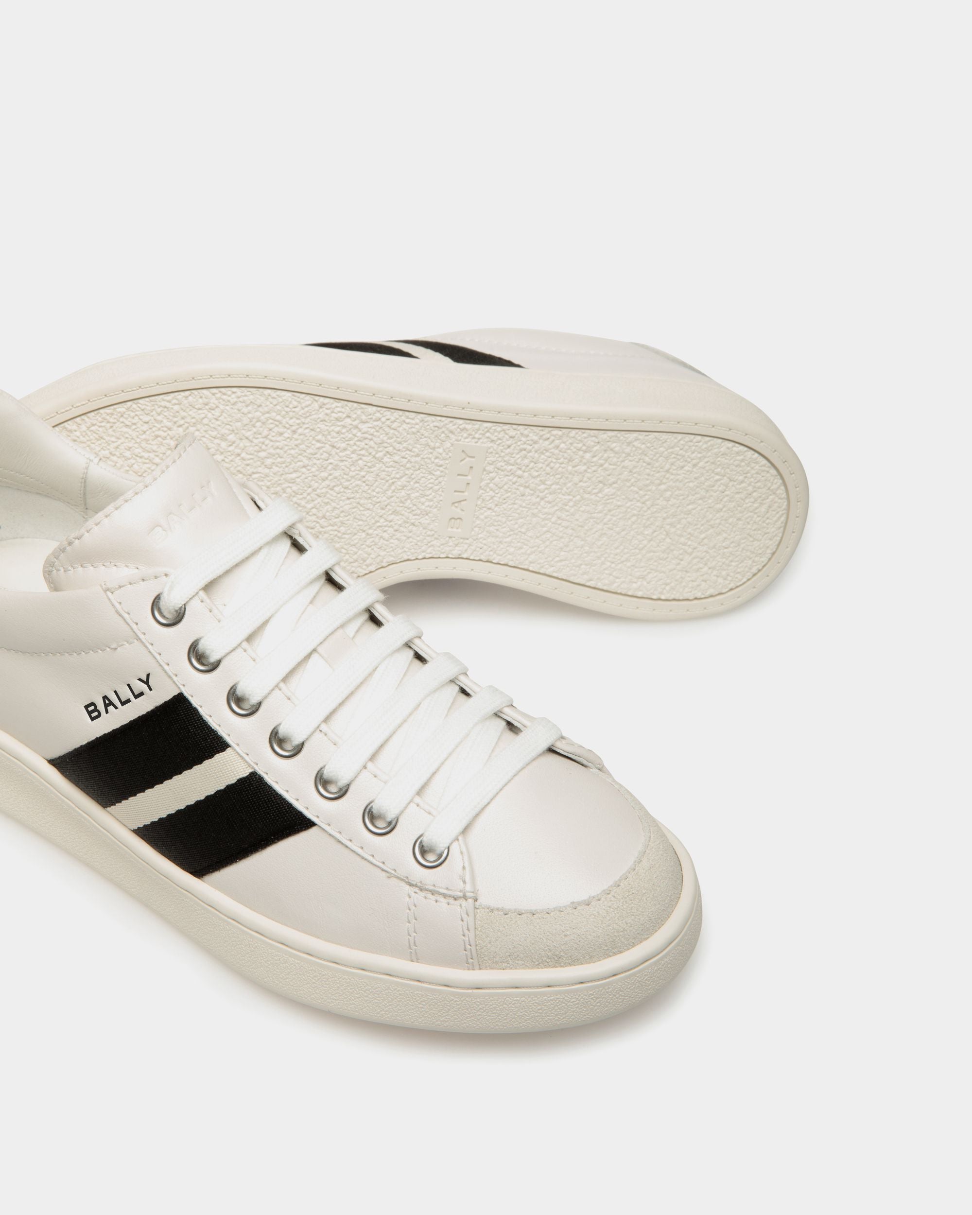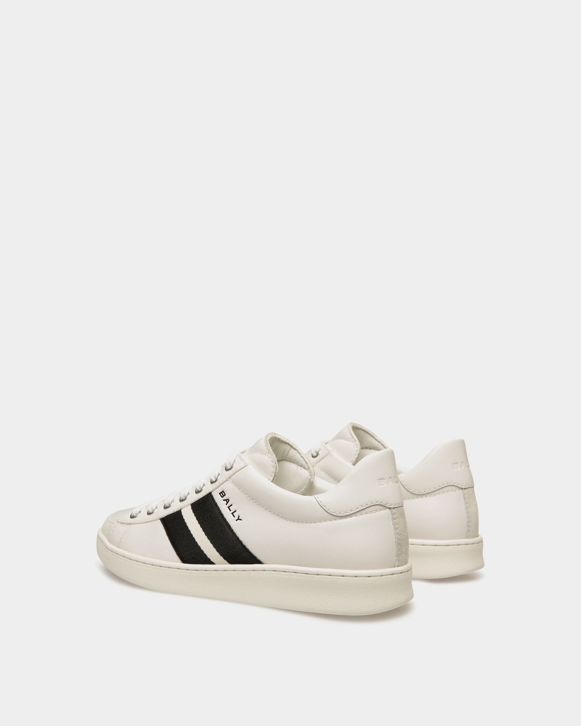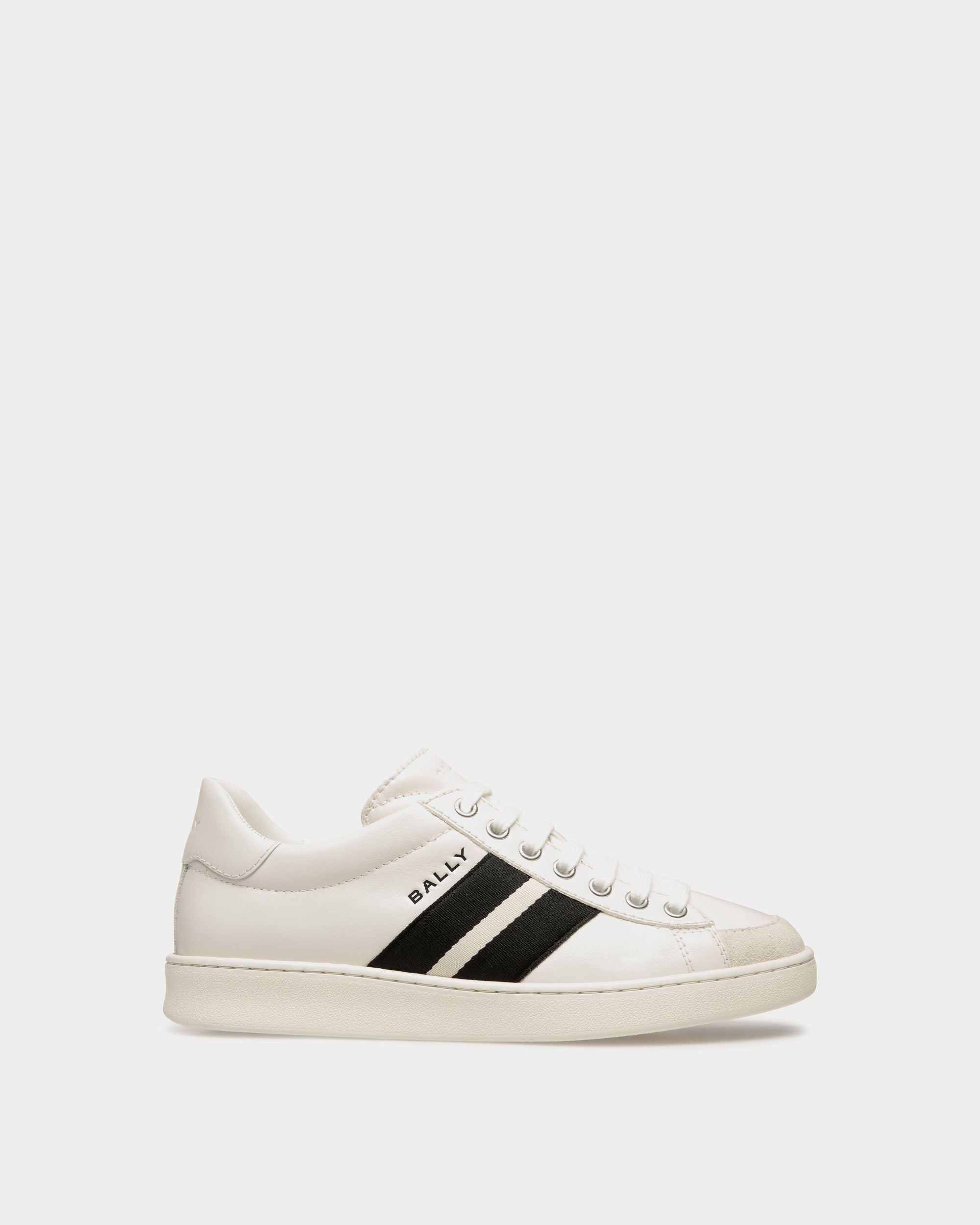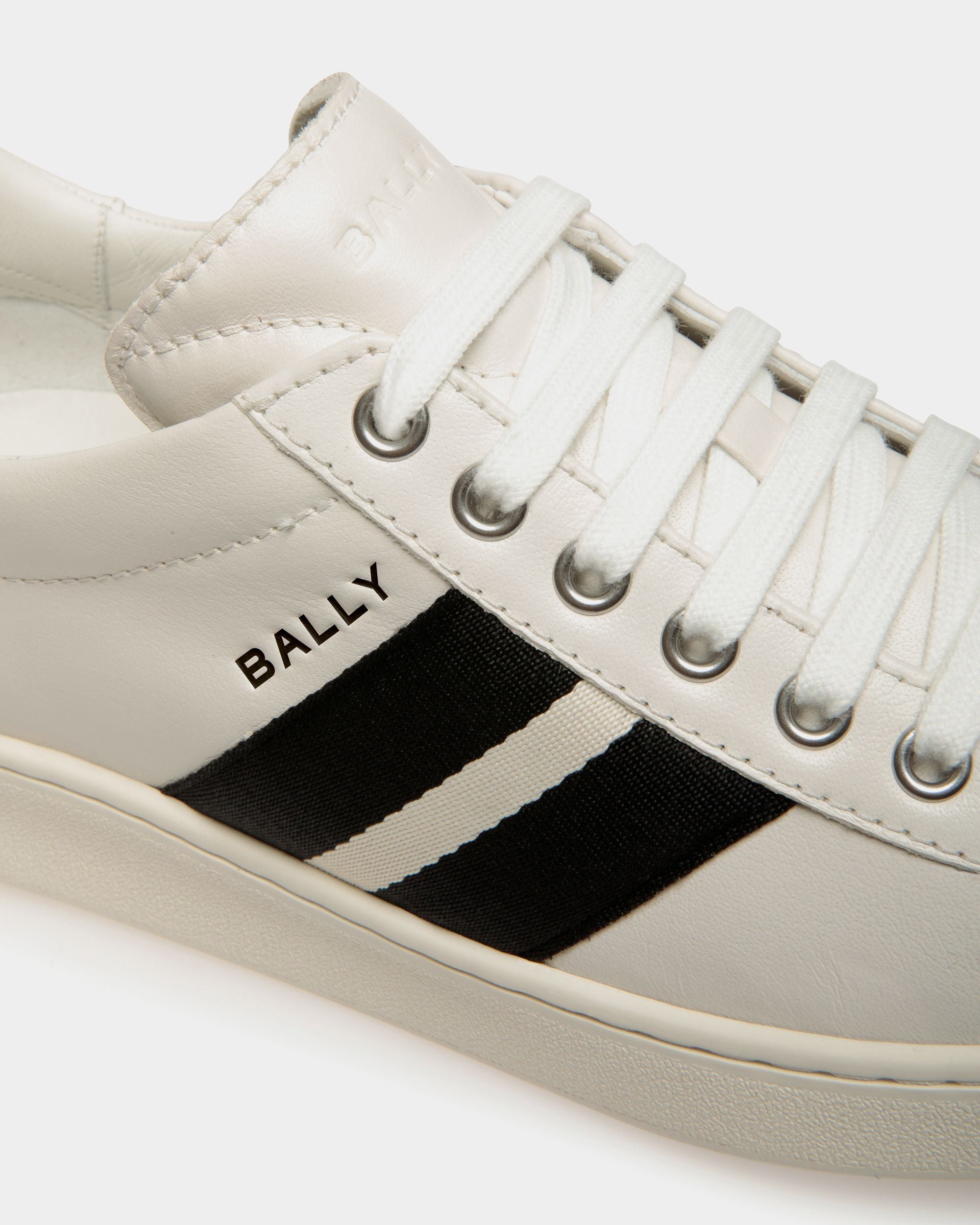 In smooth buffalo leather. this Tennis sneaker draws inspiration from vintage footwear to combine style and versatility. The upper is enriched by a black and white grosgrain Bally Ribbon and a debossed Bally logo.