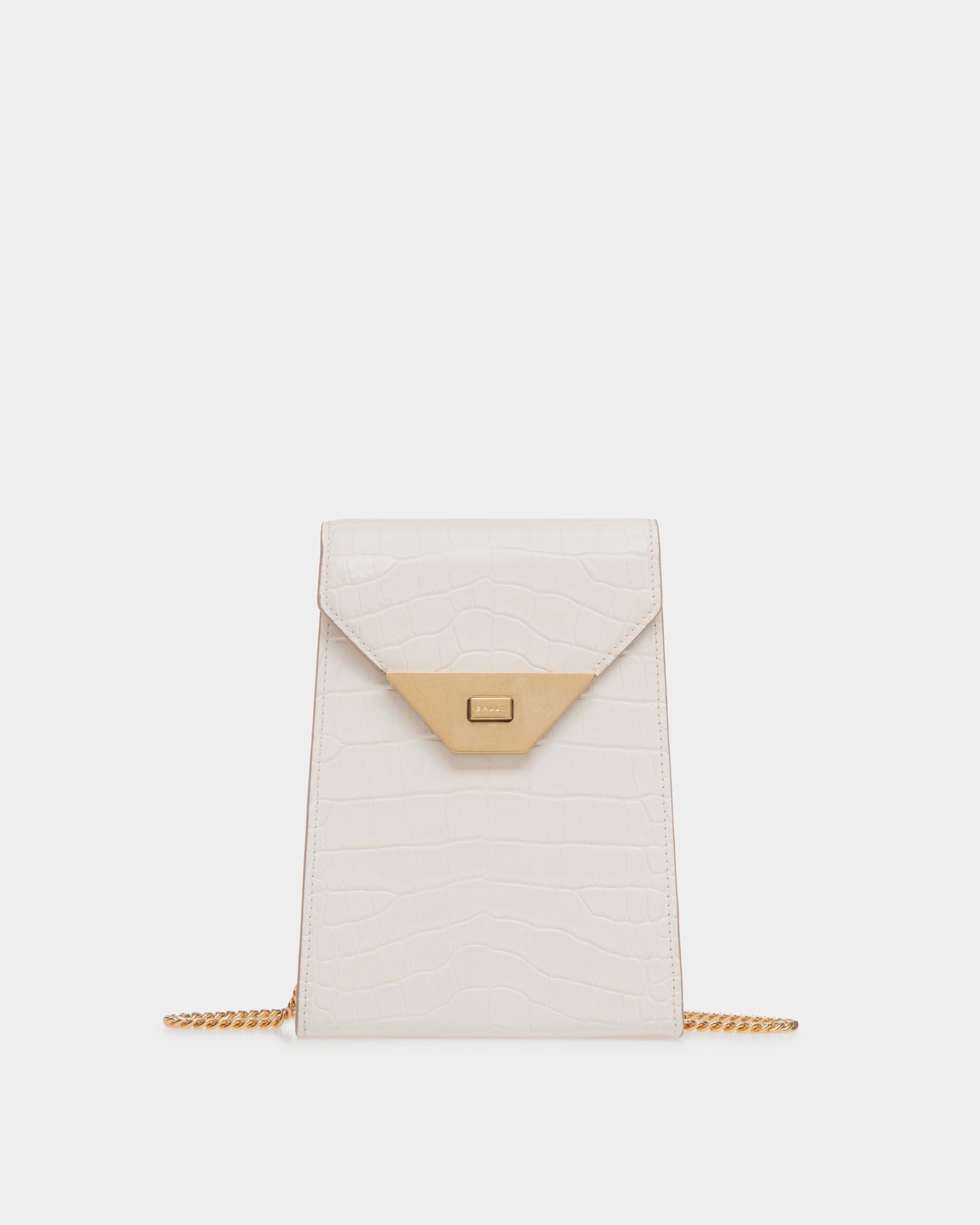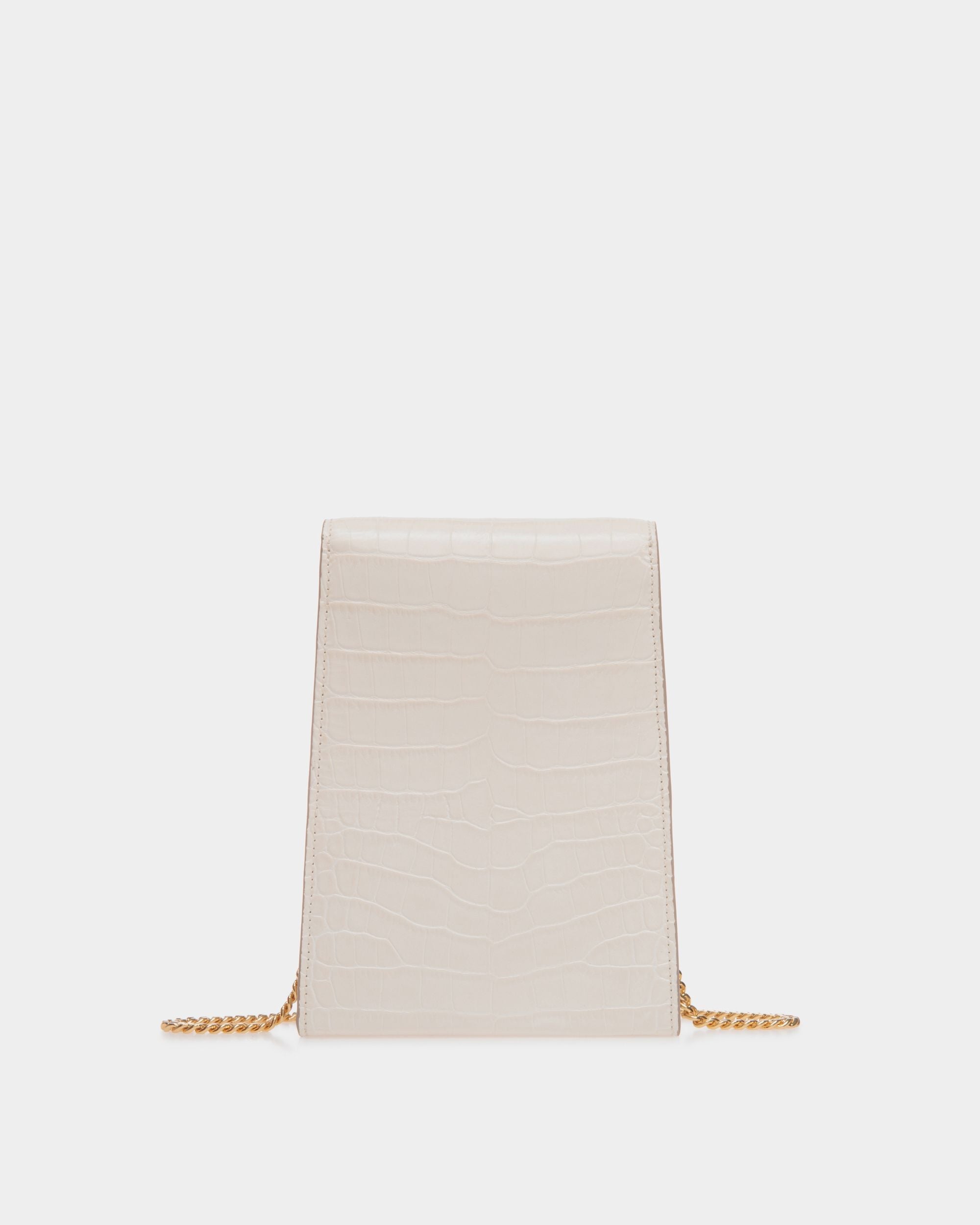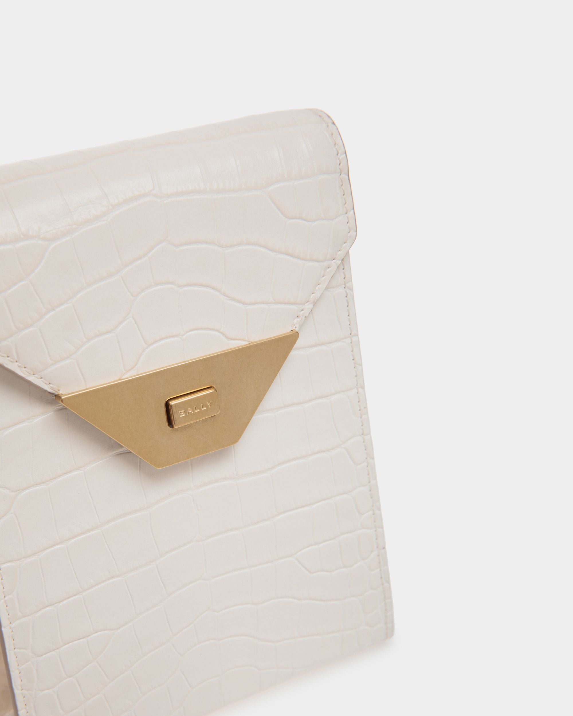 Crafted with meticulous attention to detail. this phone bag in bone crocodile print leather is the apex of luxury. Its streamlined design and premium materials make it the perfect accessory to elevate your ensembles while keeping your phone secure and easily accessible.