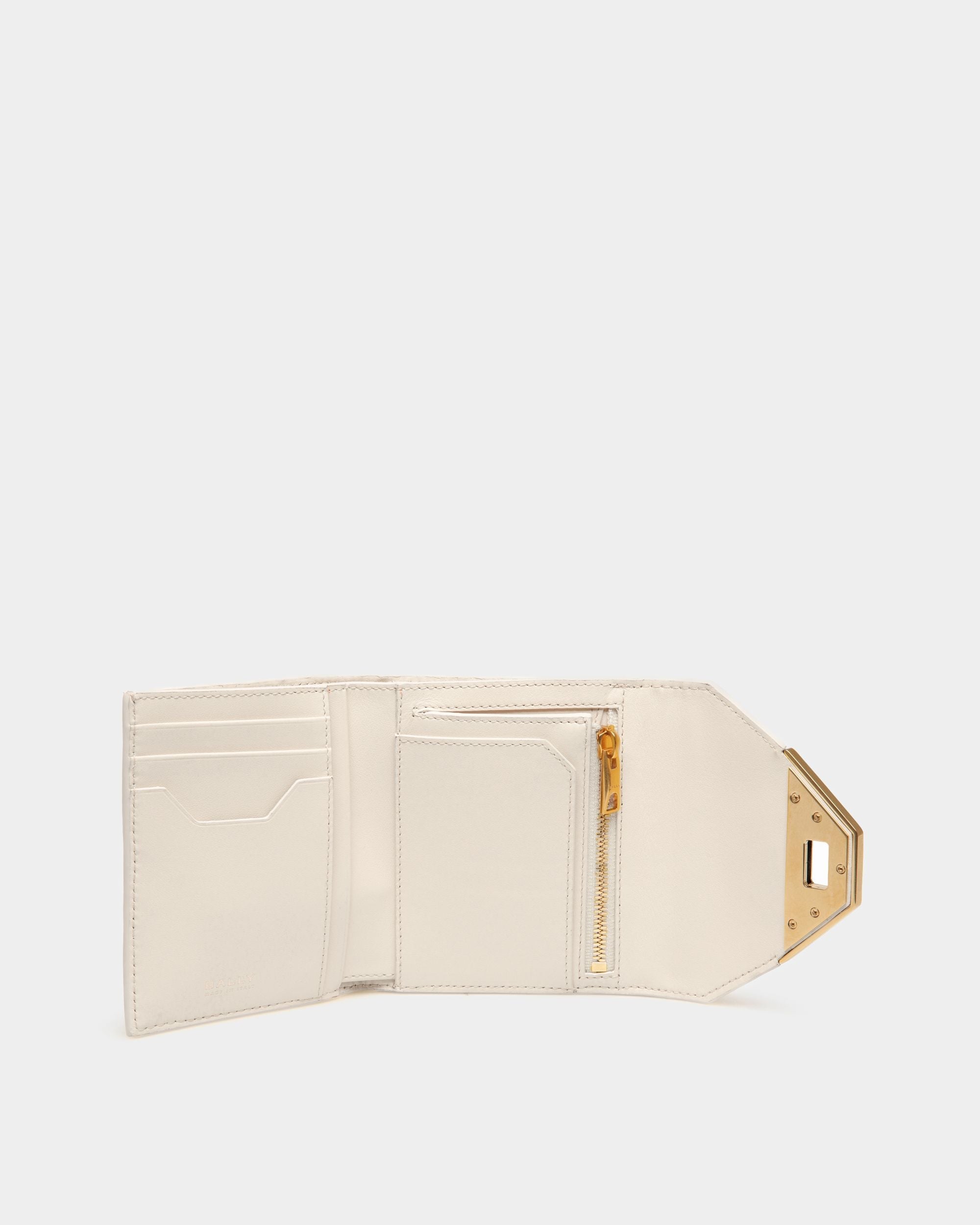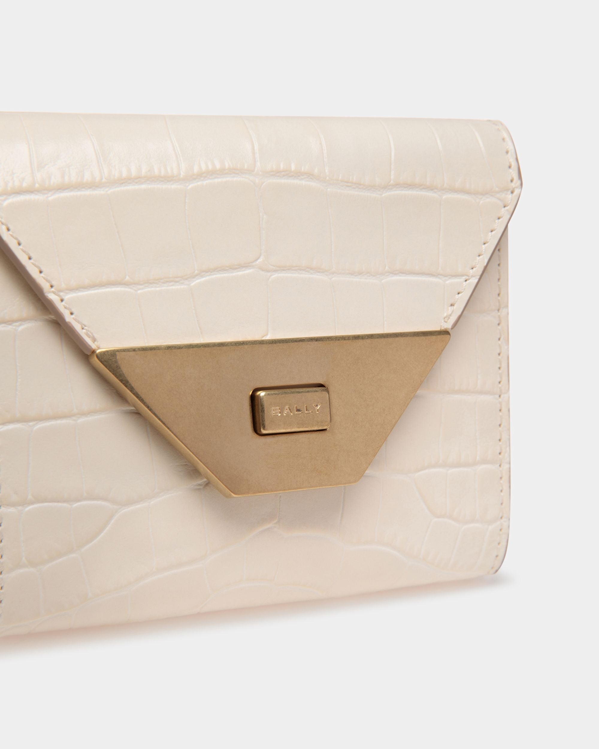 Tilt Wallet In White Crocodile Print Leather