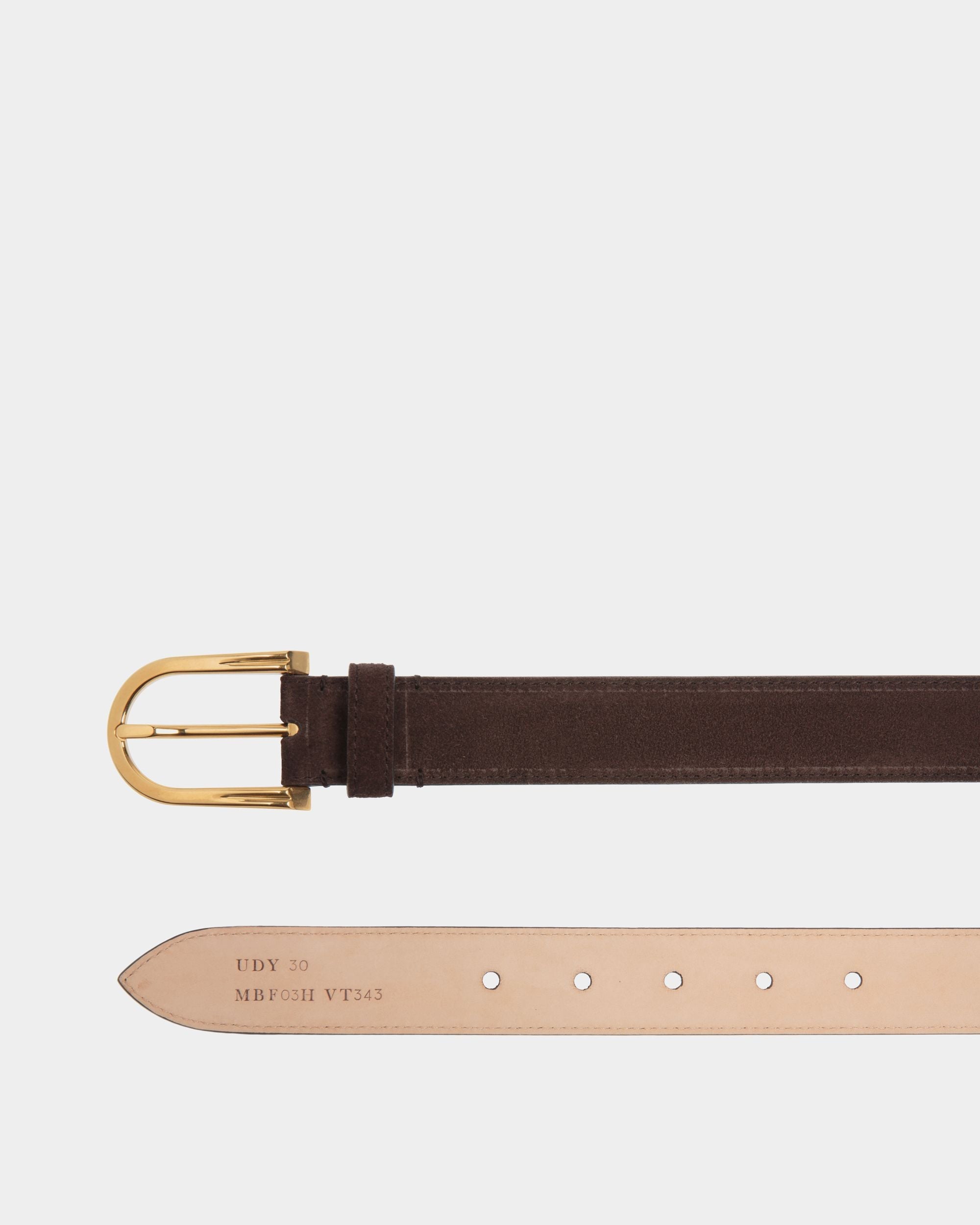 This Udy 30 mm belt is carefully crafted in Ebano suede. The buckle conceals a subtle detail: raised elements near the hinge create a B motif.
