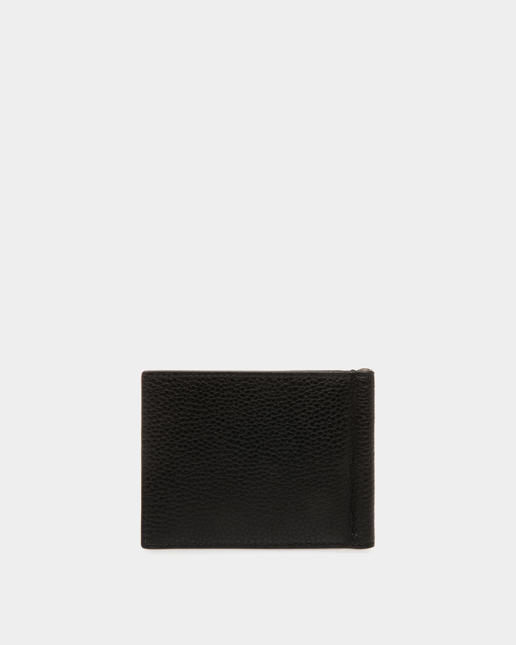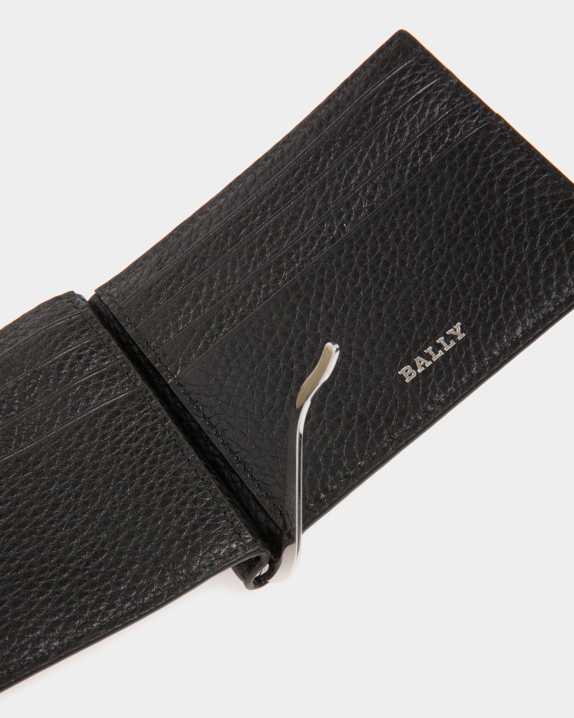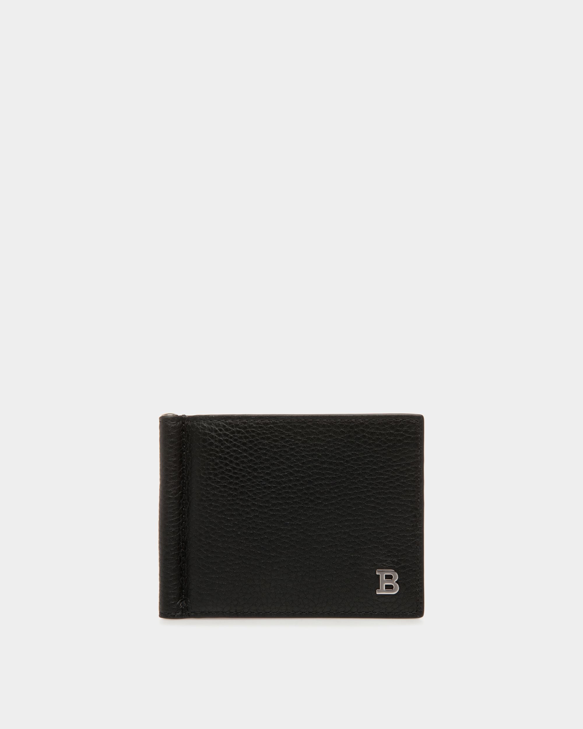 This wallet is made from durable leather. It features a silver-tone Bally B on the front.