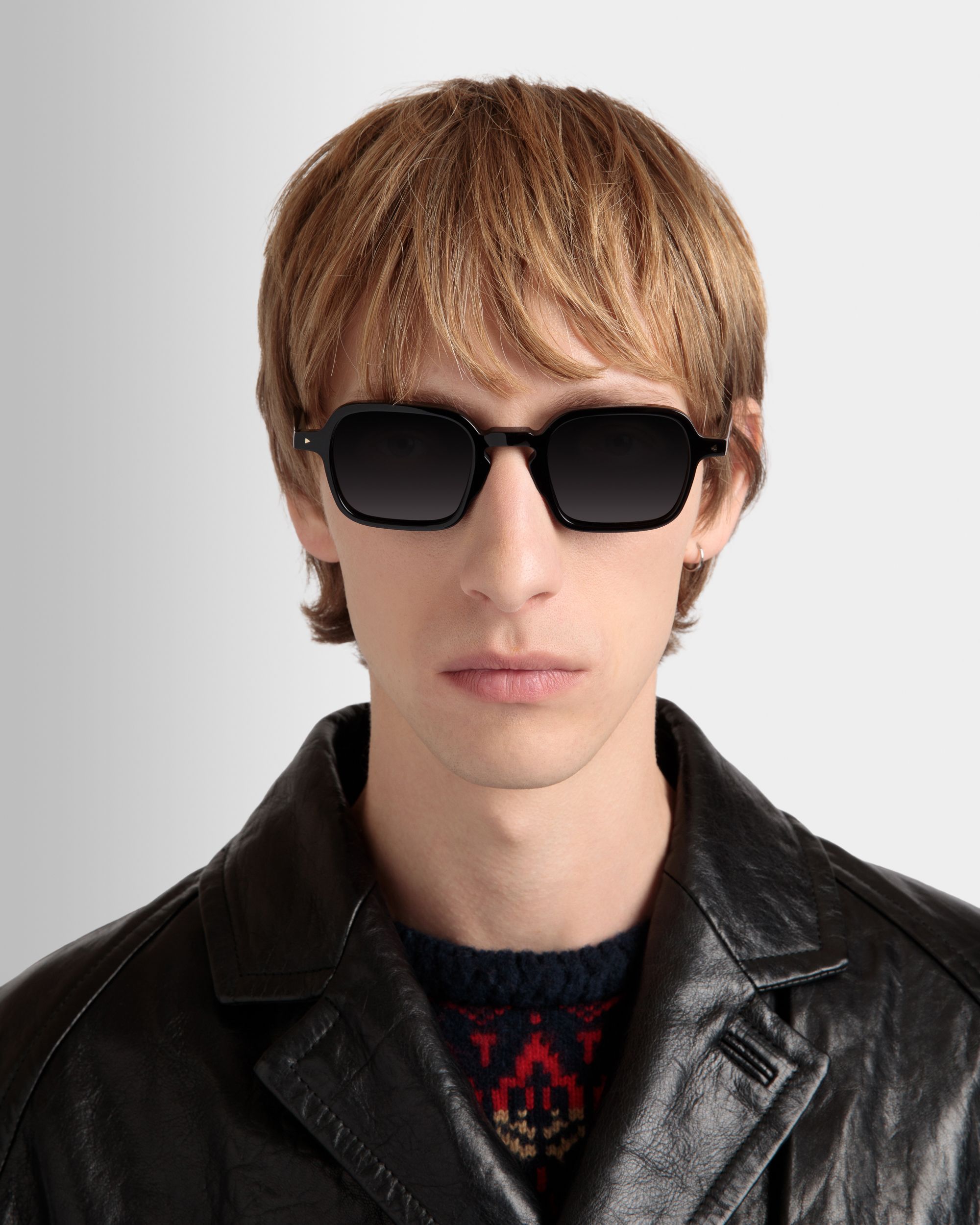 A compact square silhouette inspired by different modern eras defines Werner as an effortlessly cool pair of sunglasses. Crafted from acetate in black. geometric elements are found throughout. including triangular rivets and a keyhole nose bridge. The lenses in semi-flat glass add a final mark of distinction.