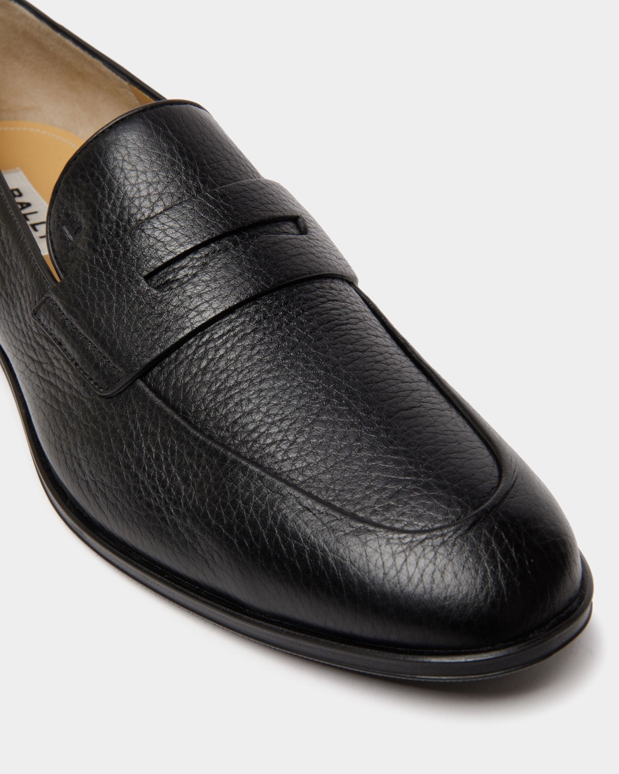 Iconic and timeless. the upper of this Westminster loafer is crafted from supple grained deer leather and trimmed by a debossed B Bold detail and a penny saddle strap. Blake construction ensures the integrity and comfort of this unlined almond-toe style. combined with rubber inserts on the leather sole for utilitarian versatility.