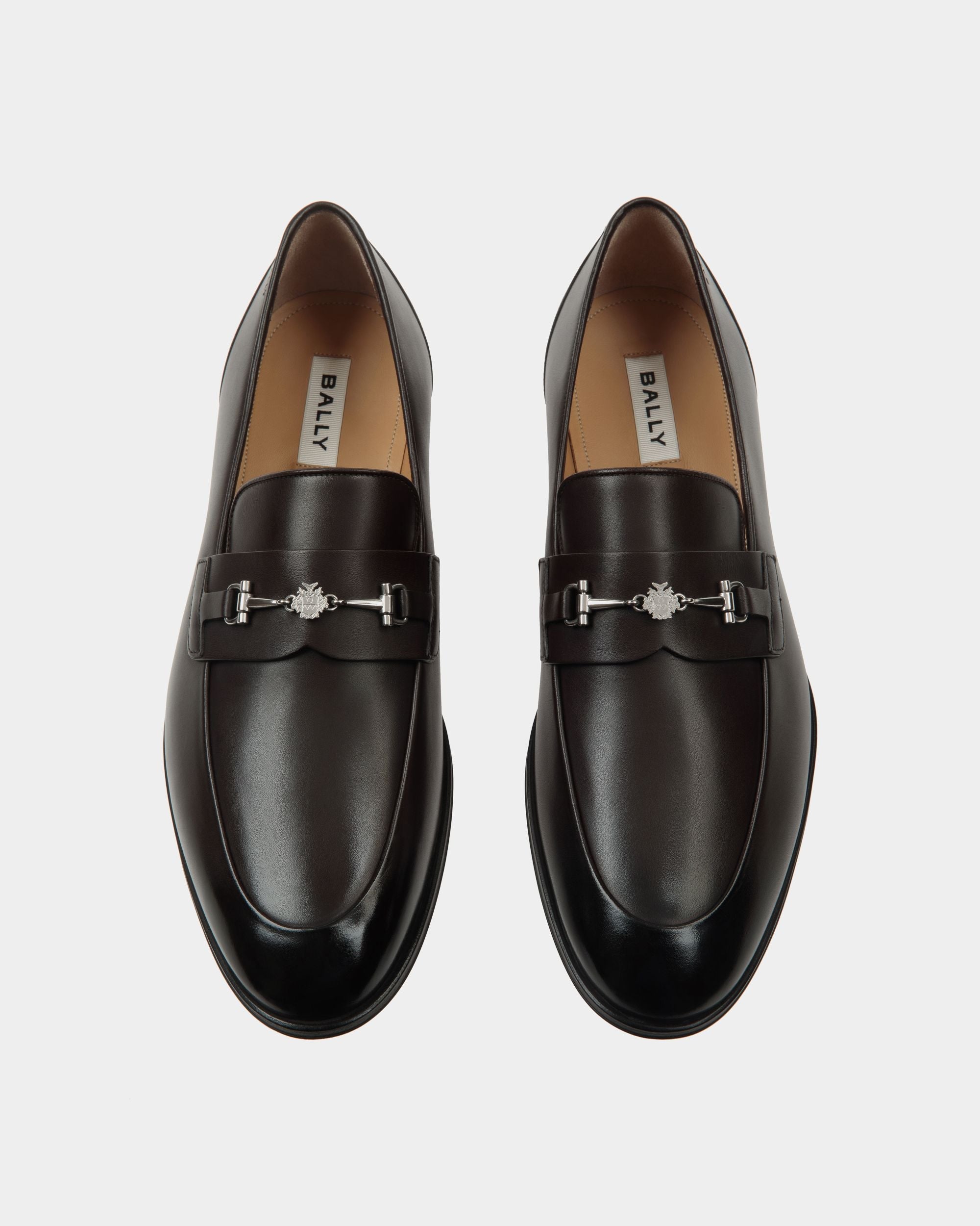 This Westminster loafer in semi-matt calfskin is finished by a polished toe and a metal horse bit with an engraved Bally Crest detail. Blake construction ensures lightness and a slender profile as it unites the upper with the rubber-injected leather sole.