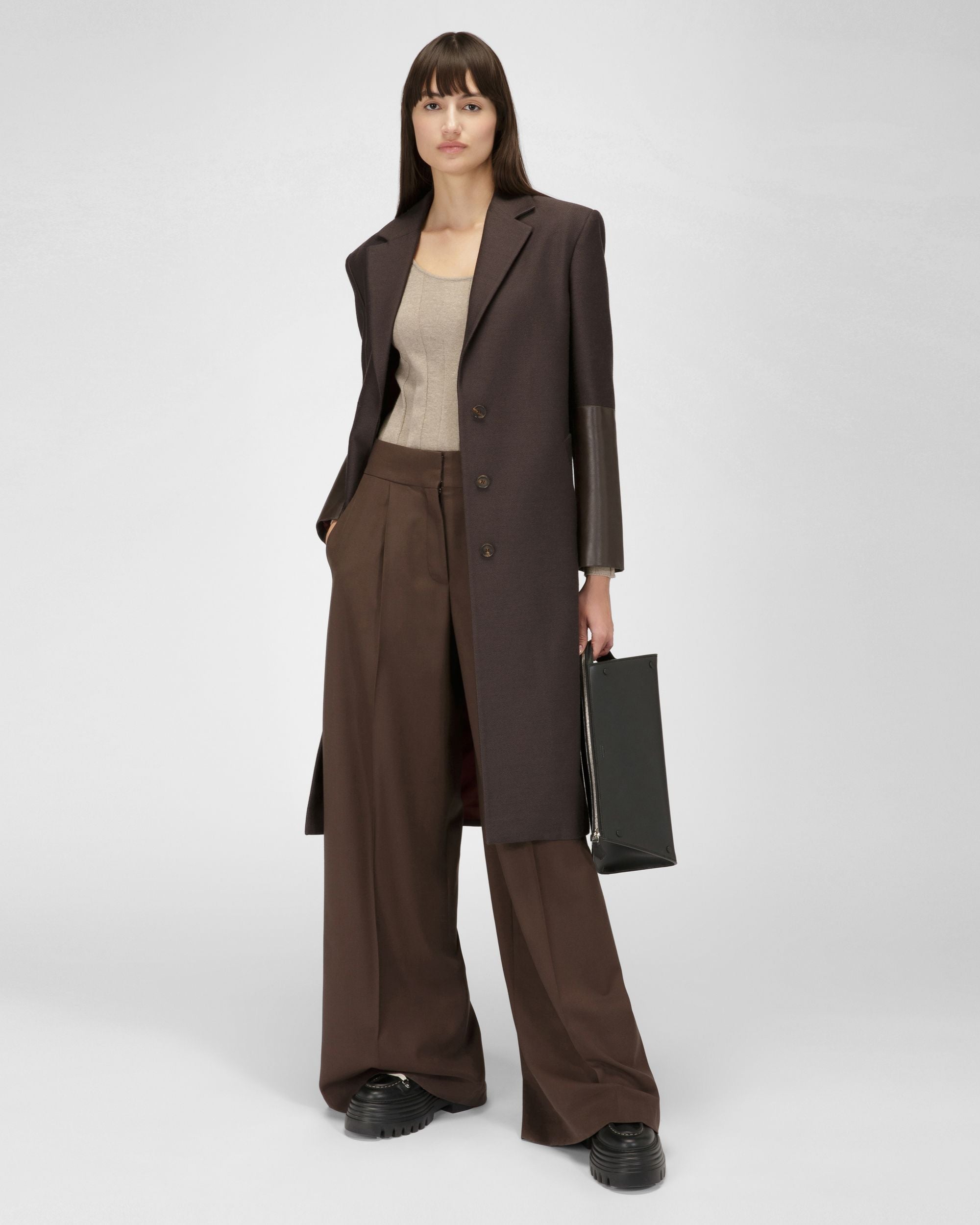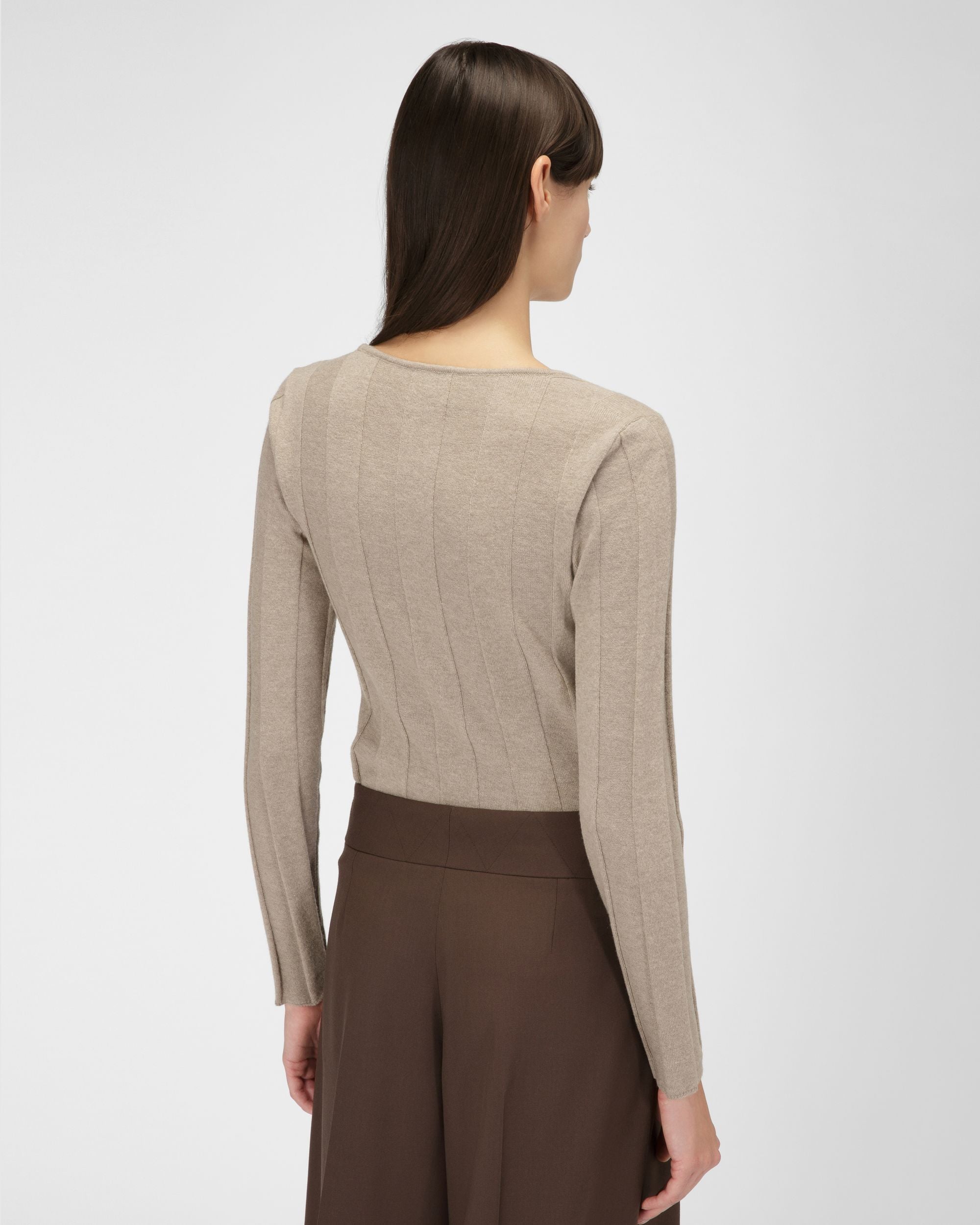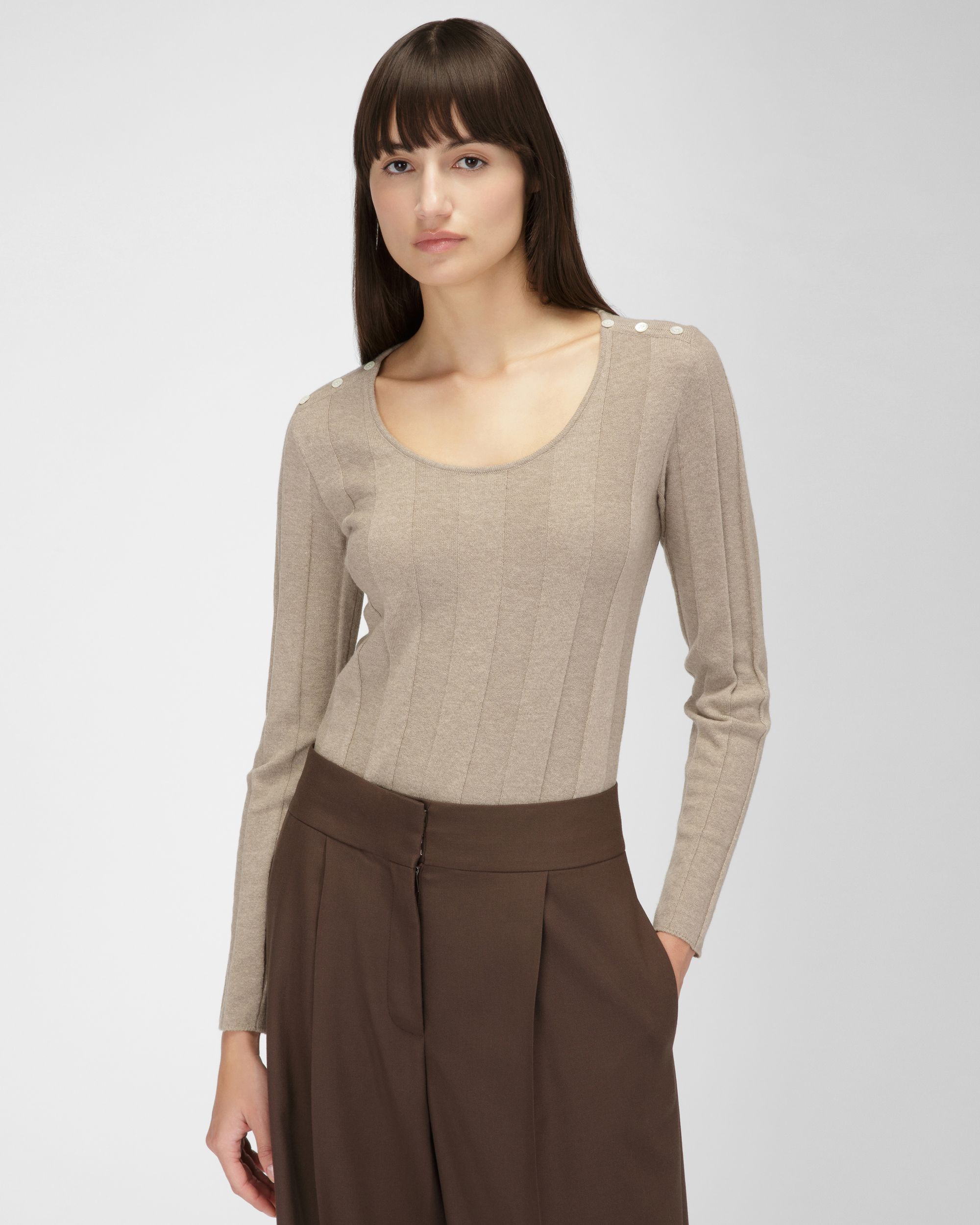 Featuring buttons at the shoulders. this crewneck sweater is made from beige wool. Wide ribs add a contemporary touch.