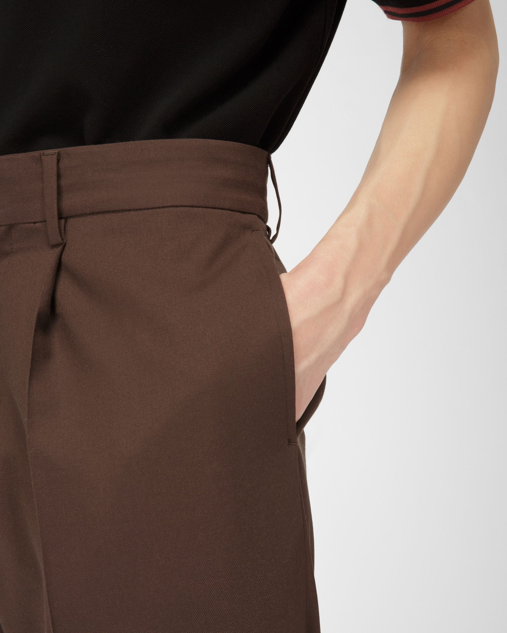 Crafted from ebony brown wool. these trousers boast an expertly tailored straight-leg silhouette.